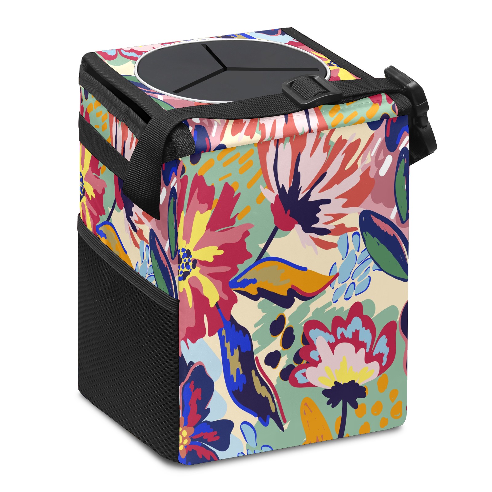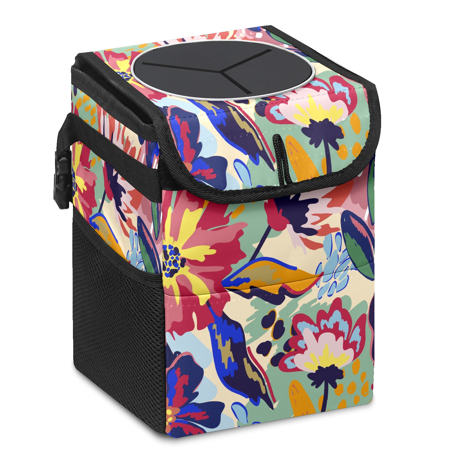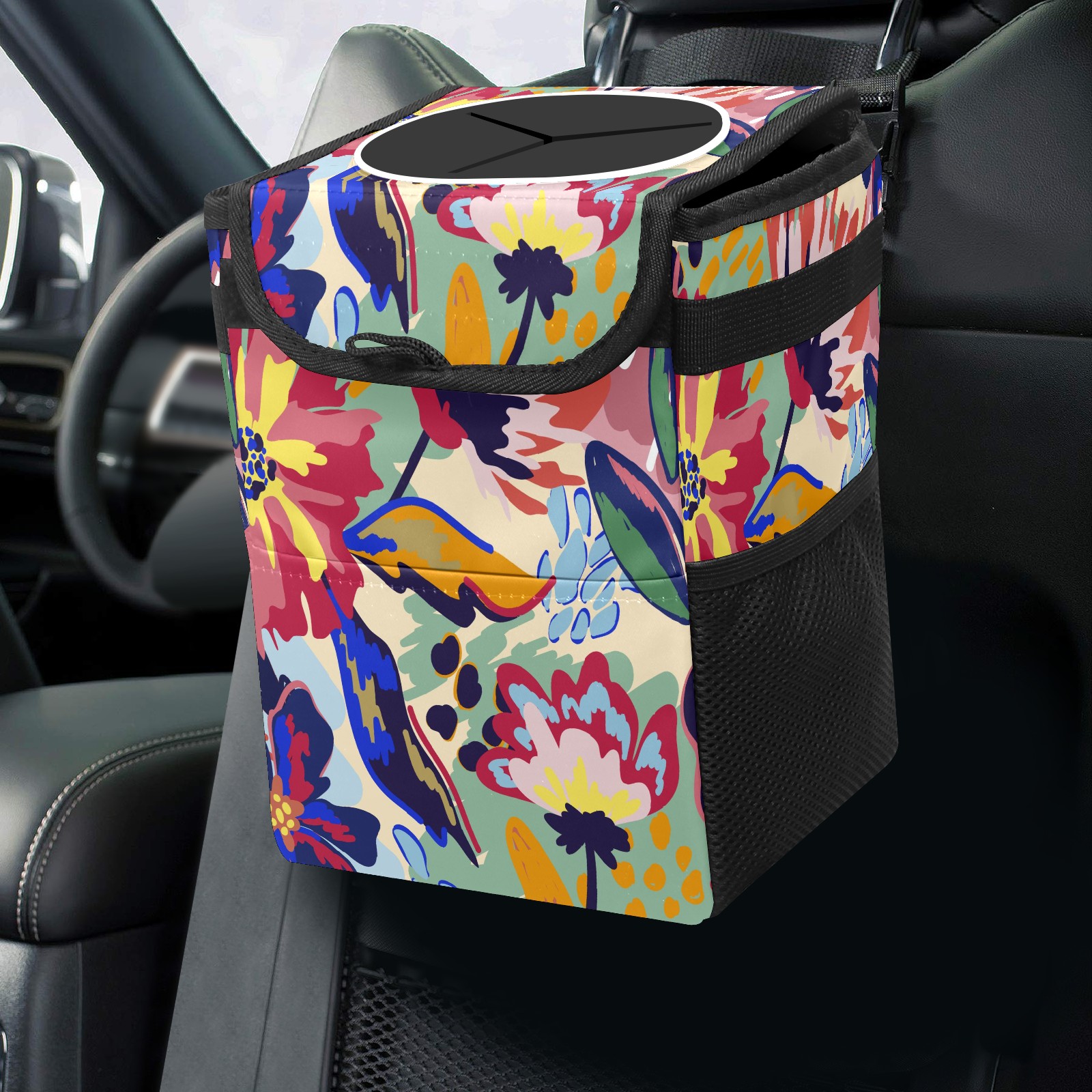 Car Trash Bin with Lid Auto Garbage Bag Hanging for Back Seat - Leakproof Trash Can for Cars SUVs Trucks Vehicle Car Accessories (Abstract Floral)