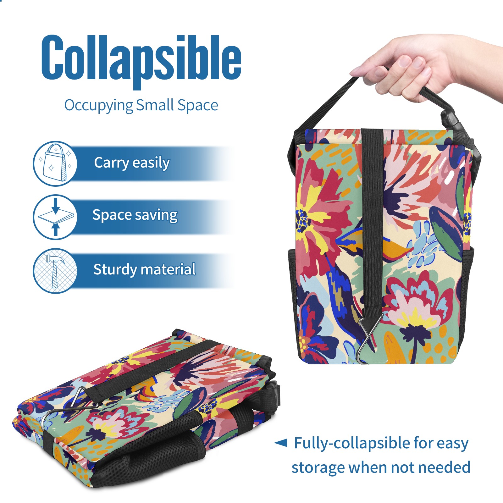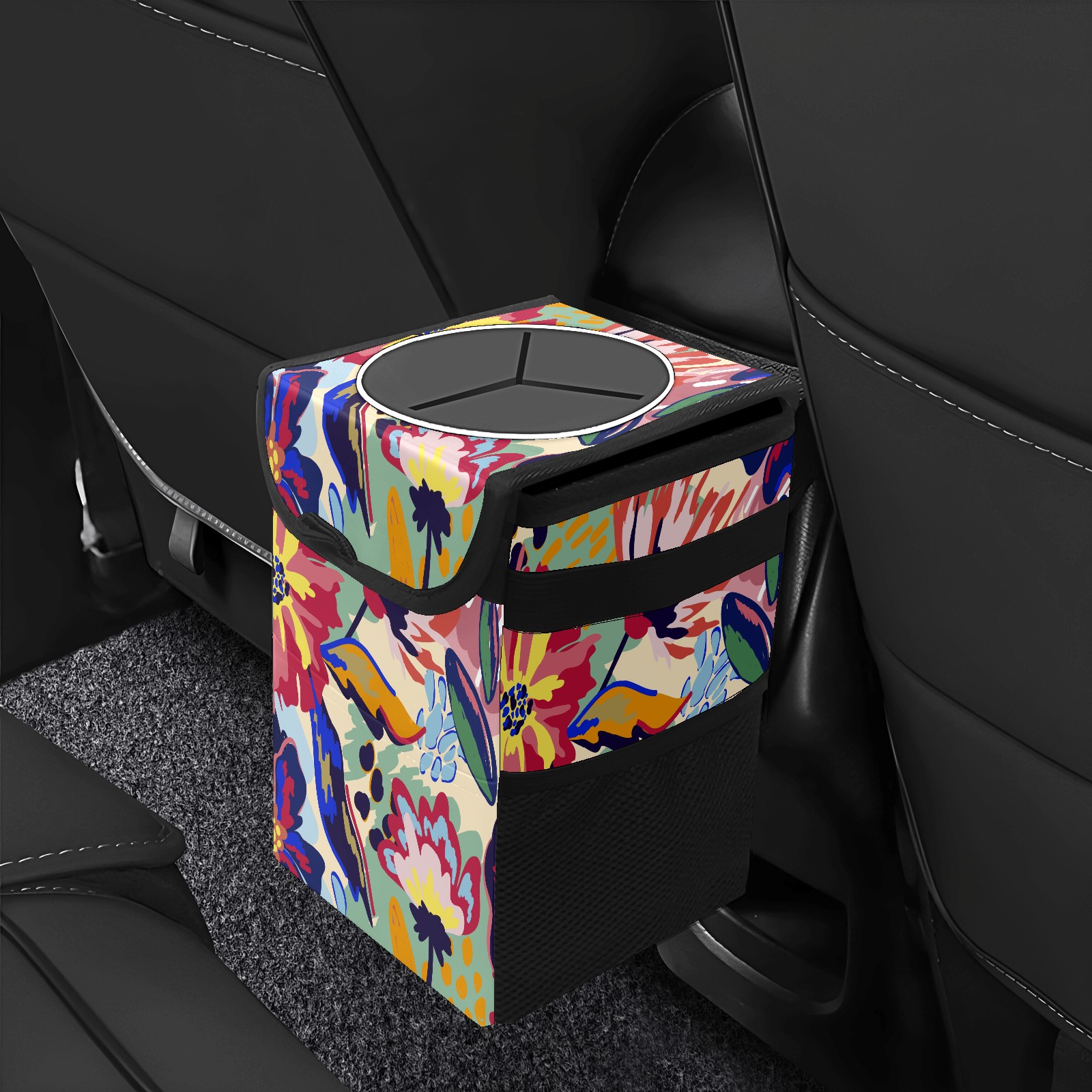 FOLDABLE & SPACE-SAVING Compact 9.5"×6.7"×6.3" size fits perfectly in any vehicle space Instantly folds flat when not in use - stores effortlessly under seats or in door pockets MULTI-FUNCTION ORGANIZER Large main compartment holds bottles, wrappers and tissues Additional pockets for wet wipes, masks or small accessories WATERPROOF & LEAKPROOF Made with premium leak-proof polyester material Contains messy spills from drinks, snacks, and food Wipe-clean surface resists stains and eliminates odors Package Includes 1× Car Trash Can