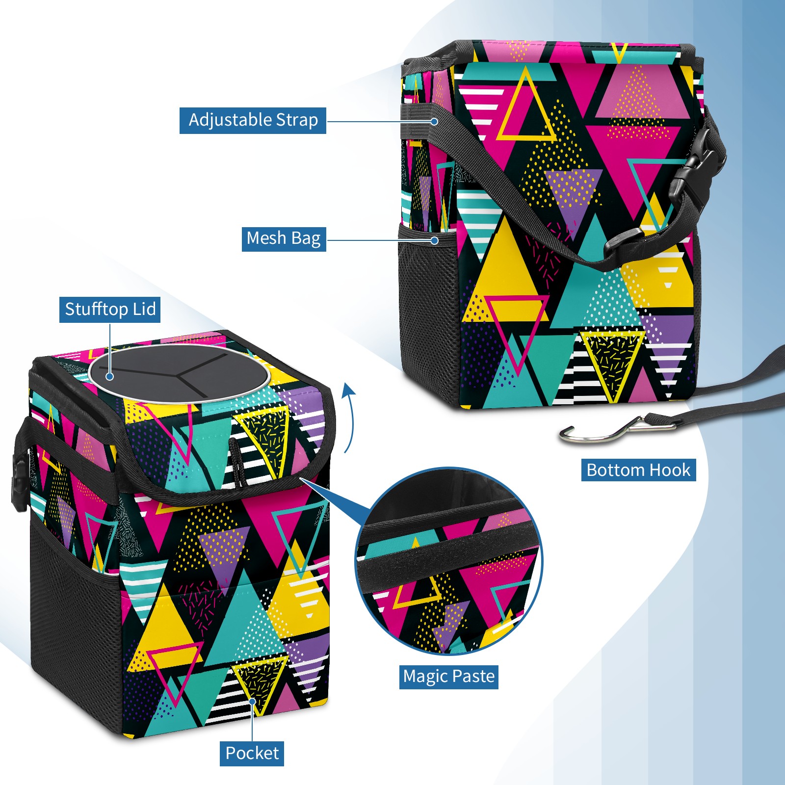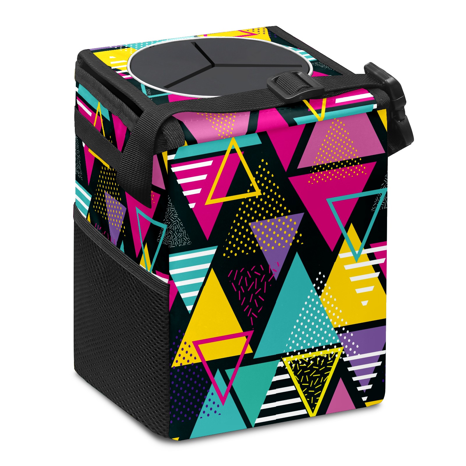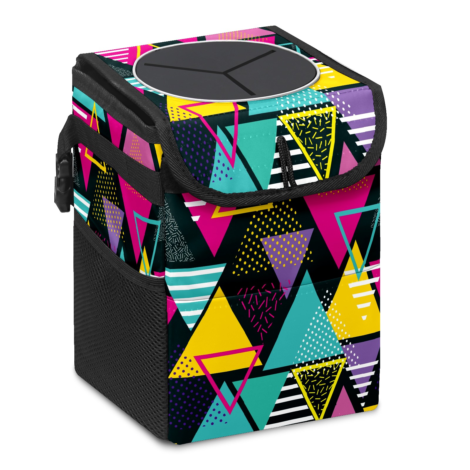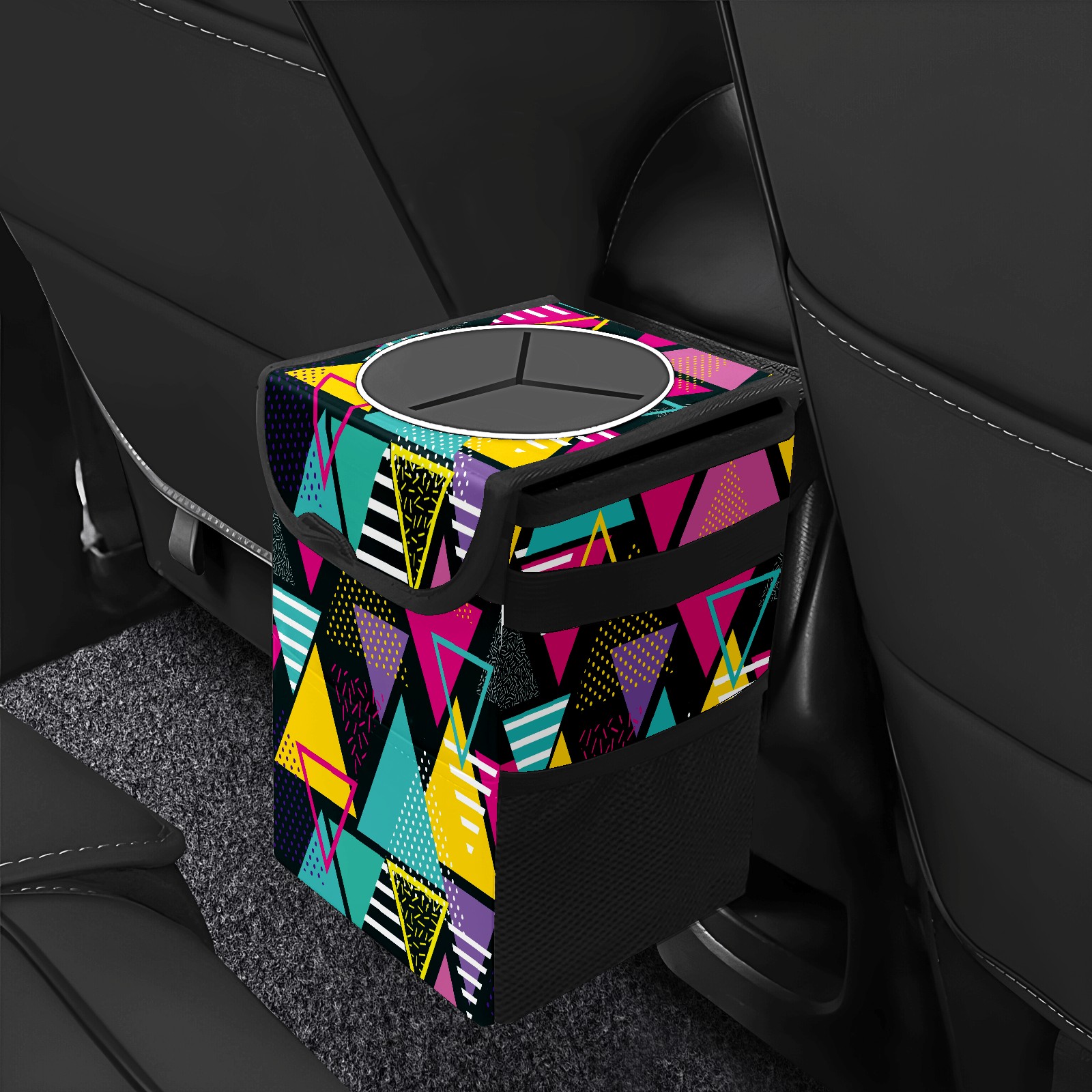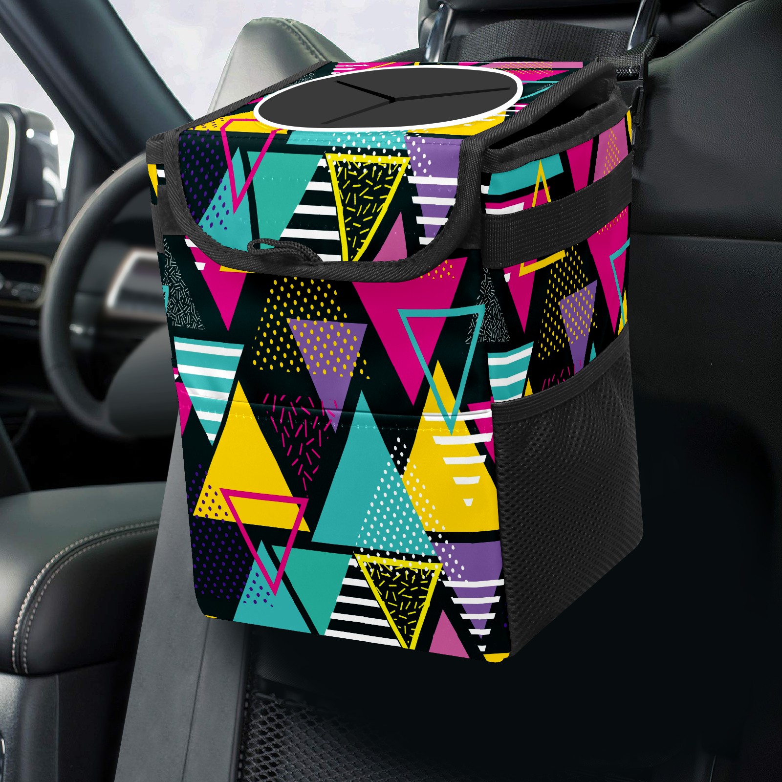 Car Trash Bin with Lid Auto Garbage Bag Hanging for Back Seat - Leakproof Trash Can for Cars SUVs Trucks Vehicle Car Accessories (Abstract Colorful Triangle Pattern)