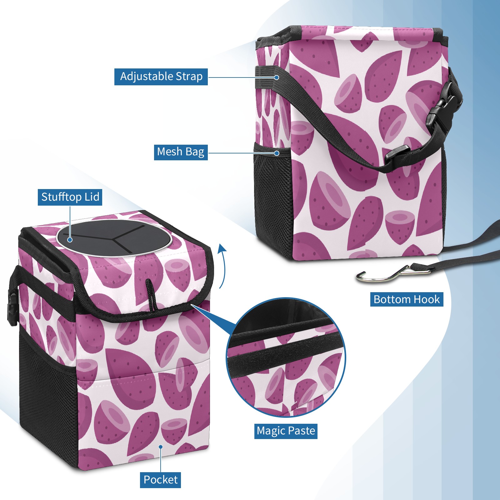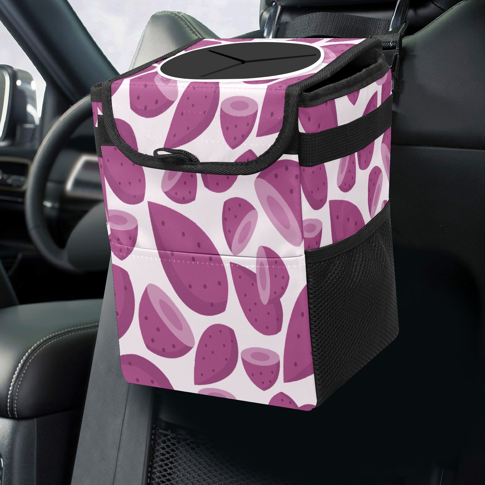 Car Trash Bin with Lid Auto Garbage Bag Hanging for Back Seat - Leakproof Trash Can for Cars SUVs Trucks Vehicle Car Accessories (Purple Sweet Potato Pattern)