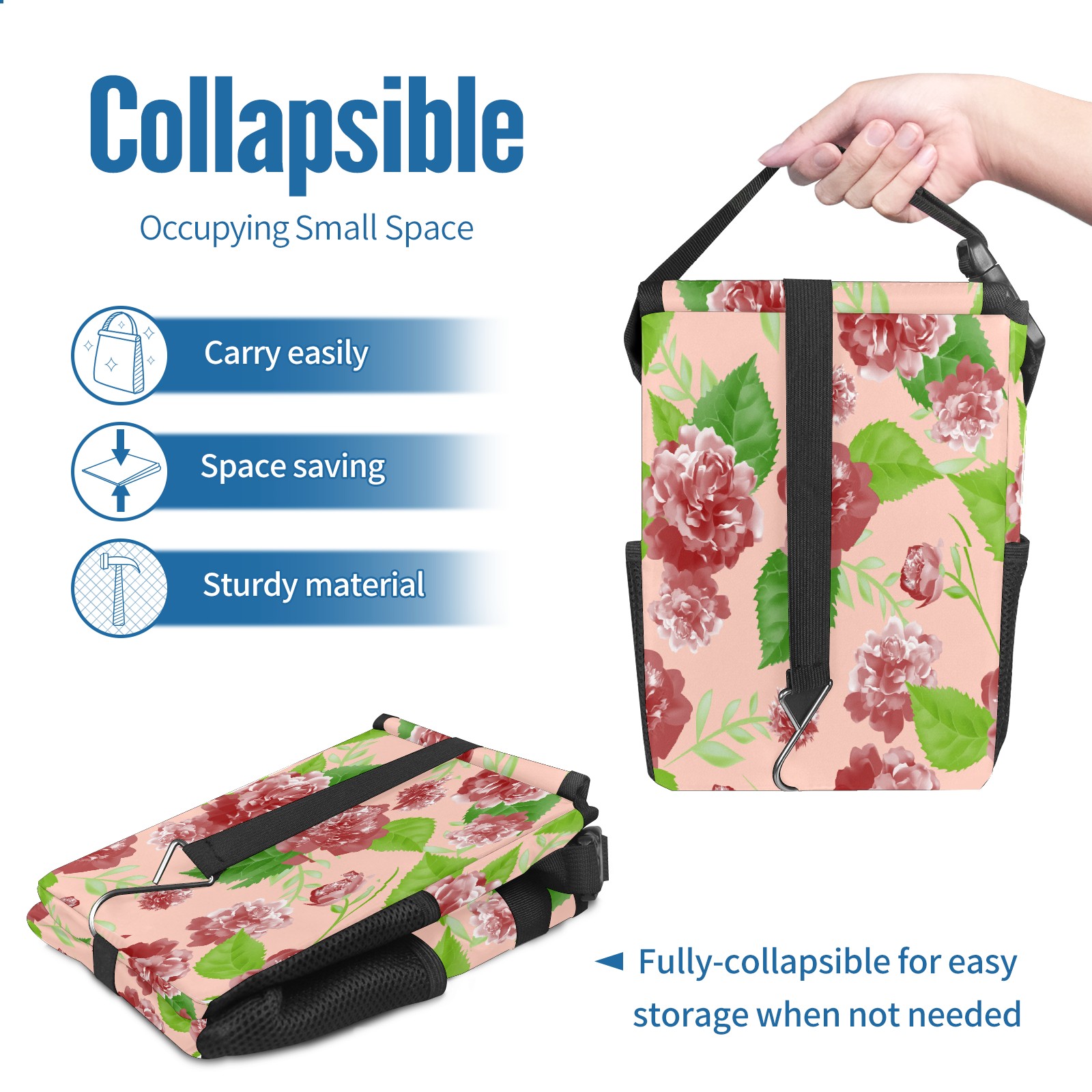 FOLDABLE & SPACE-SAVING Compact 9.5"×6.7"×6.3" size fits perfectly in any vehicle space Instantly folds flat when not in use - stores effortlessly under seats or in door pockets MULTI-FUNCTION ORGANIZER Large main compartment holds bottles, wrappers and tissues Additional pockets for wet wipes, masks or small accessories WATERPROOF & LEAKPROOF Made with premium leak-proof polyester material Contains messy spills from drinks, snacks, and food Wipe-clean surface resists stains and eliminates odors Package Includes 1× Car Trash Can