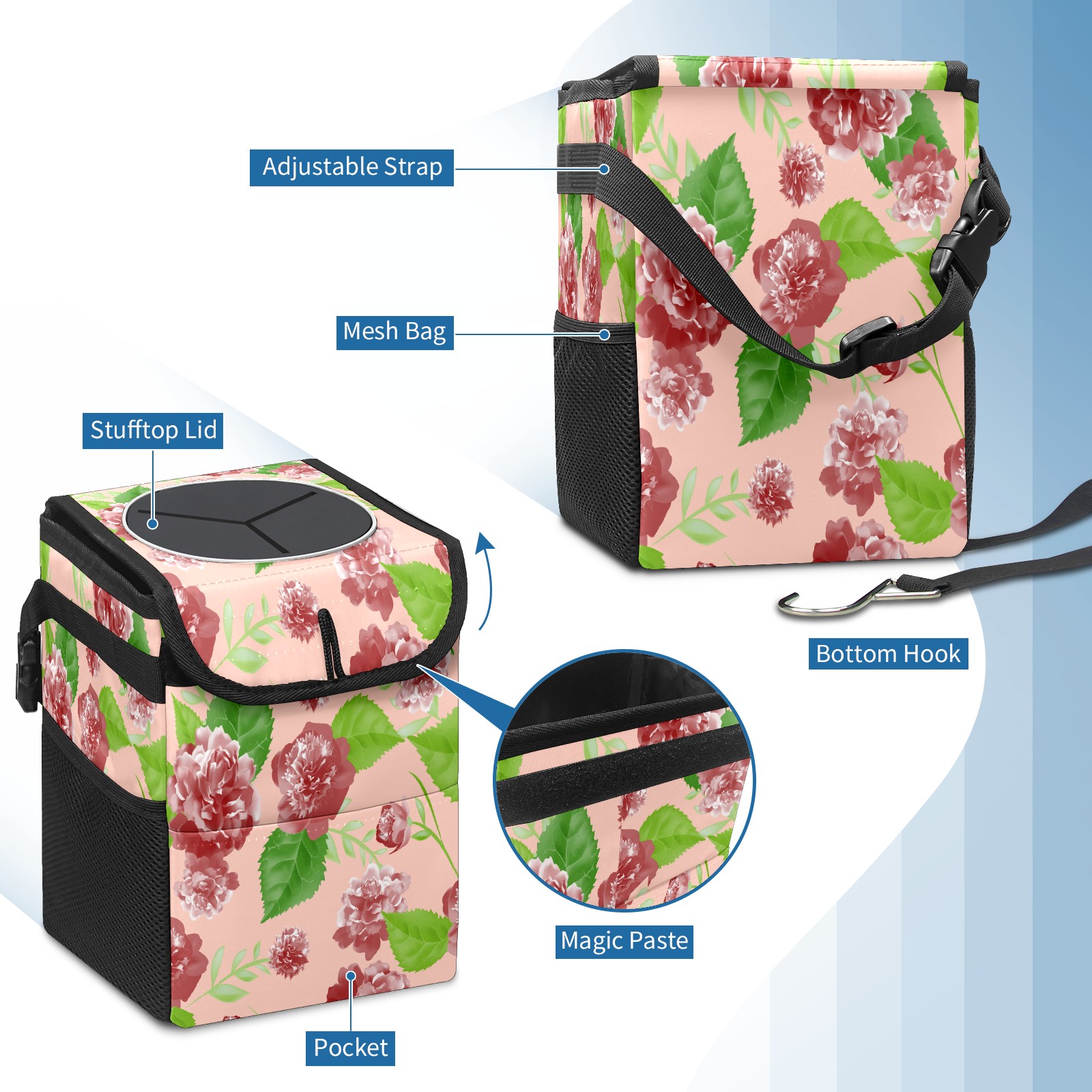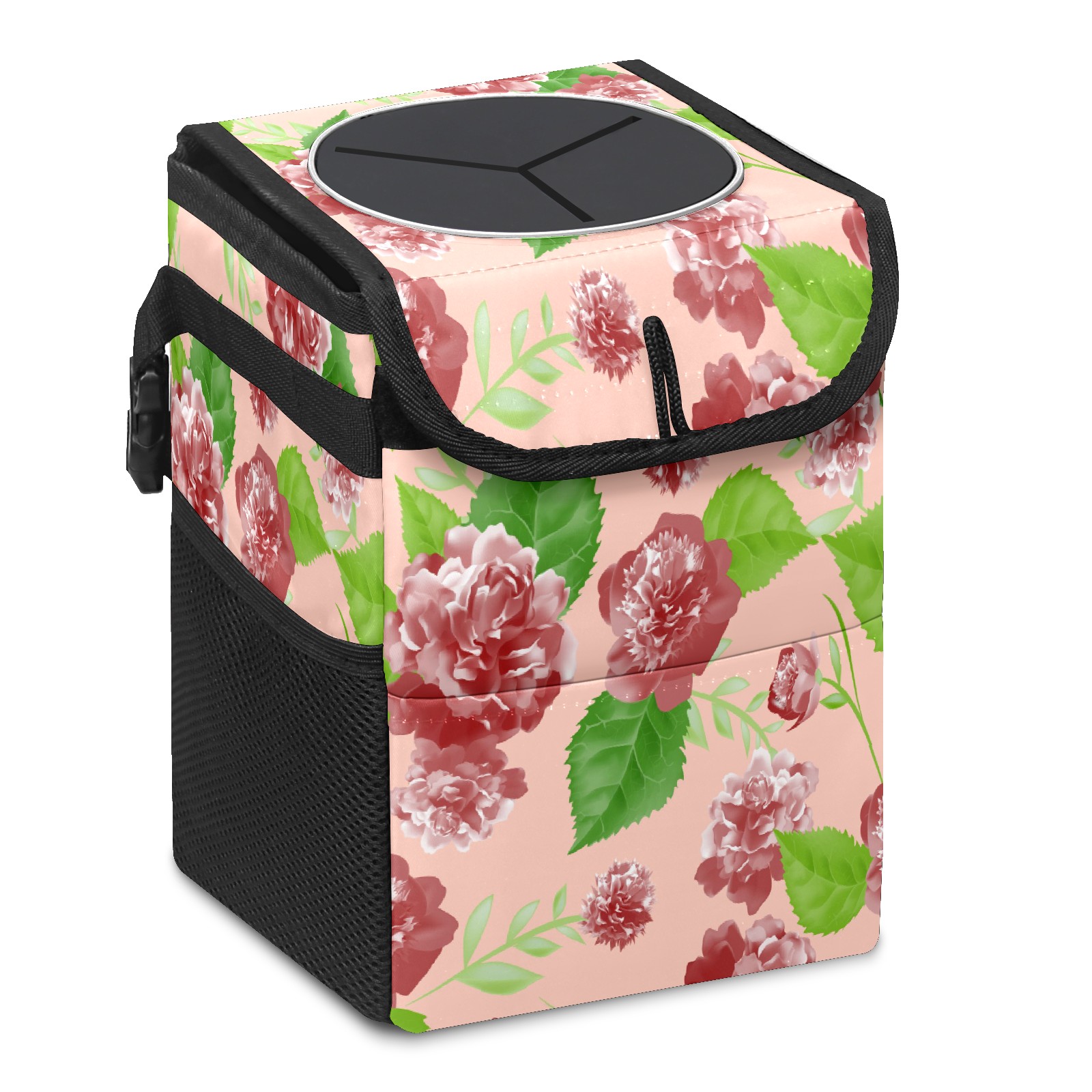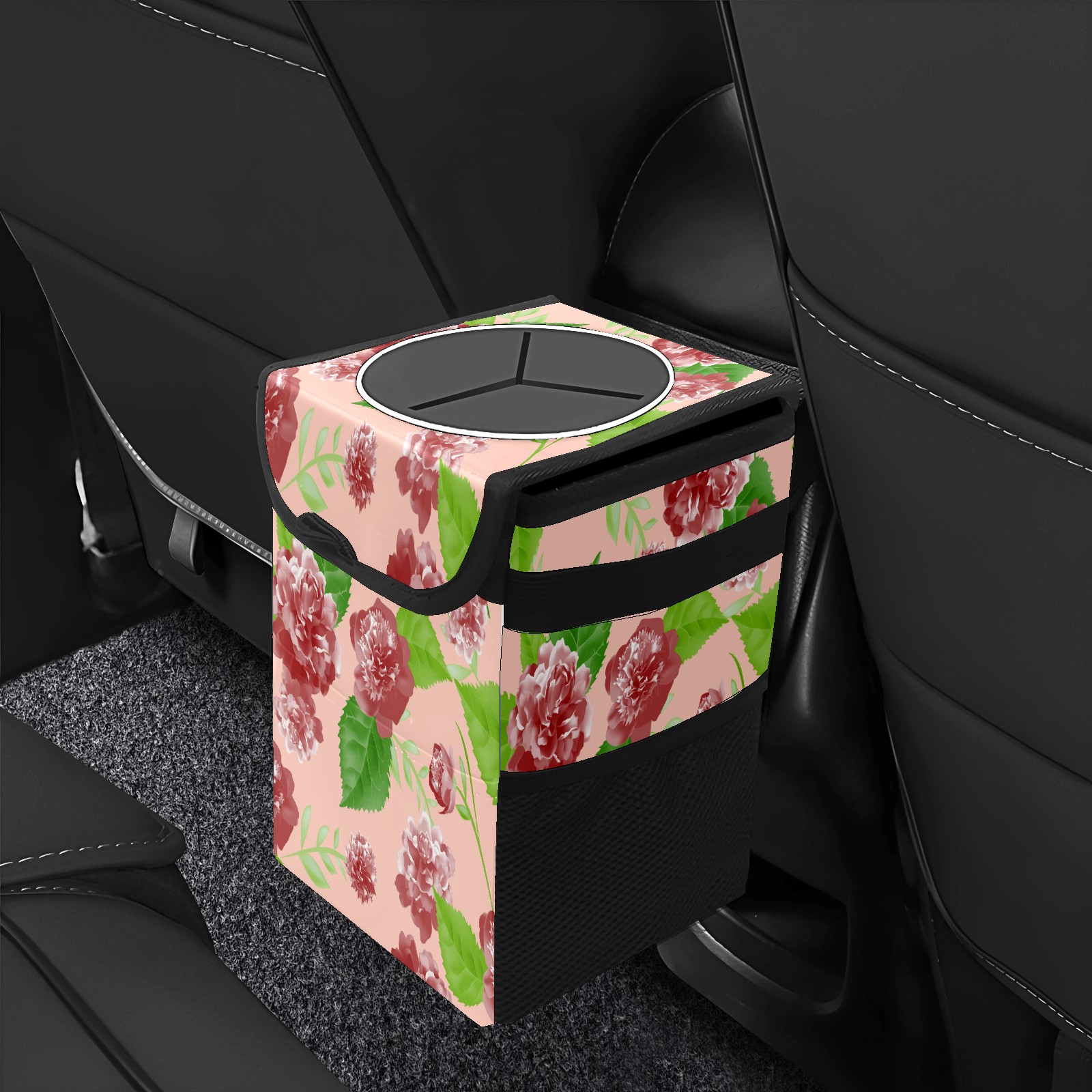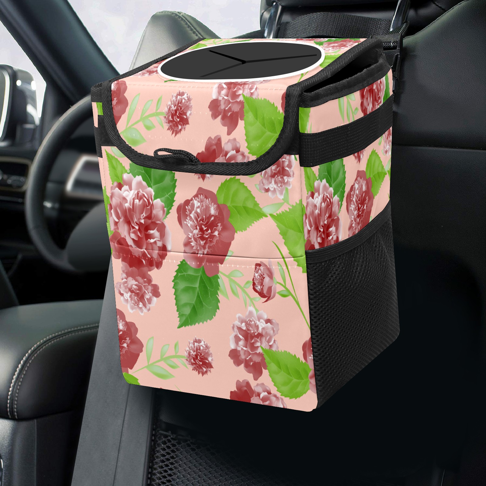 Car Trash Bin with Lid Auto Garbage Bag Hanging for Back Seat - Leakproof Trash Can for Cars SUVs Trucks Vehicle Car Accessories (Pink Retro Rose Flowers)