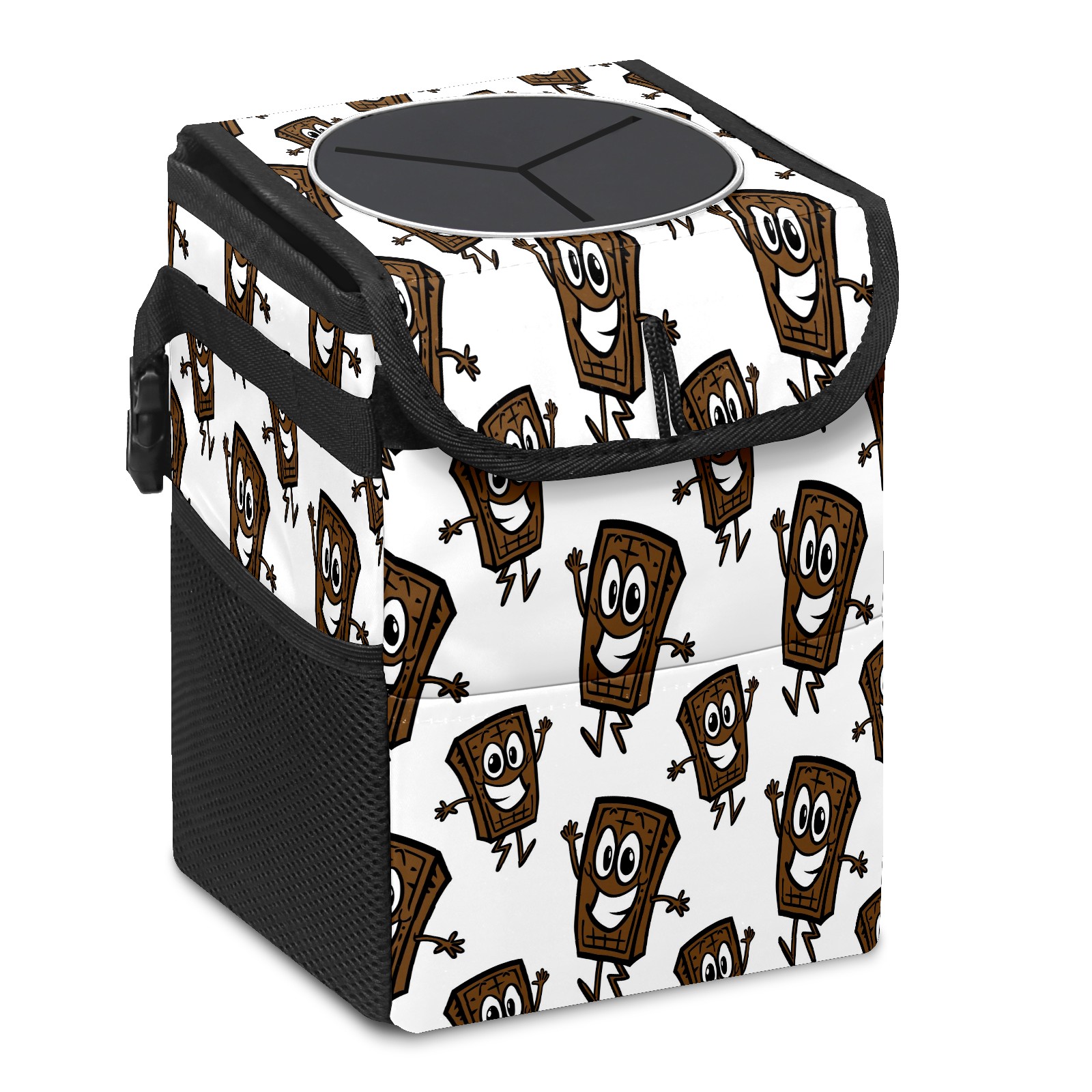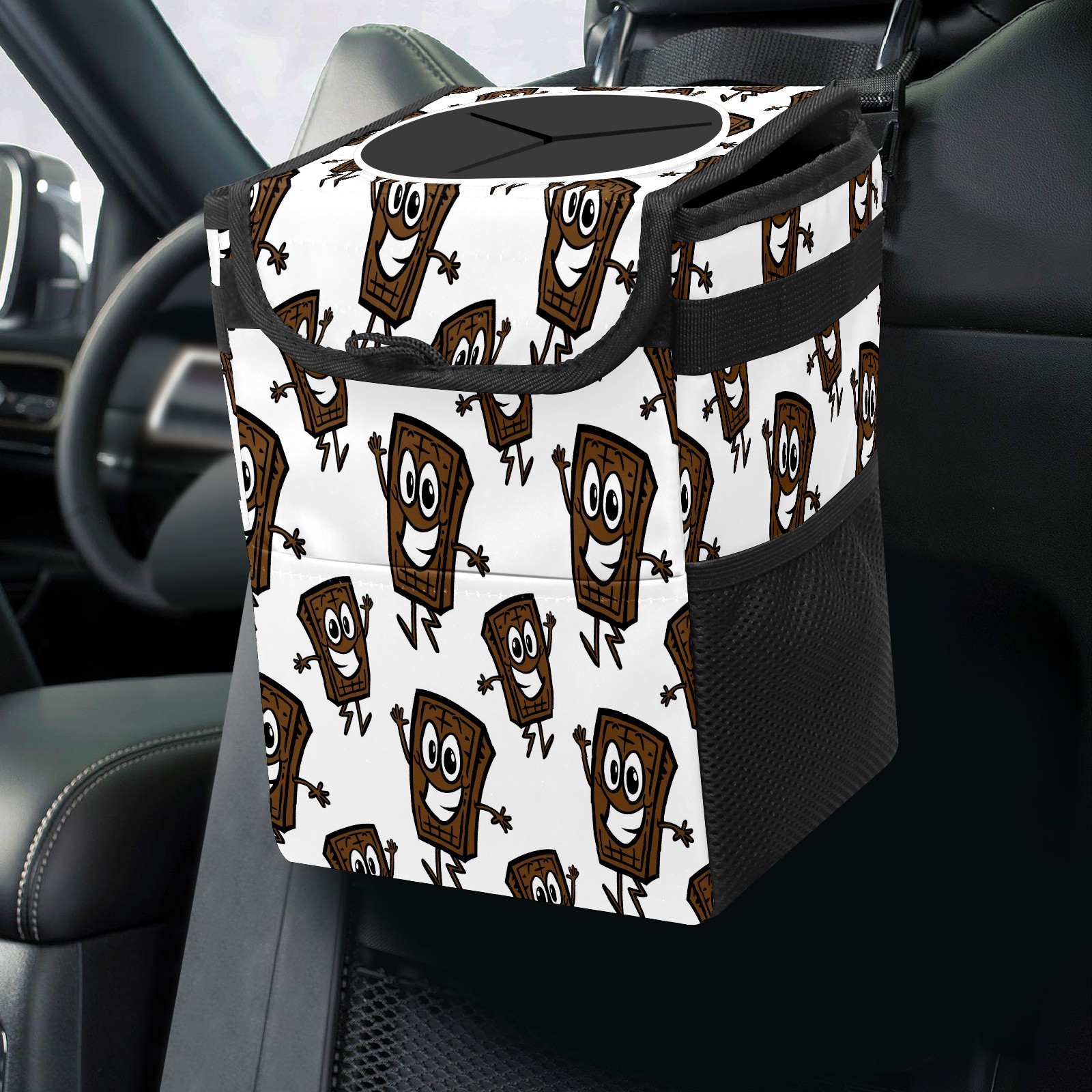Car Trash Bin with Lid Auto Garbage Bag Hanging for Back Seat - Leakproof Trash Can for Cars SUVs Trucks Vehicle Car Accessories (Funny Chocolate Bar Pattern)