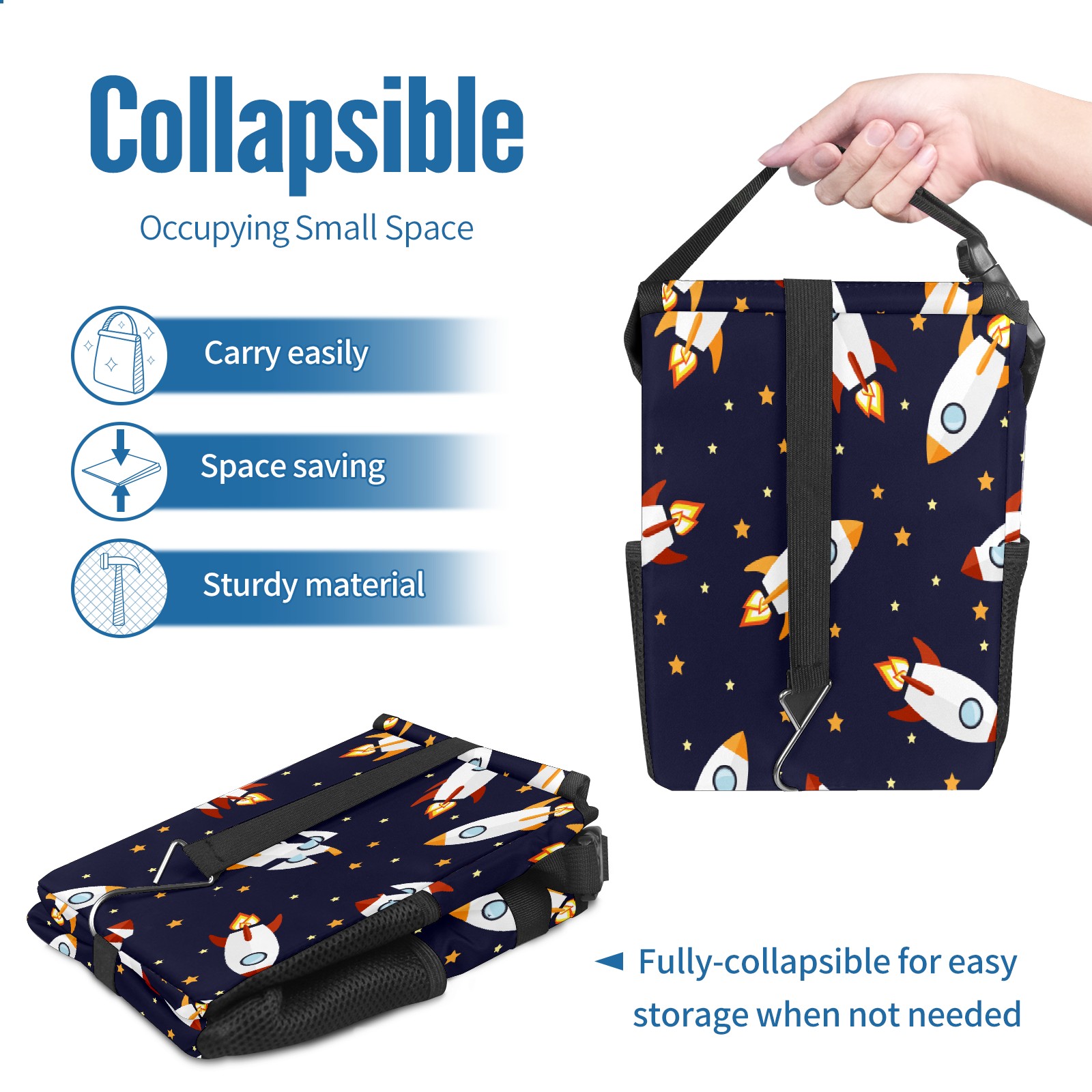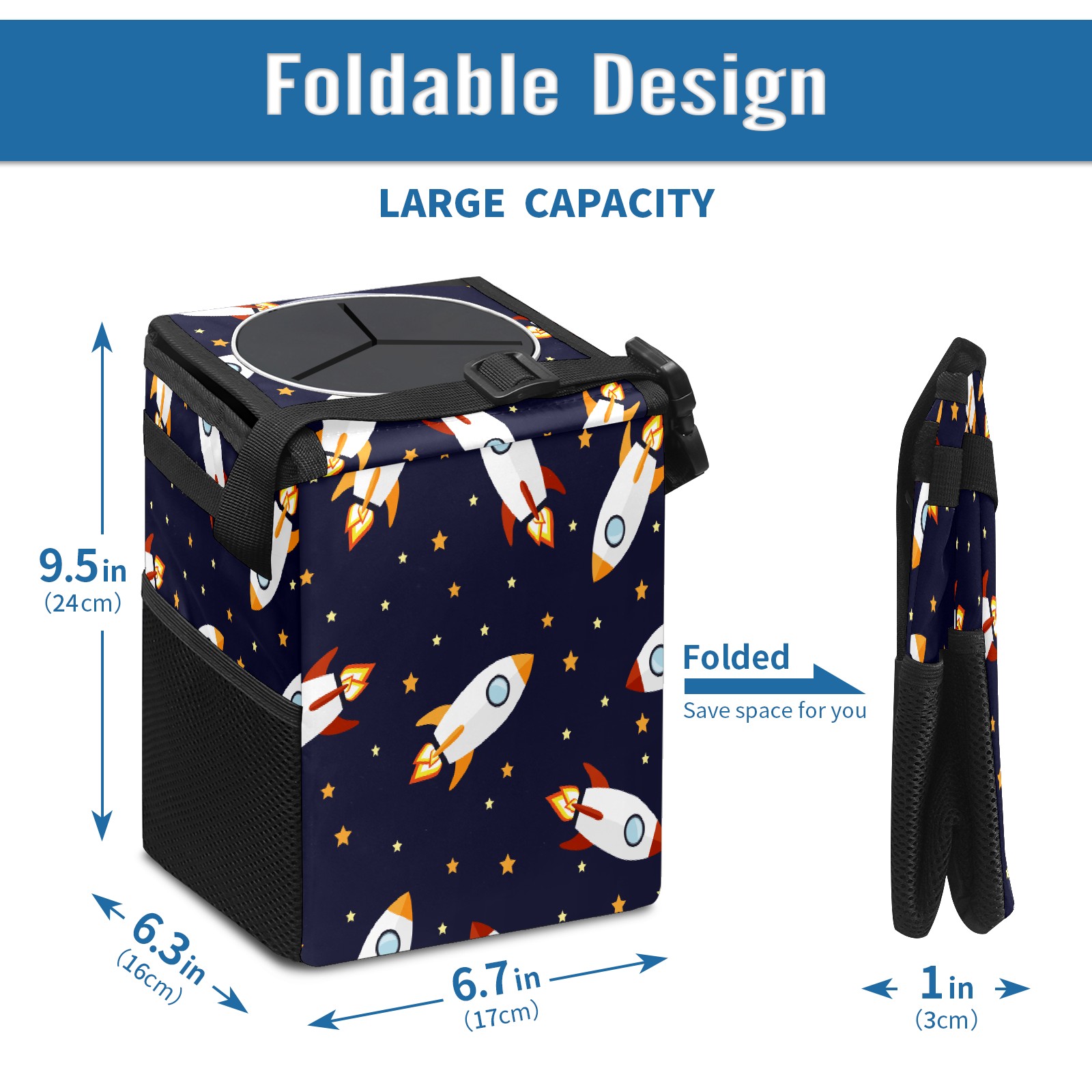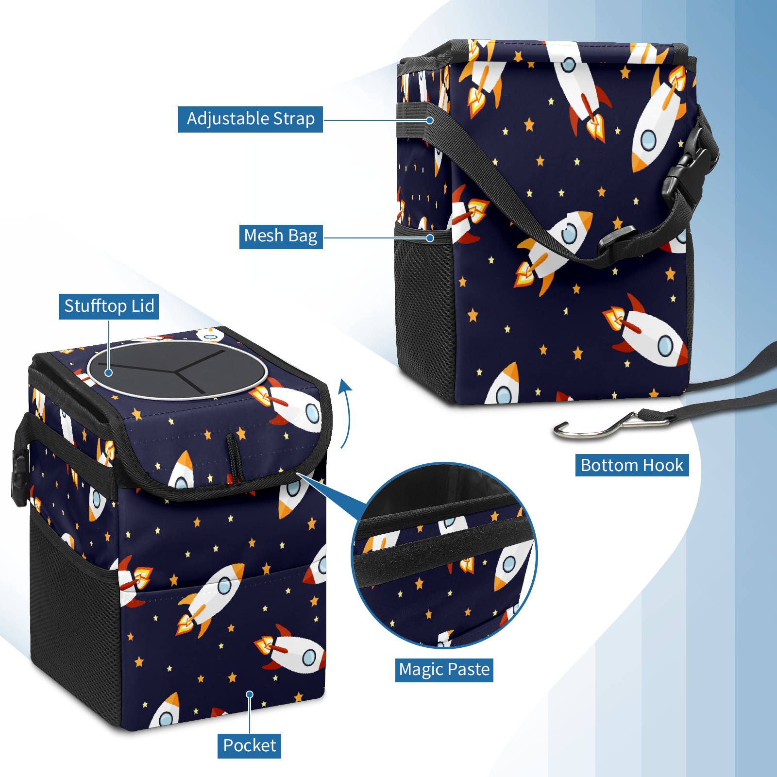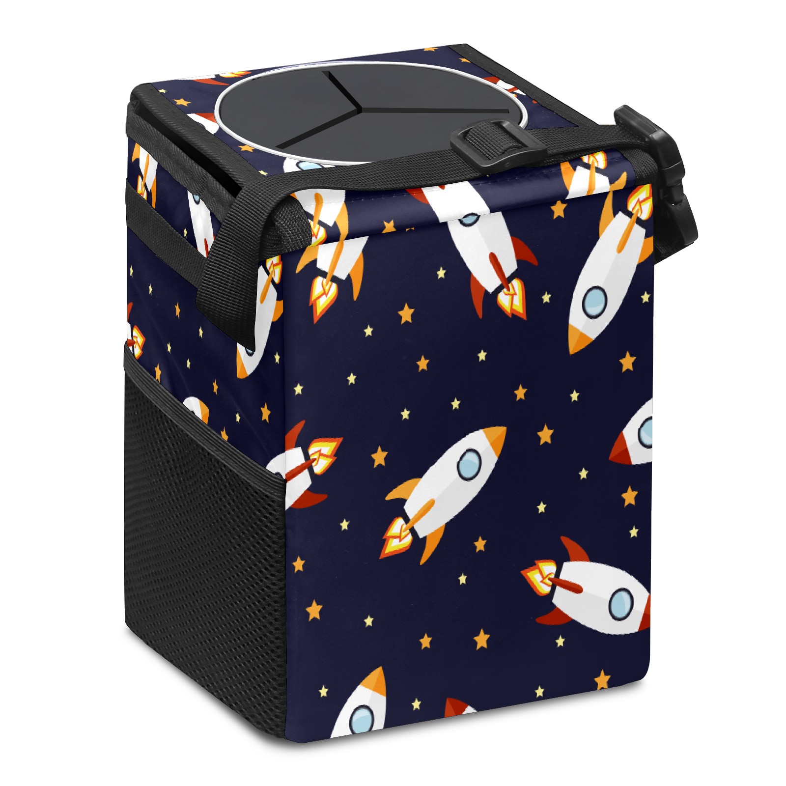 Car Trash Bin with Lid Auto Garbage Bag Hanging for Back Seat - Leakproof Trash Can for Cars SUVs Trucks Vehicle Car Accessories (Dark Blue Cartoon Rockets Pattern)