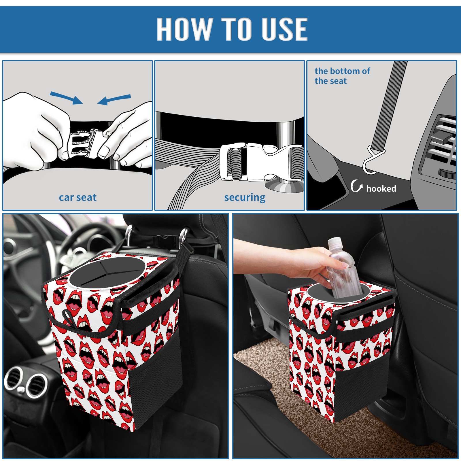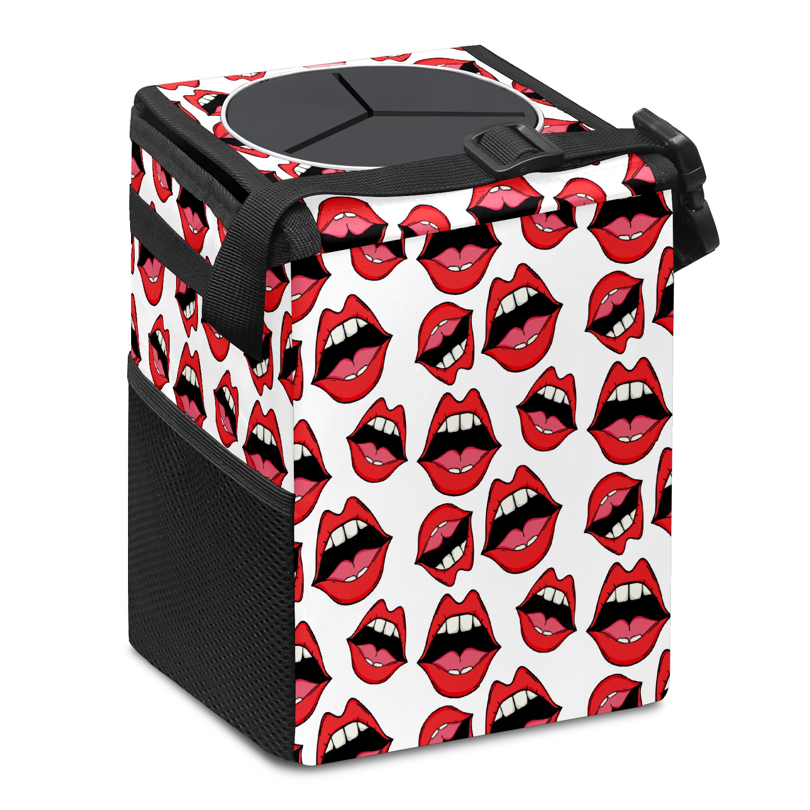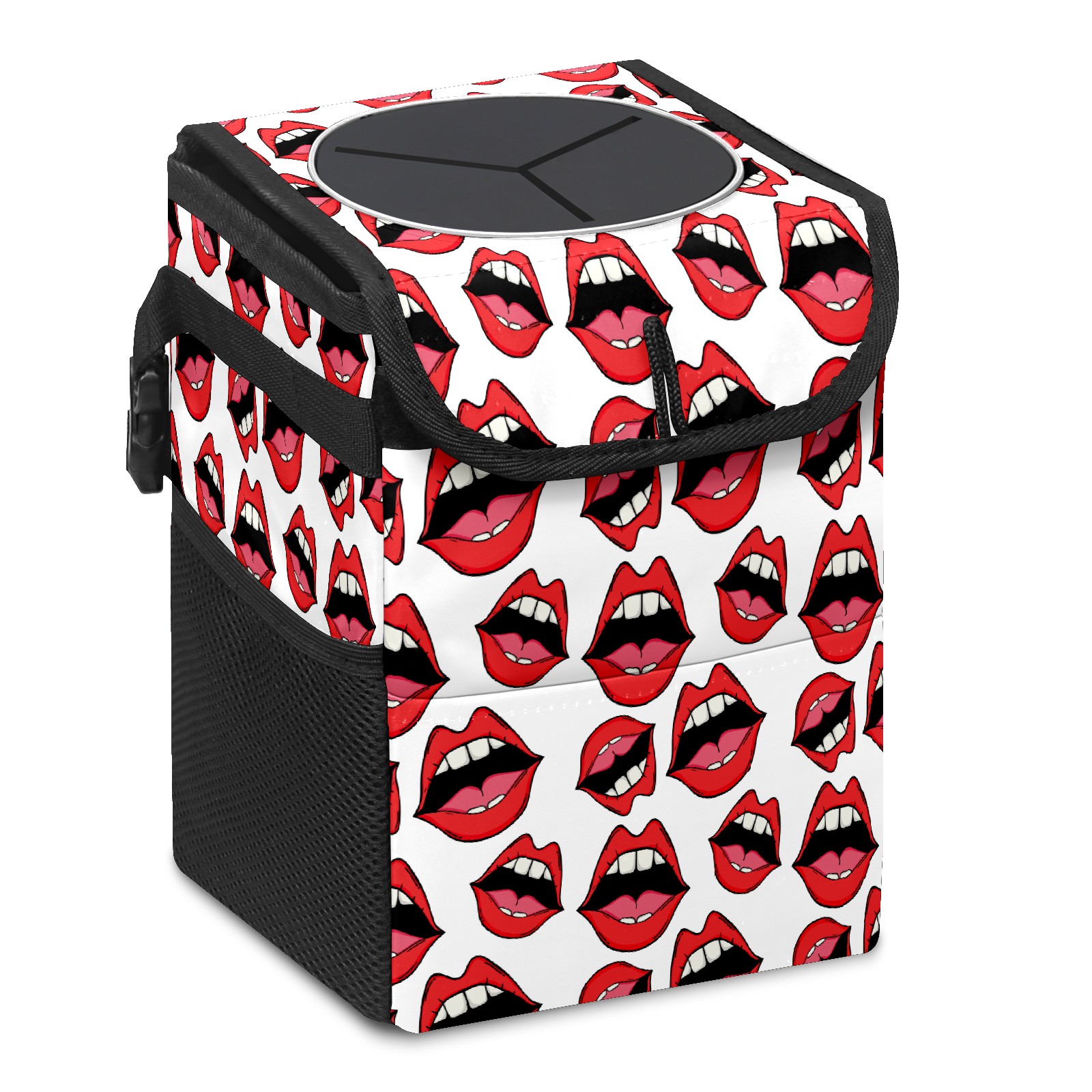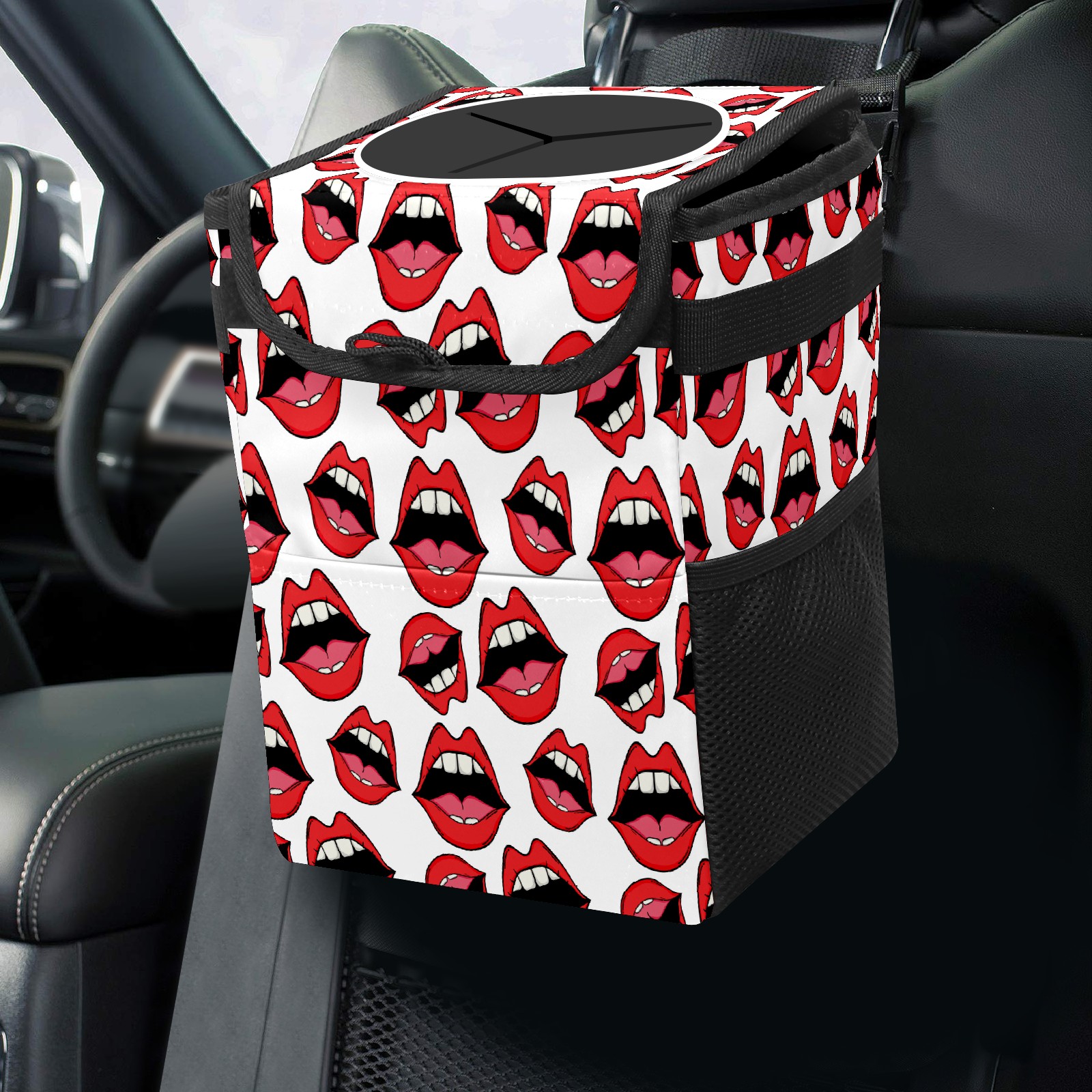 Car Trash Bin with Lid Auto Garbage Bag Hanging for Back Seat - Leakproof Trash Can for Cars SUVs Trucks Vehicle Car Accessories (Pop Art Cartoon Red Lips Background)