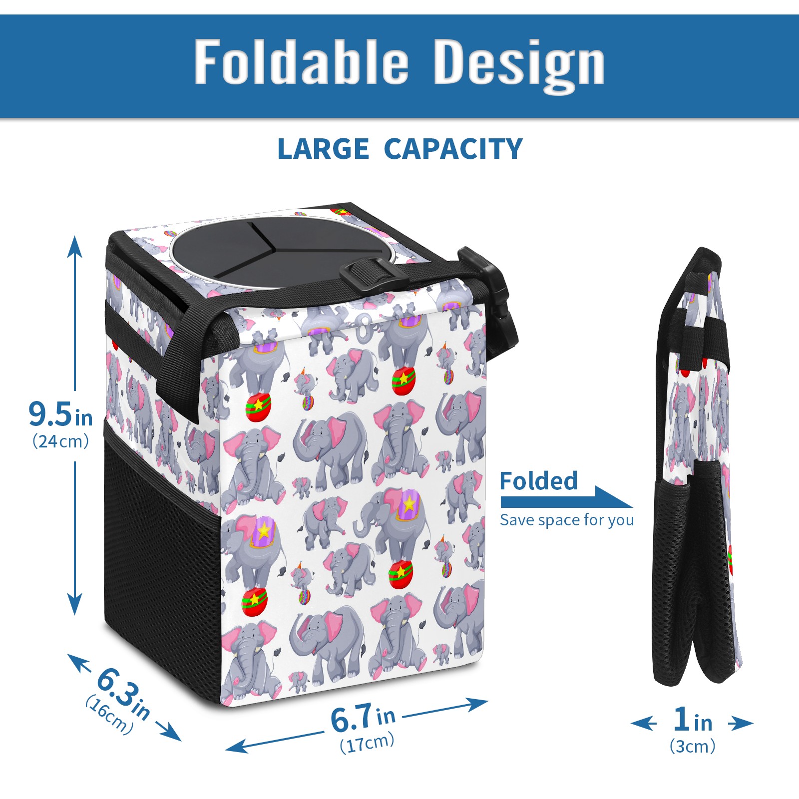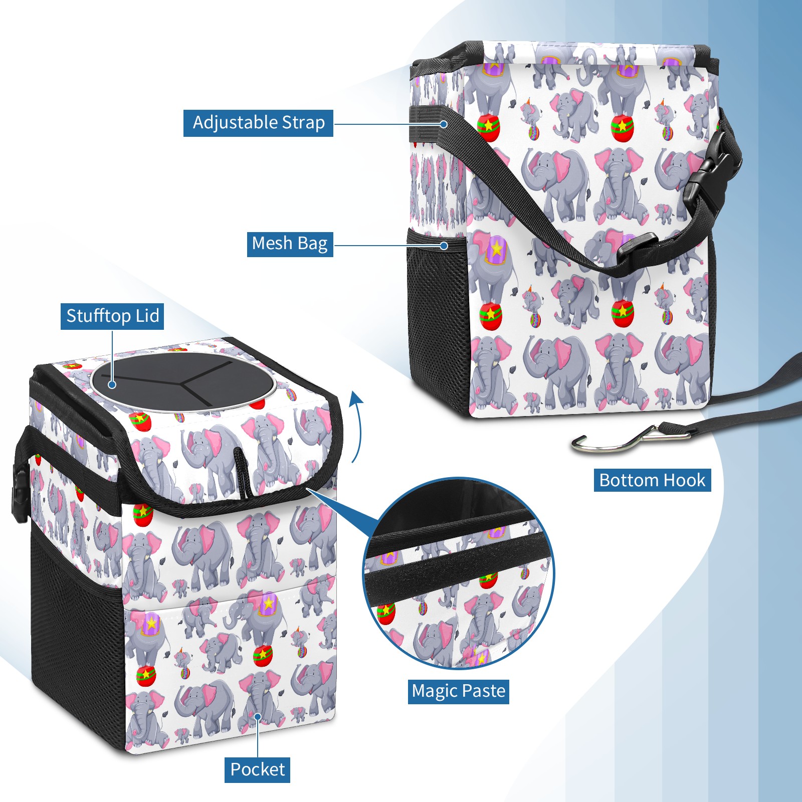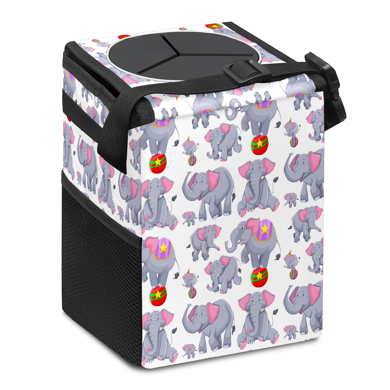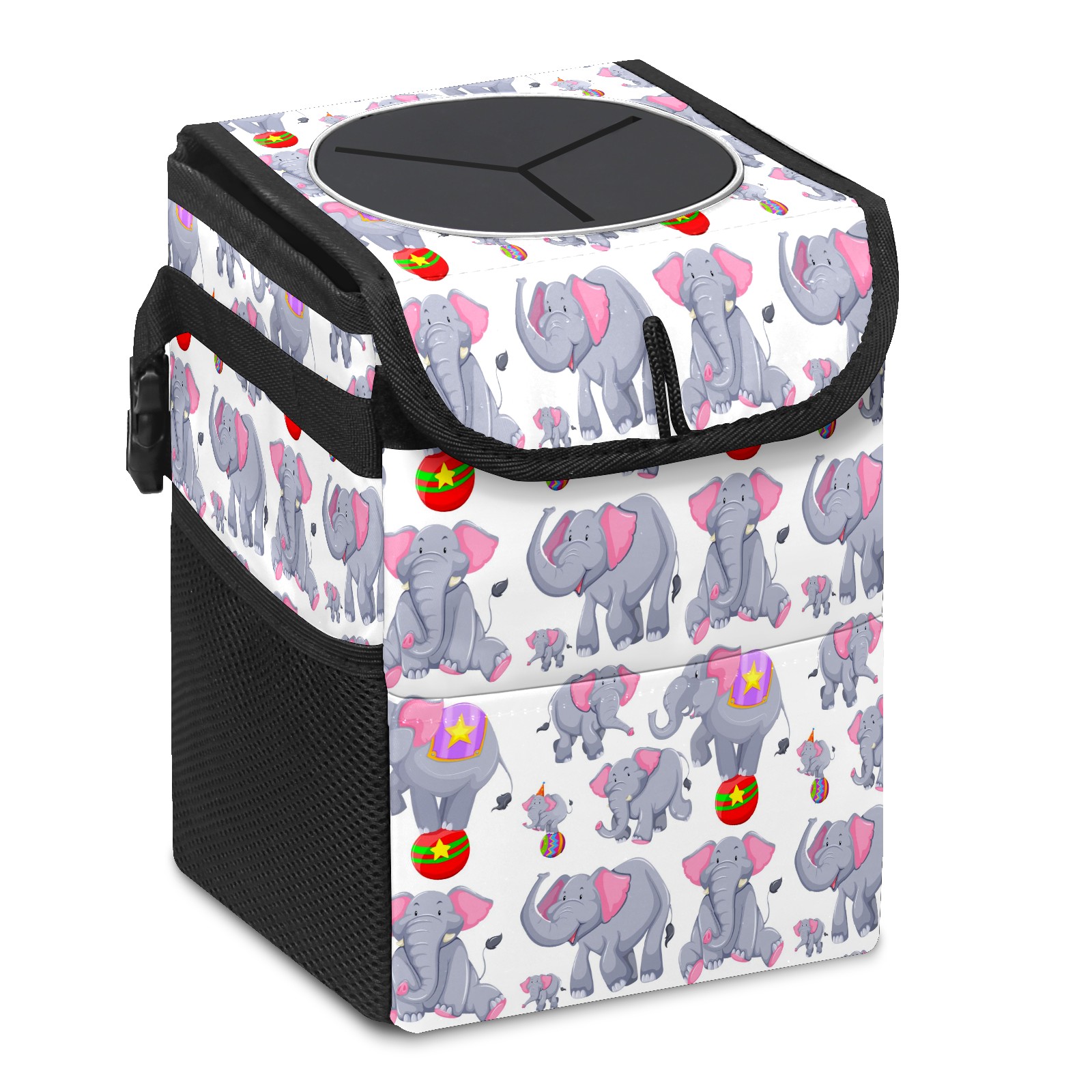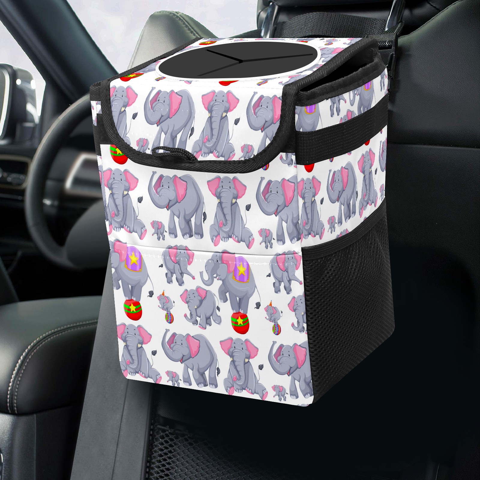 Car Trash Bin with Lid Auto Garbage Bag Hanging for Back Seat - Leakproof Trash Can for Cars SUVs Trucks Vehicle Car Accessories (Cute Gray Elephants Playing Ball)