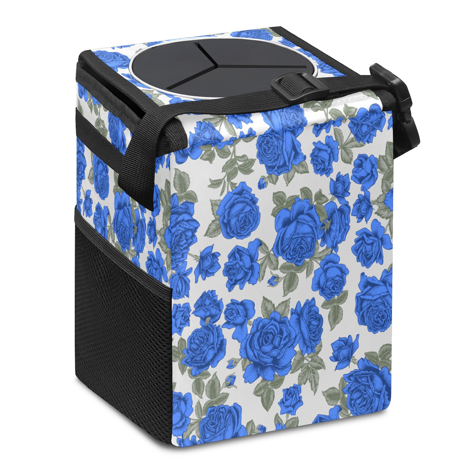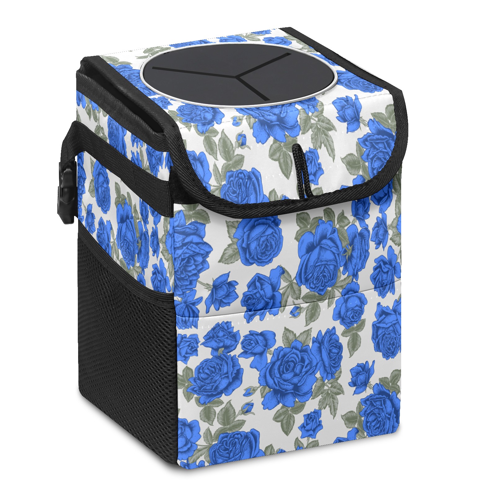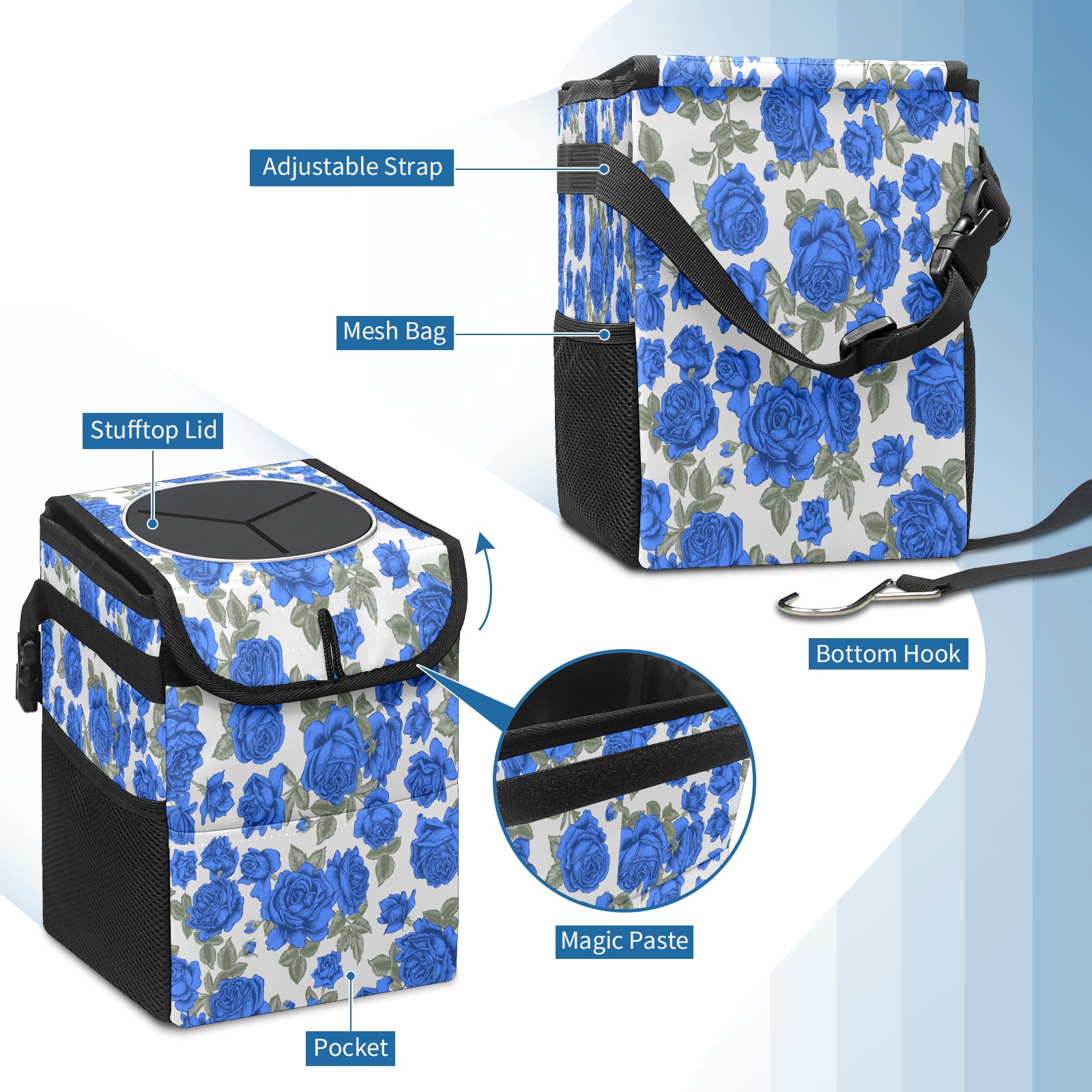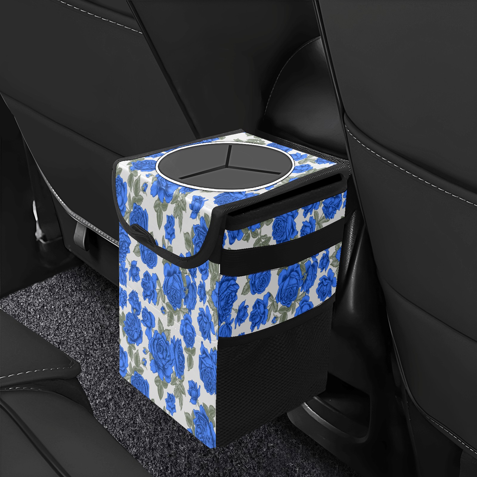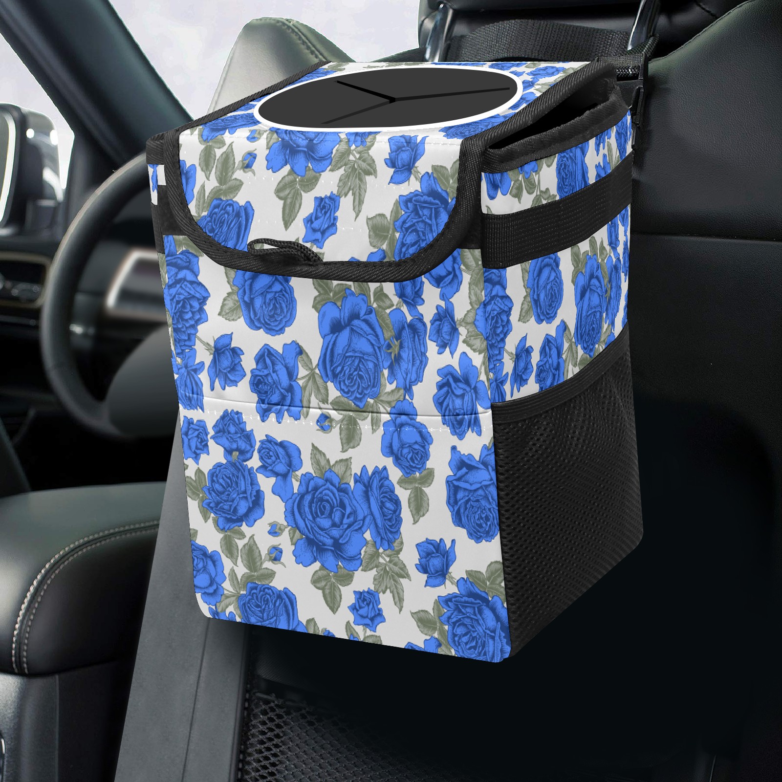 Car Trash Bin with Lid Auto Garbage Bag Hanging for Back Seat - Leakproof Trash Can for Cars SUVs Trucks Vehicle Car Accessories (Vintage Blue Roses Flower Beige)