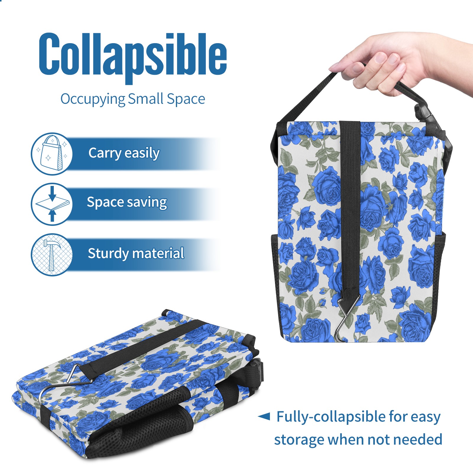 FOLDABLE & SPACE-SAVING Compact 9.5"×6.7"×6.3" size fits perfectly in any vehicle space Instantly folds flat when not in use - stores effortlessly under seats or in door pockets MULTI-FUNCTION ORGANIZER Large main compartment holds bottles, wrappers and tissues Additional pockets for wet wipes, masks or small accessories WATERPROOF & LEAKPROOF Made with premium leak-proof polyester material Contains messy spills from drinks, snacks, and food Wipe-clean surface resists stains and eliminates odors Package Includes 1× Car Trash Can
