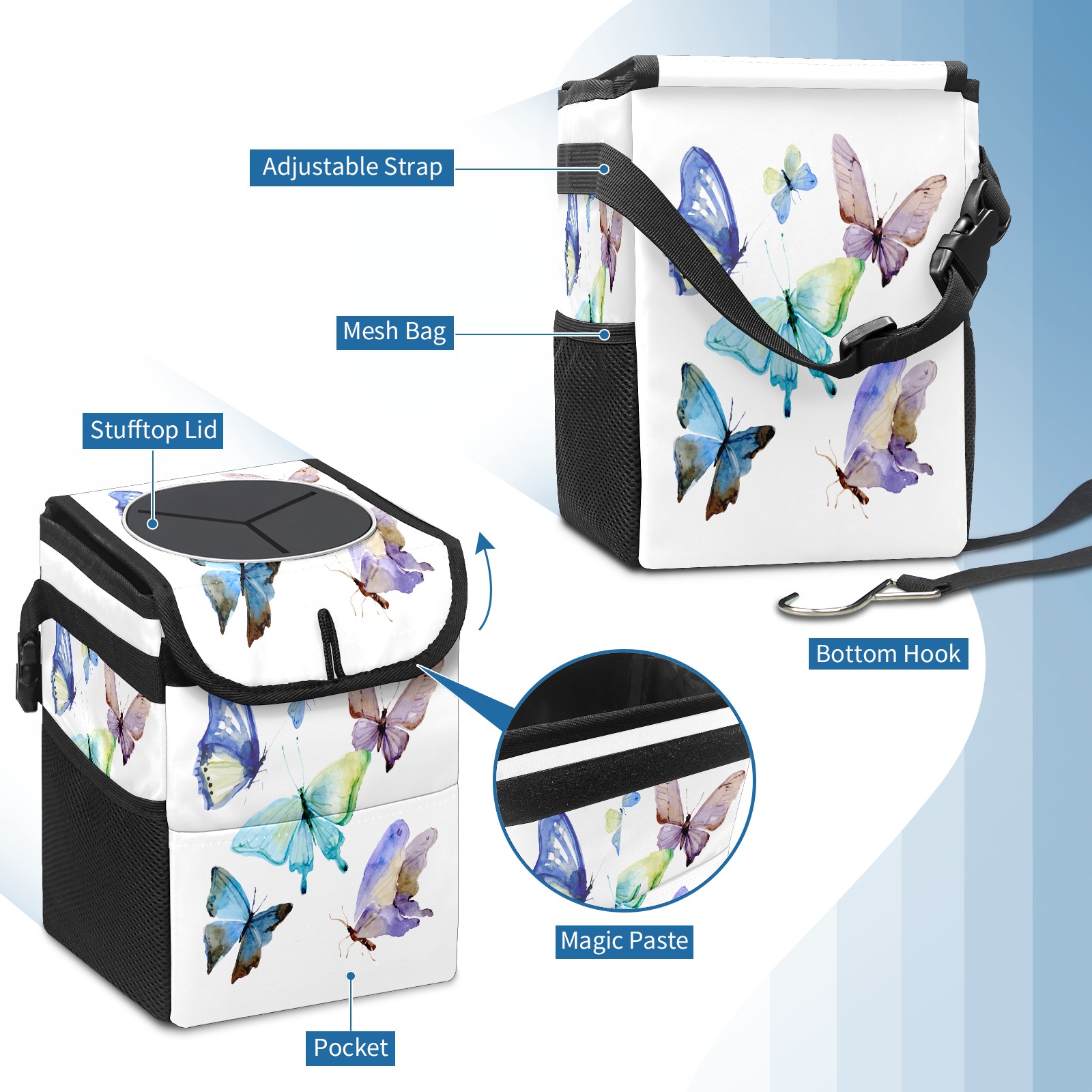 Эта многофункциональная автомобильная мусорная корзина отличается стильным принтом, сочетающим в себе практичность и эстетику. Изготовленная из высококачественной саржевой ткани с плетеными ремнями, она прочная, долговечная и износостойкая. Размеры корзины составляют 24×17×16 см (9,5×6,7×6,3 дюйма). Верхнее отверстие имеет прорезиненное покрытие для удобной утилизации мусора; боковые сетчатые карманы и передний карман обеспечивают удобное хранение закусок, телефонов и других мелких предметов.