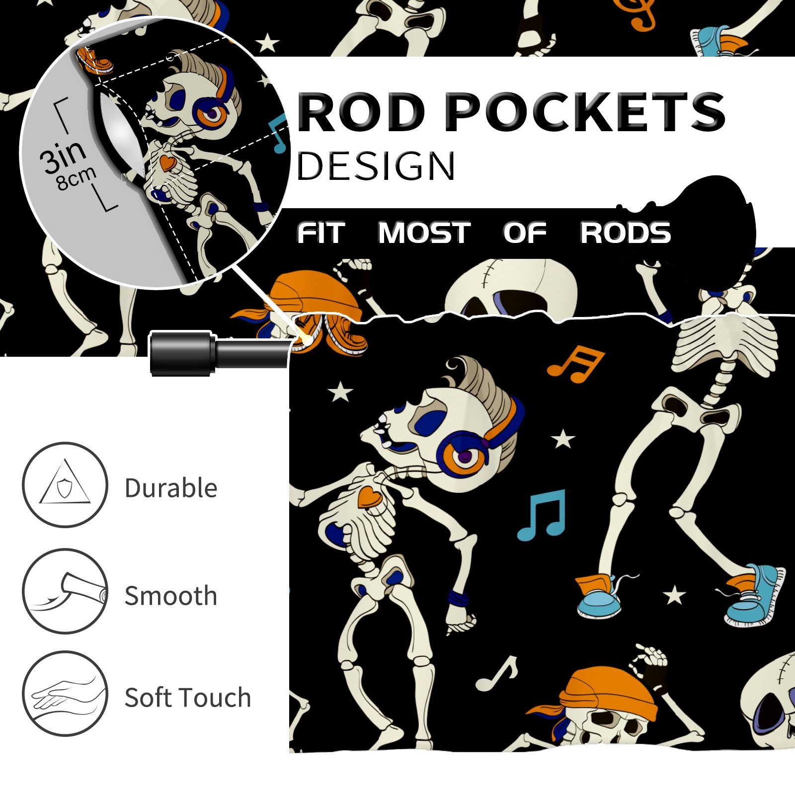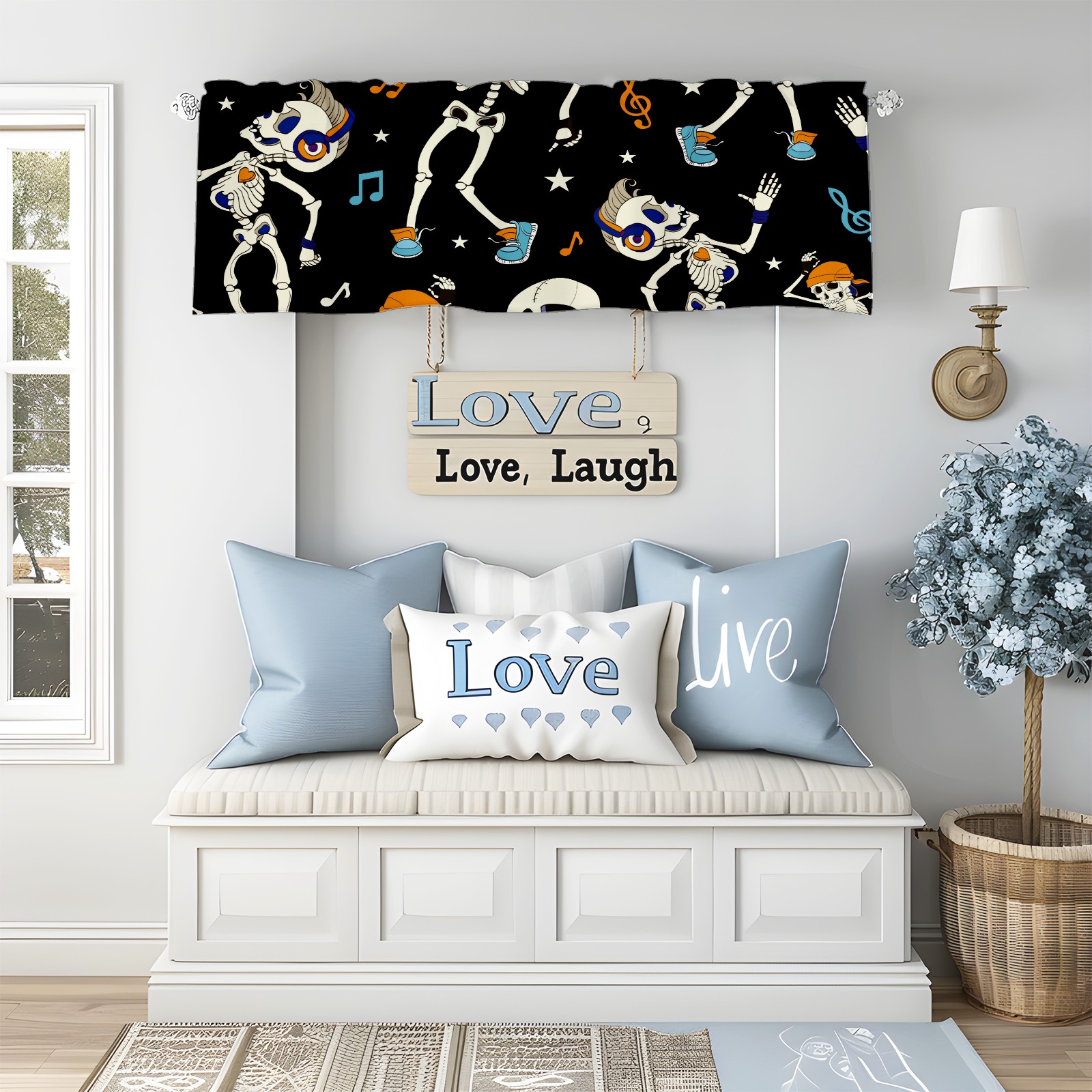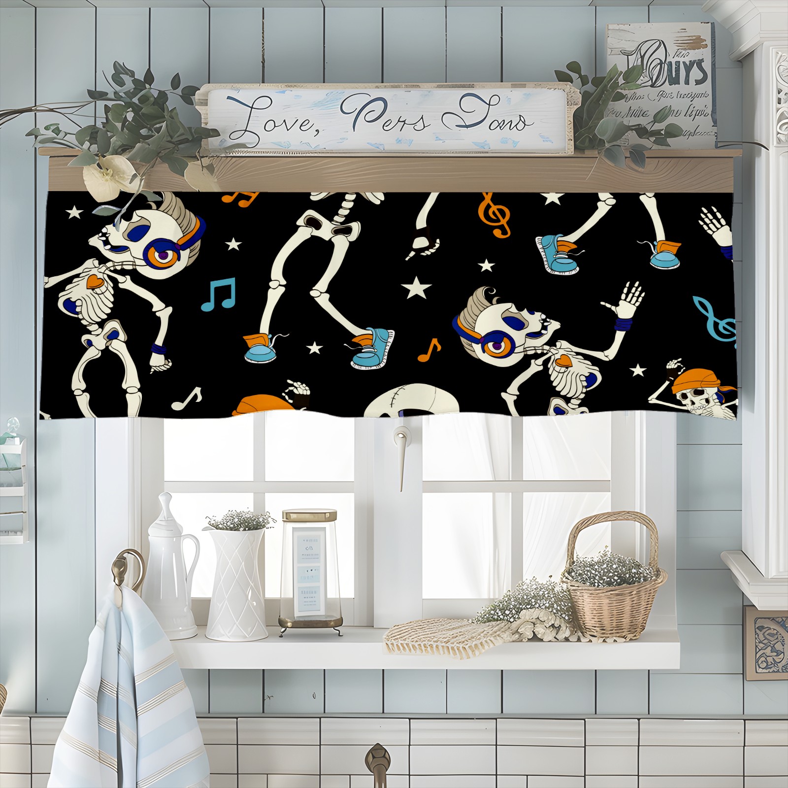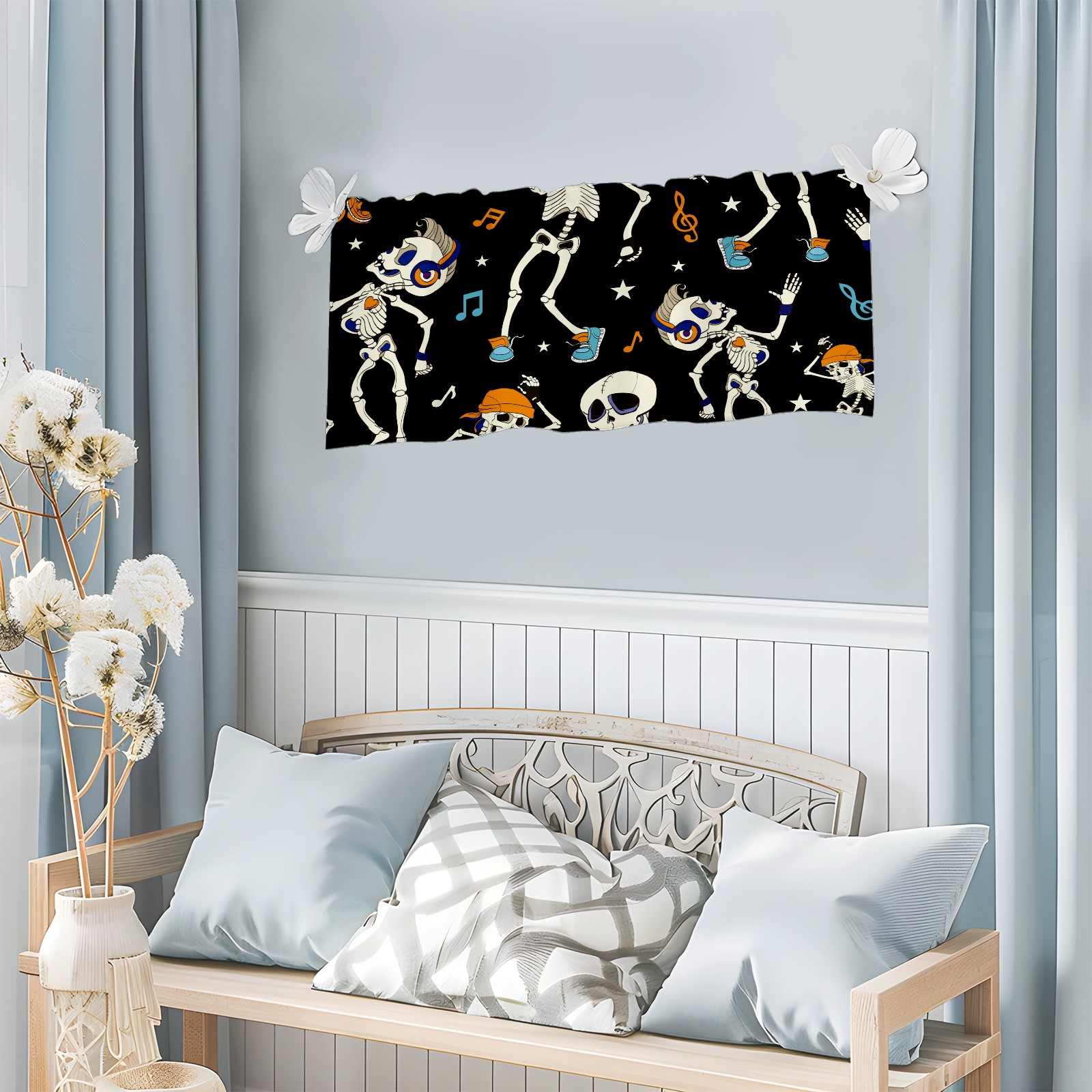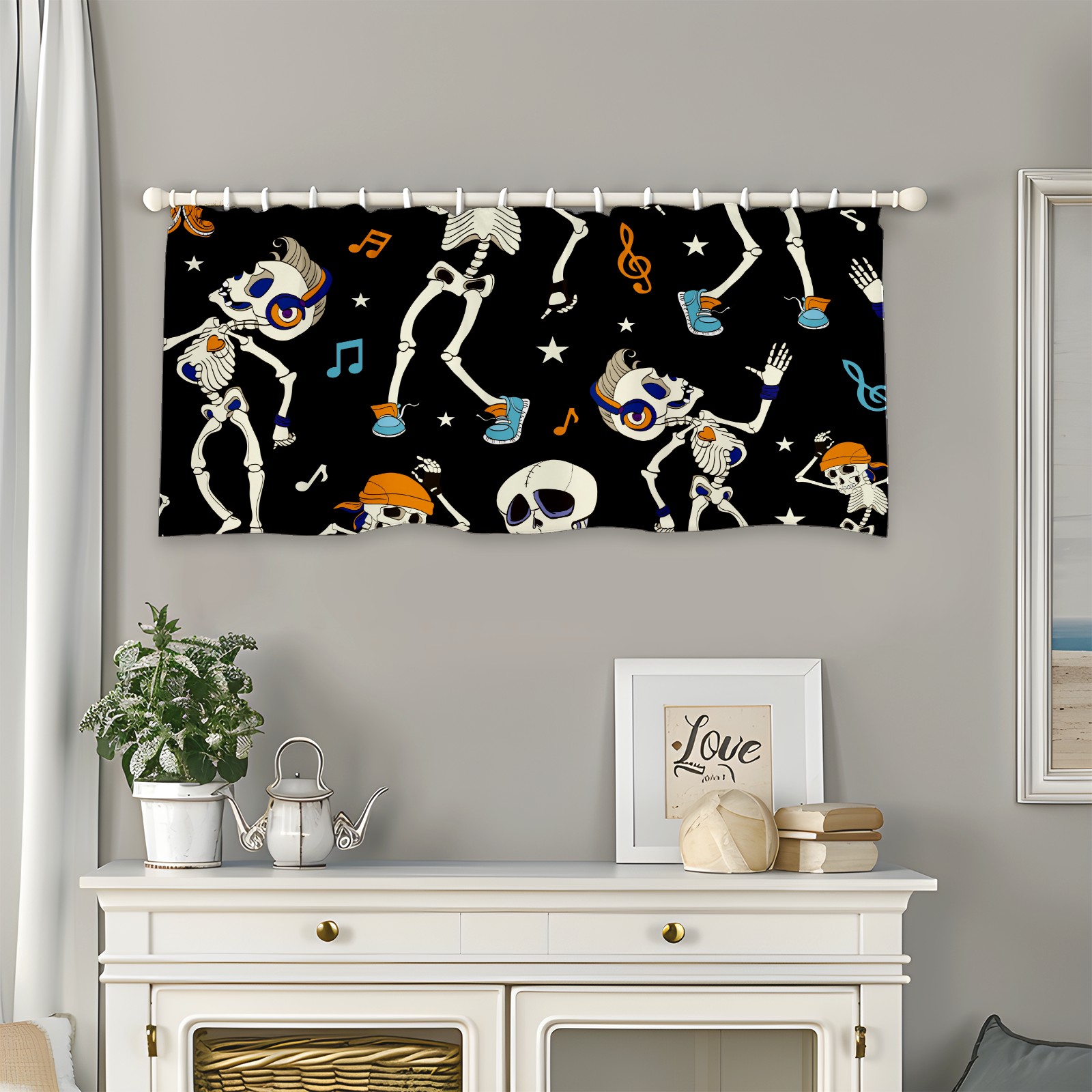 Шторы-панно для дома, декоративные драпировки для гостиной и спальни, легкие и прочные,Hallowee Listening Music Skeleton