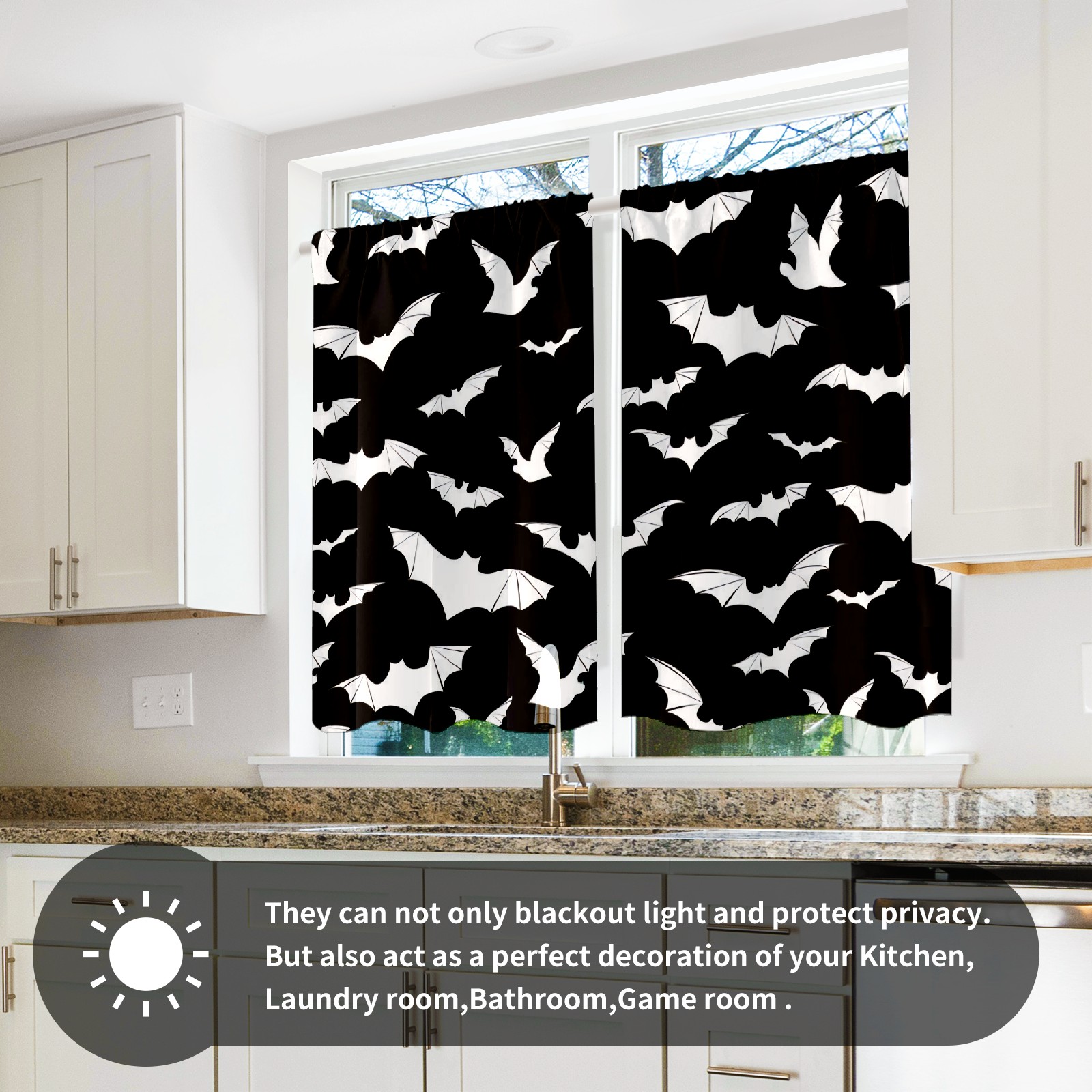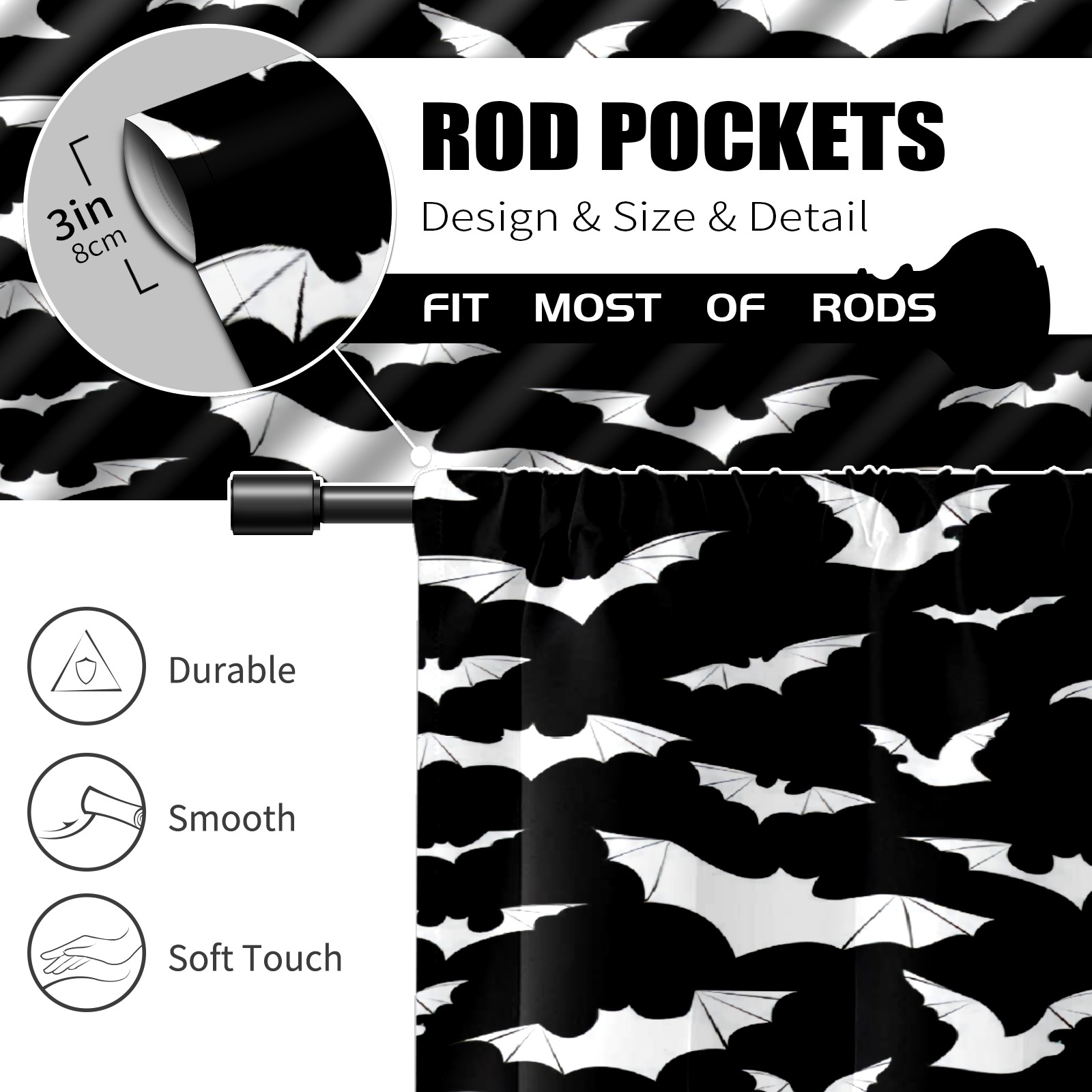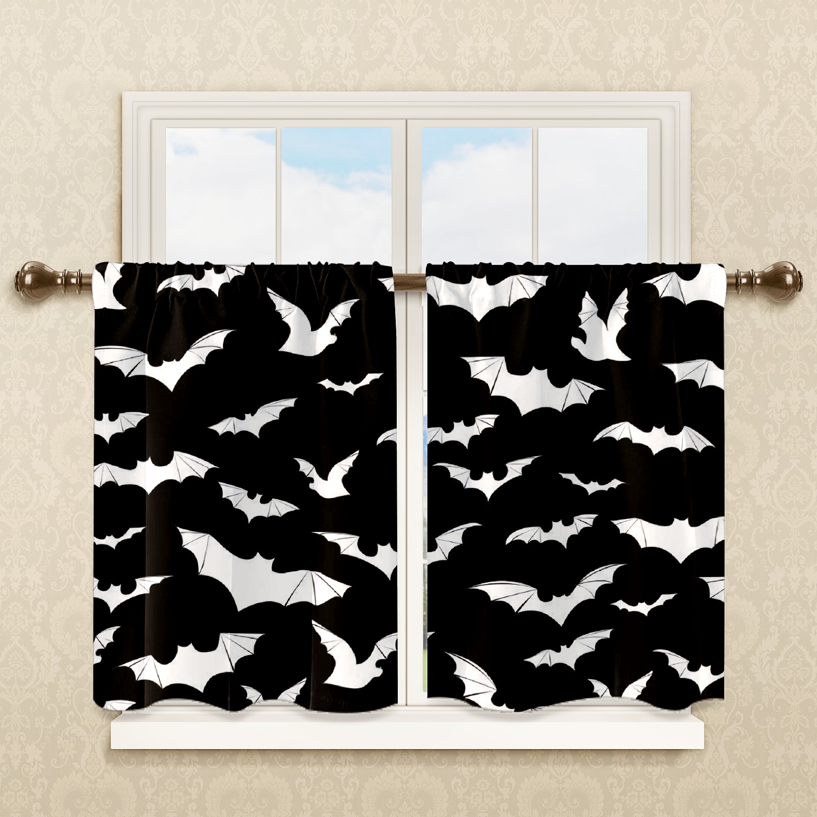 Шторы-панно для дома, декоративные драпировки для гостиной и спальни, легкие и прочные, Black And White Goth Bats