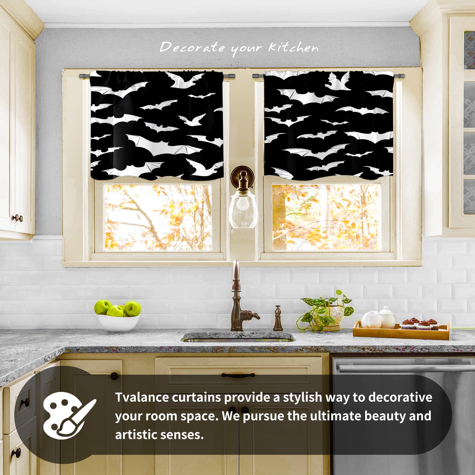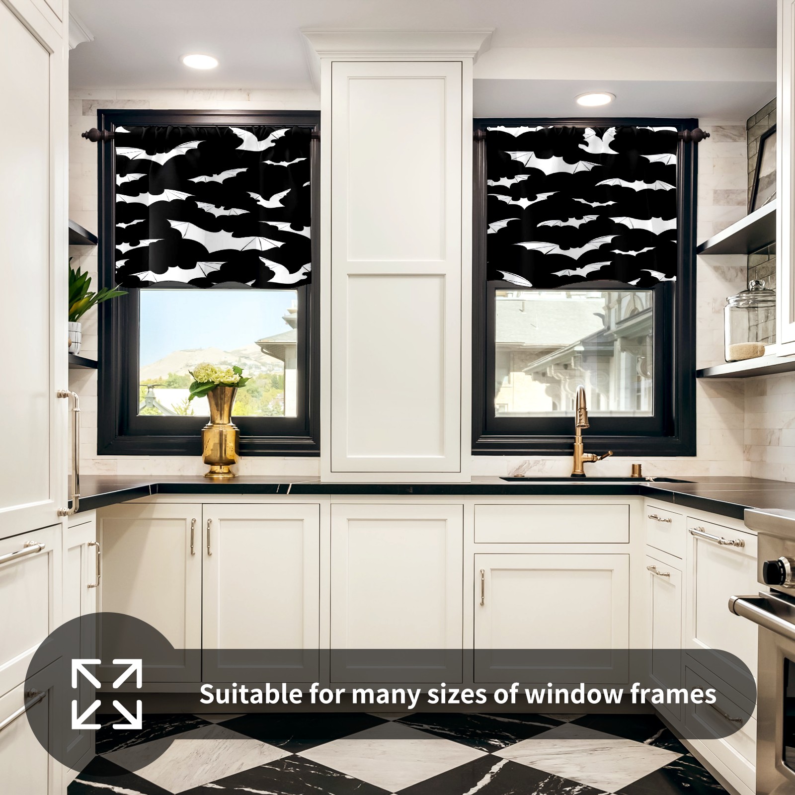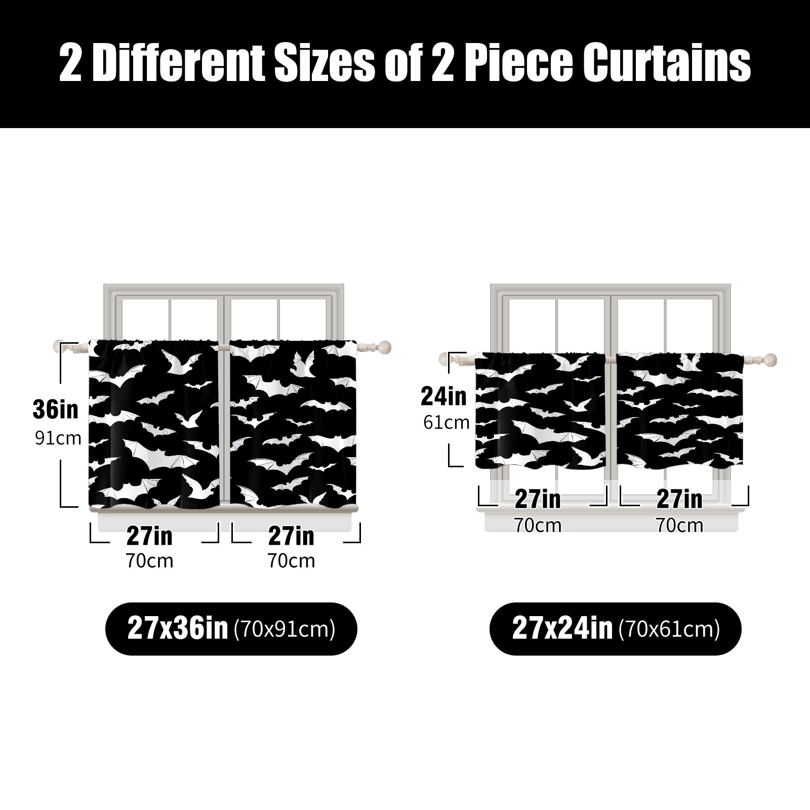 Шторы-панно для дома, декоративные драпировки для гостиной и спальни, легкие и прочные, Black And White Goth Bats