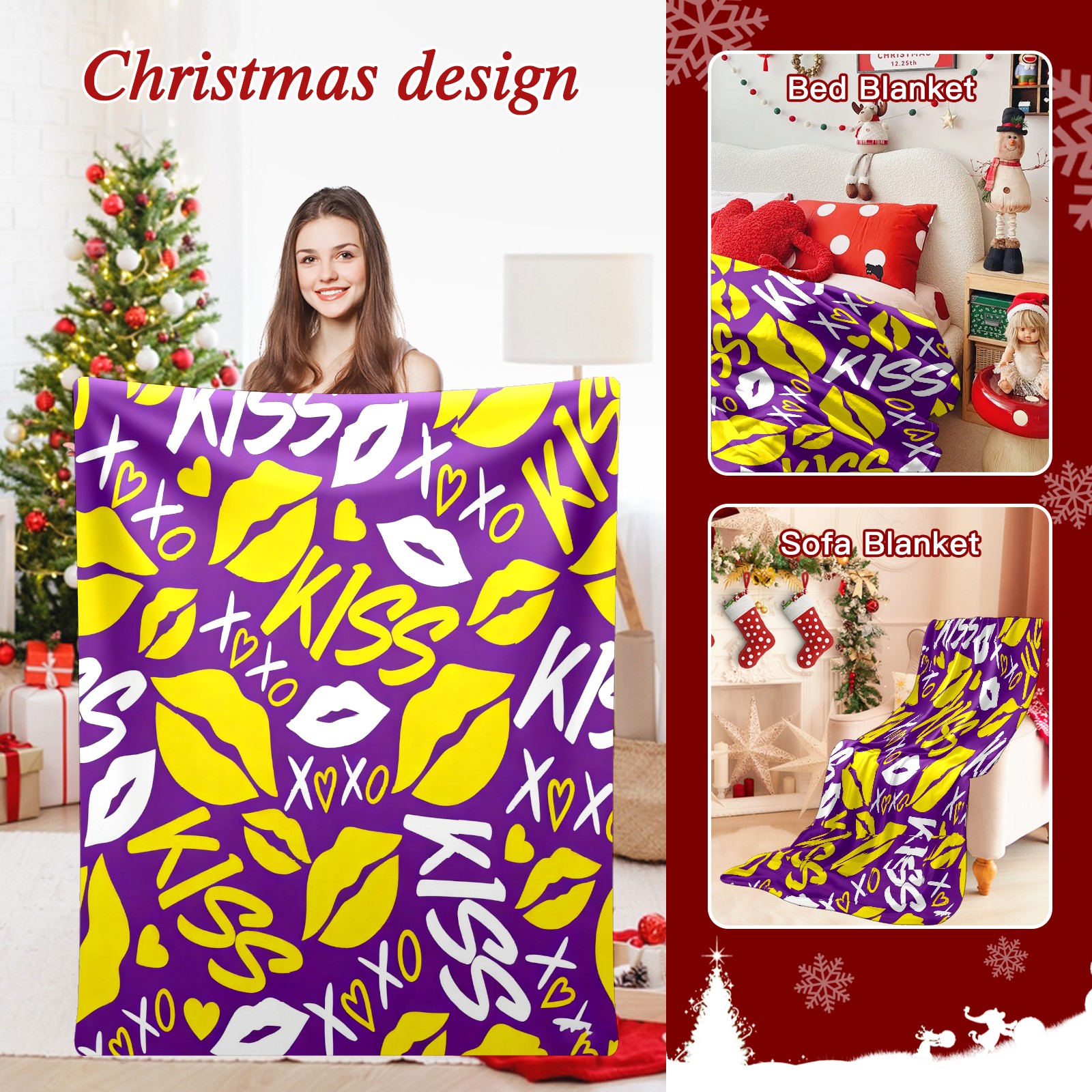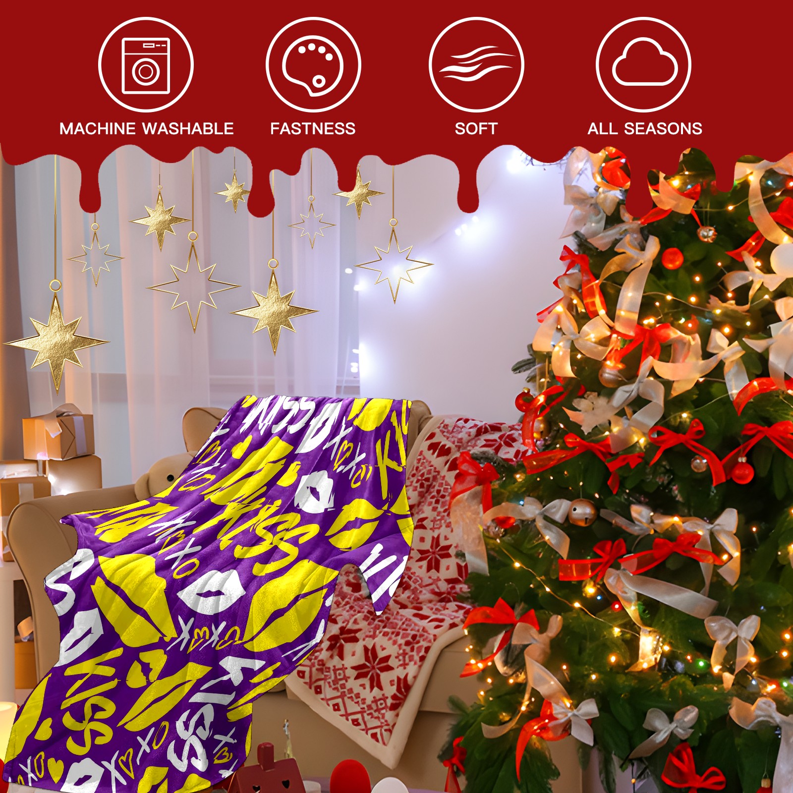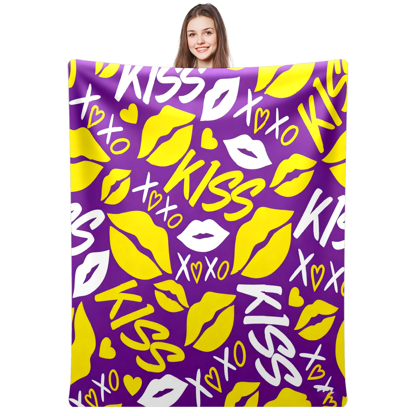 Counullo Flannel Throw Blanket, Ultra Soft Anti-Pilling Blanket for Couch & Bed, Lightweight Cozy Blanket for Travel, Home, Camping Gift - (30" x 39"), KISS Purple