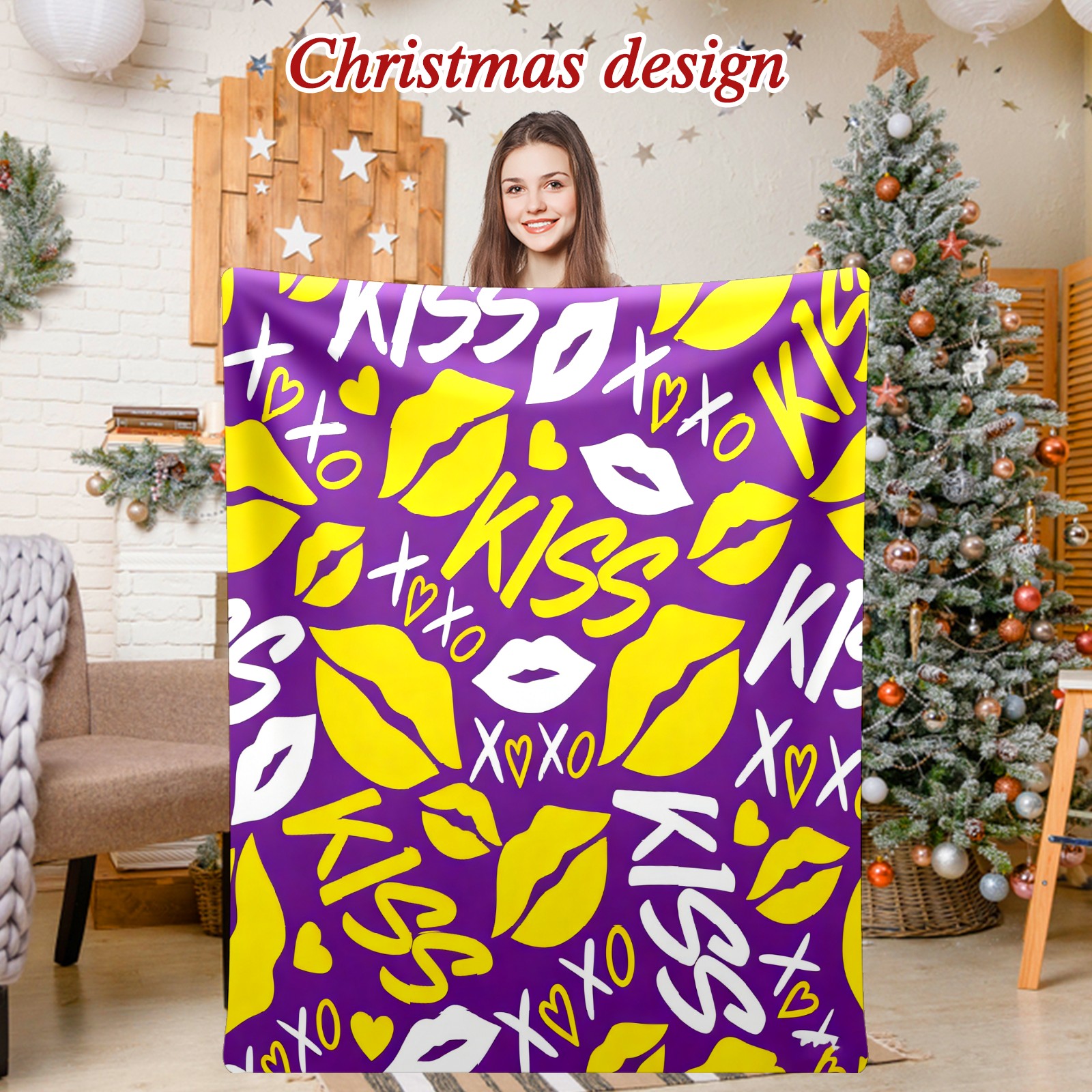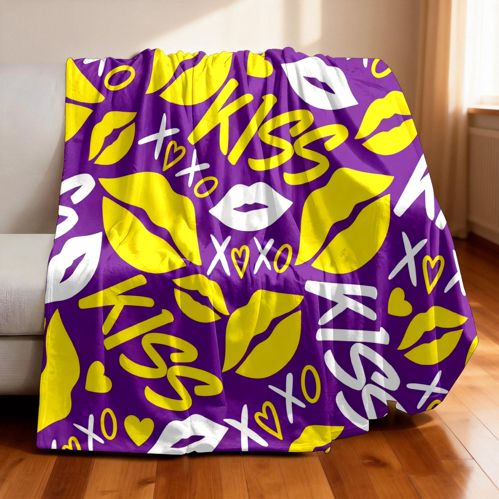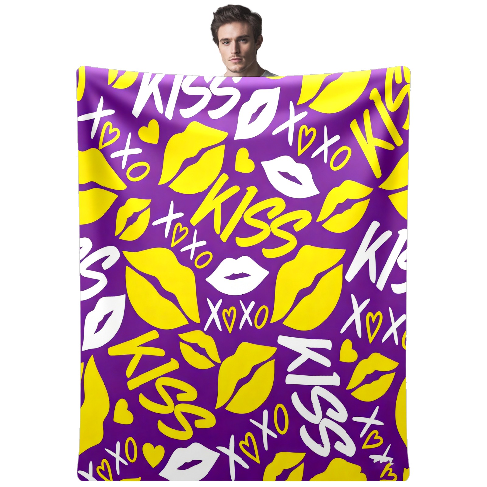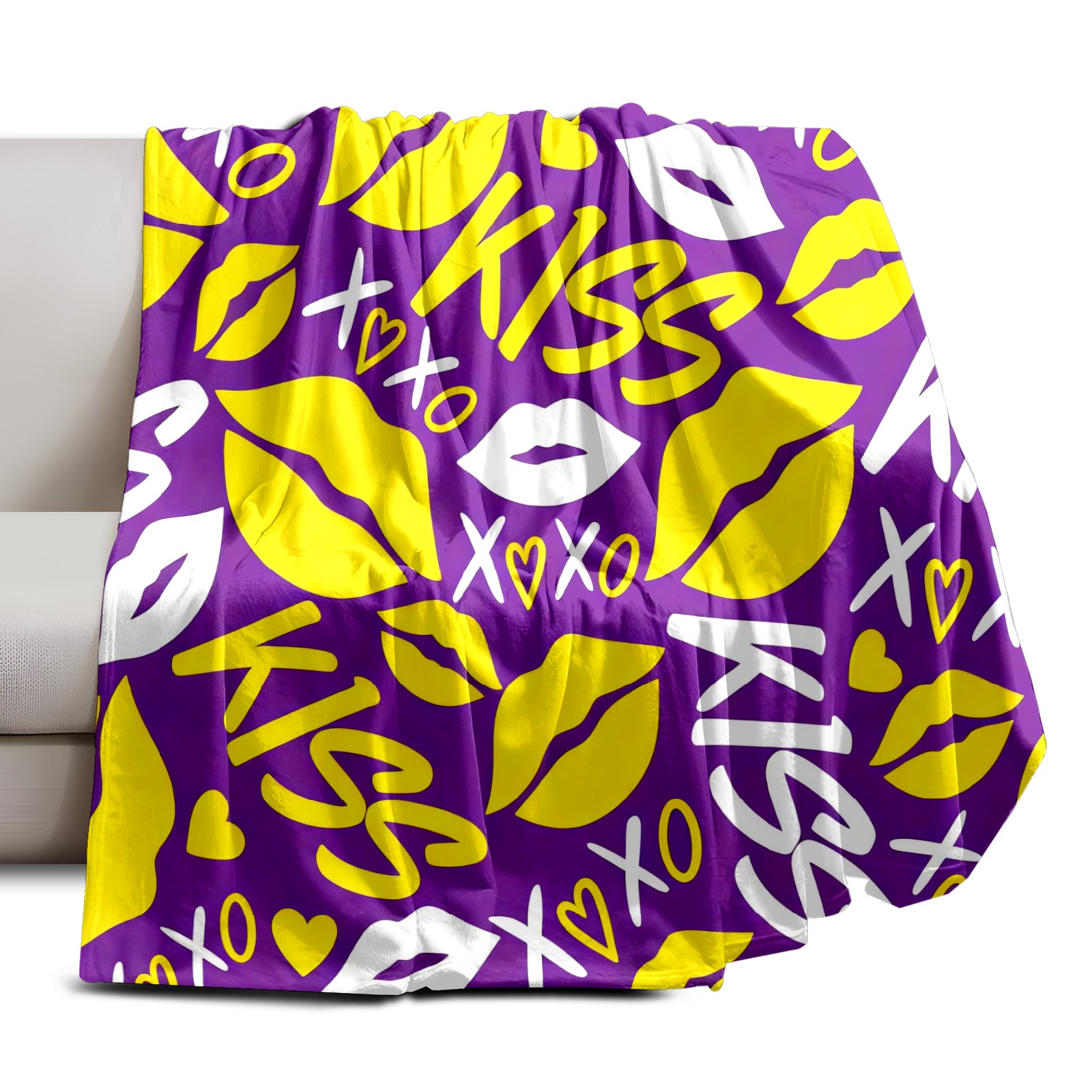 Counullo Flannel Throw Blanket, Ultra Soft Anti-Pilling Blanket for Couch & Bed, Lightweight Cozy Blanket for Travel, Home, Camping Gift - (30" x 39"), KISS Purple