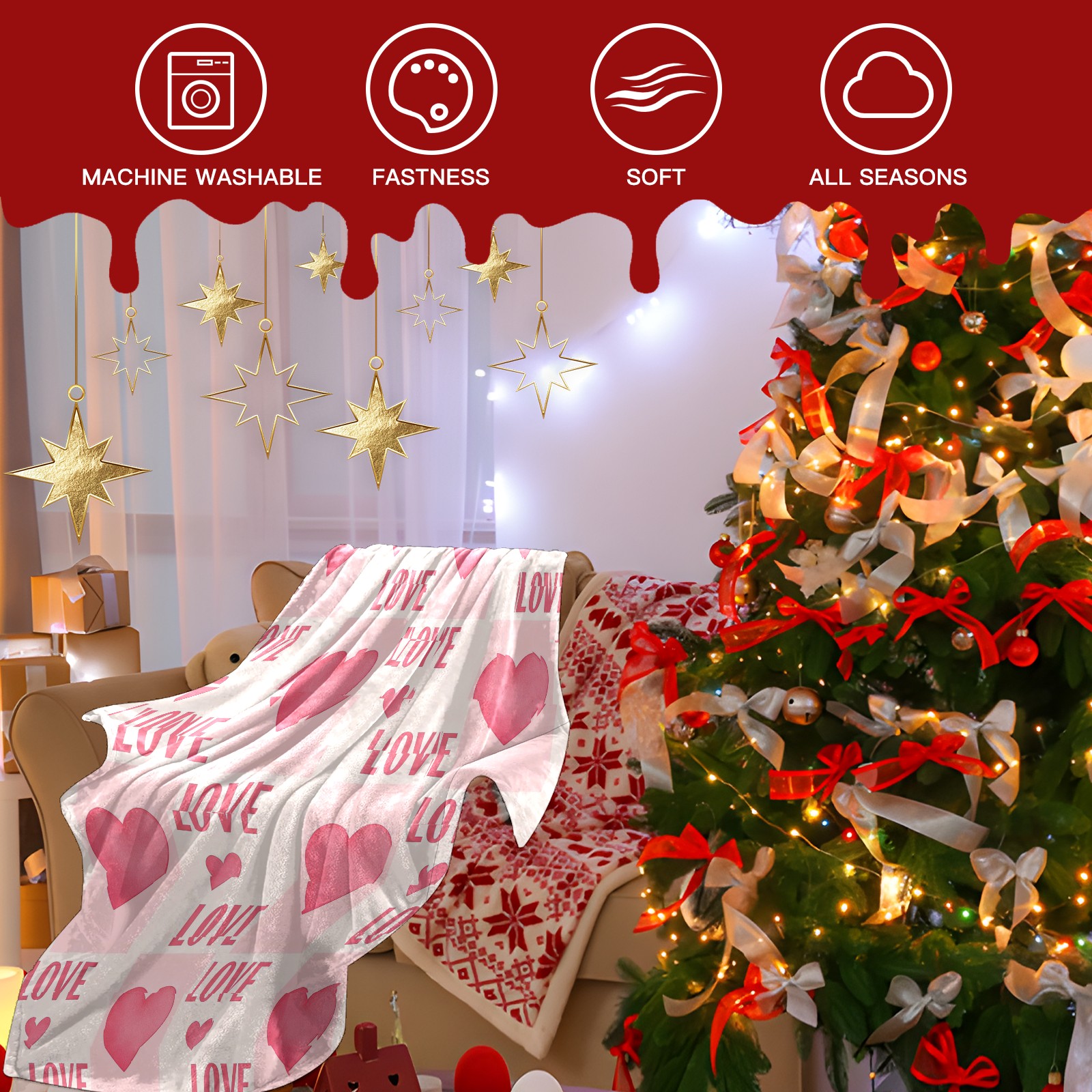 Counullo Flannel Throw Blanket, Ultra Soft Anti-Pilling Blanket for Couch & Bed, Lightweight Cozy Blanket for Travel, Home, Camping Gift - (30" x 39"), Heart Pink