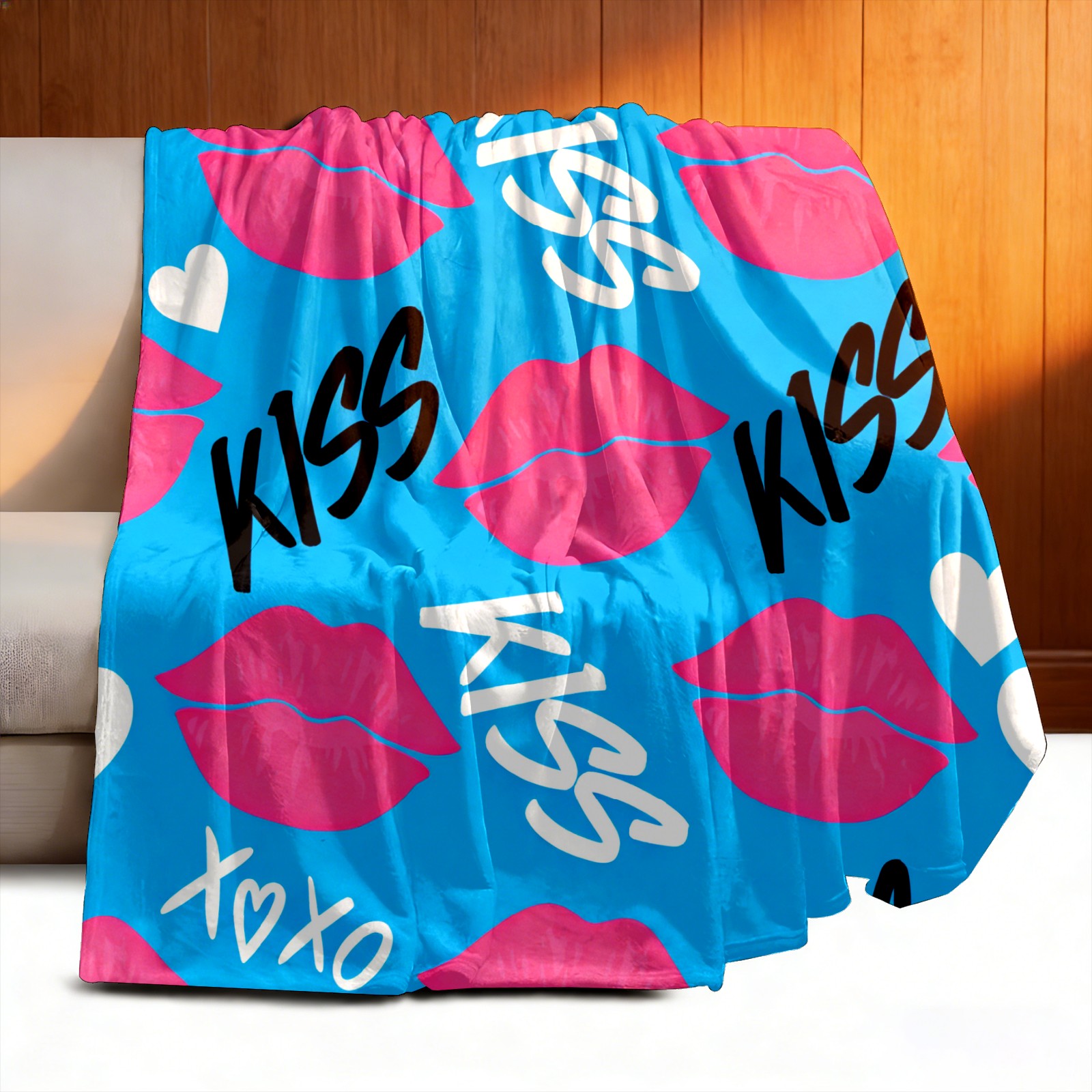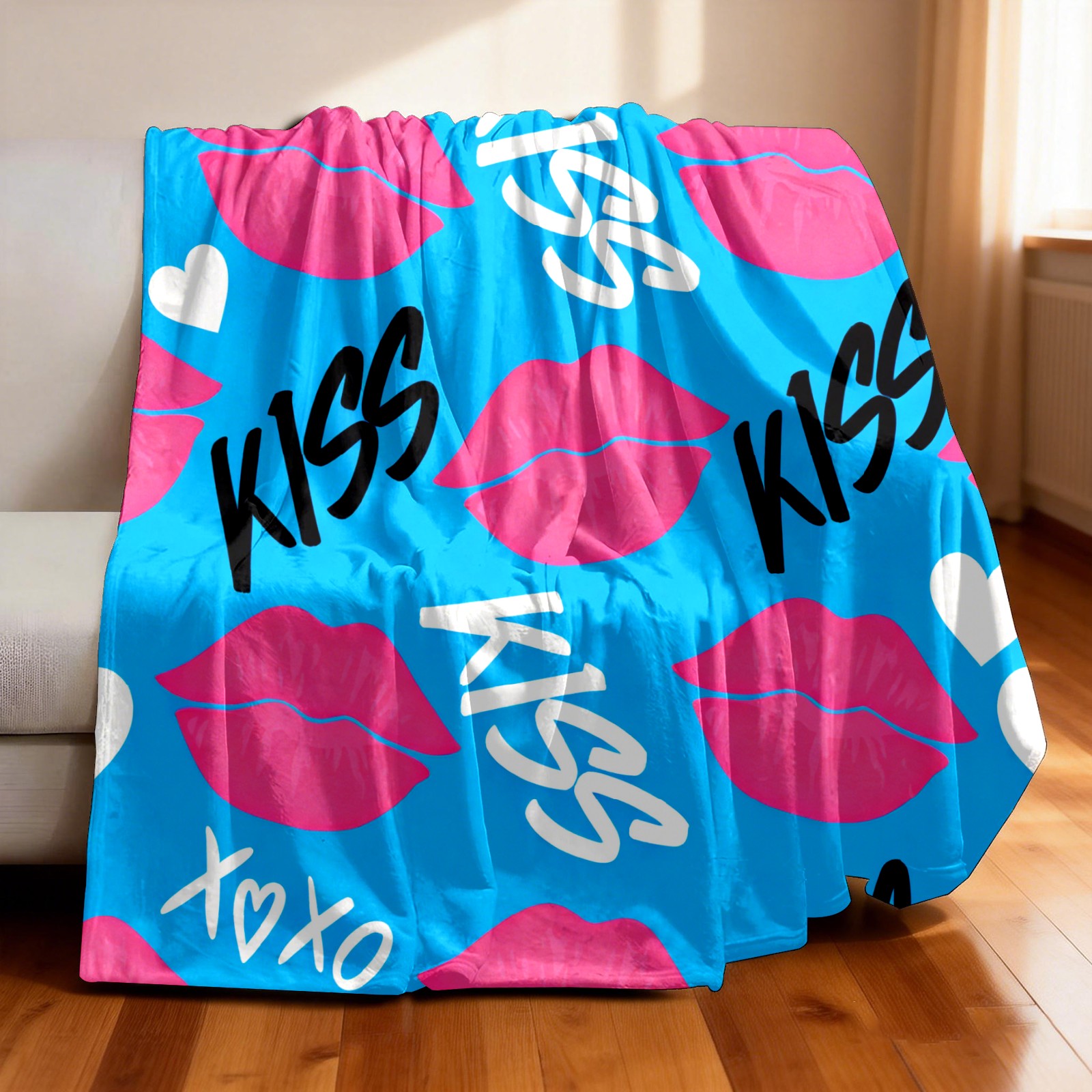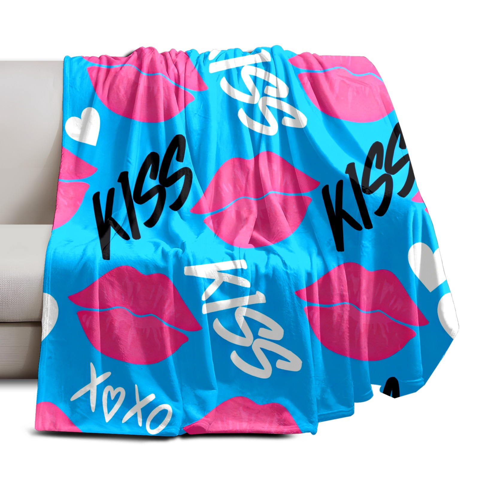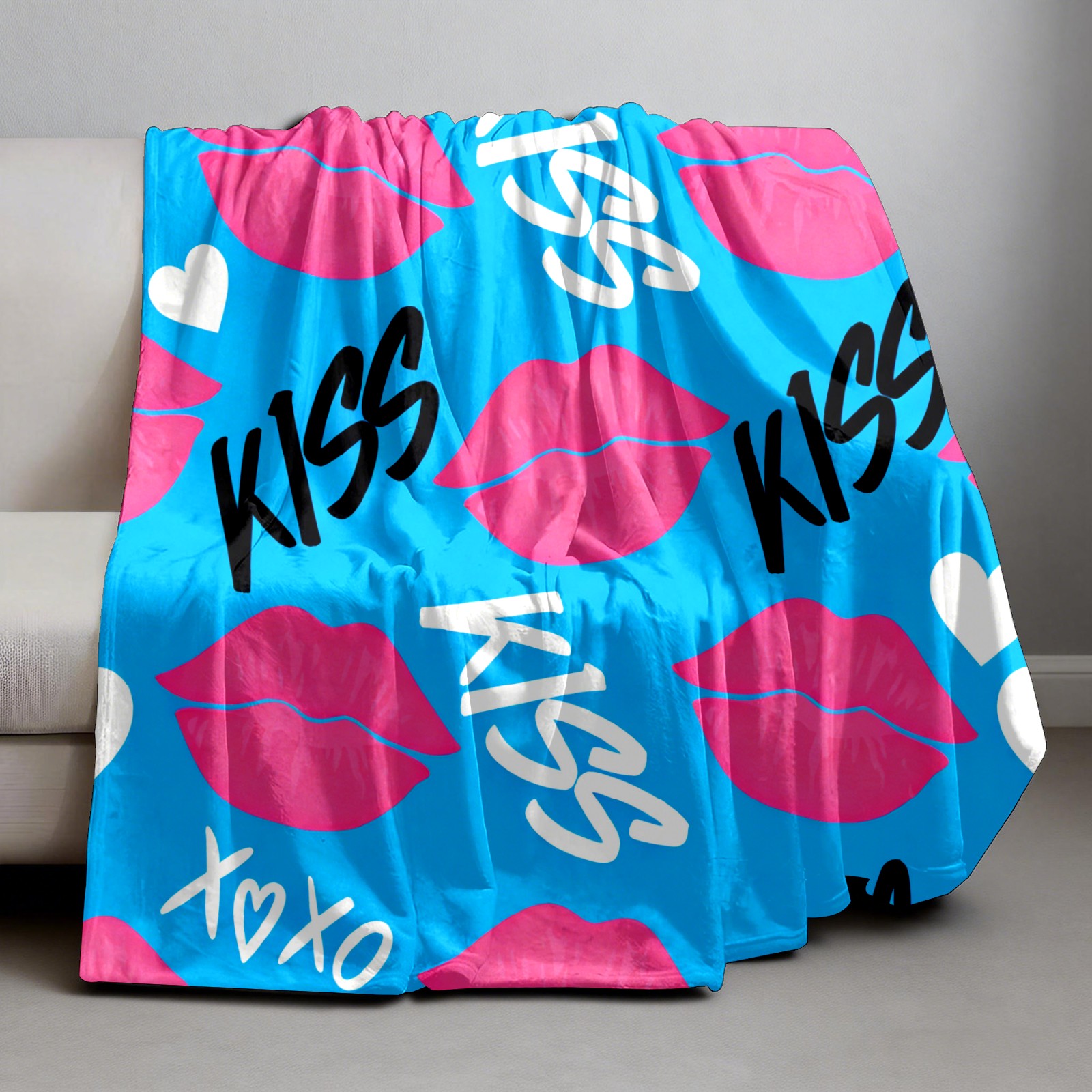 Counullo Flannel Throw Blanket, Ultra Soft Anti-Pilling Blanket for Couch & Bed, Lightweight Cozy Blanket for Travel, Home, Camping Gift - (30" x 39"), KISS Blue