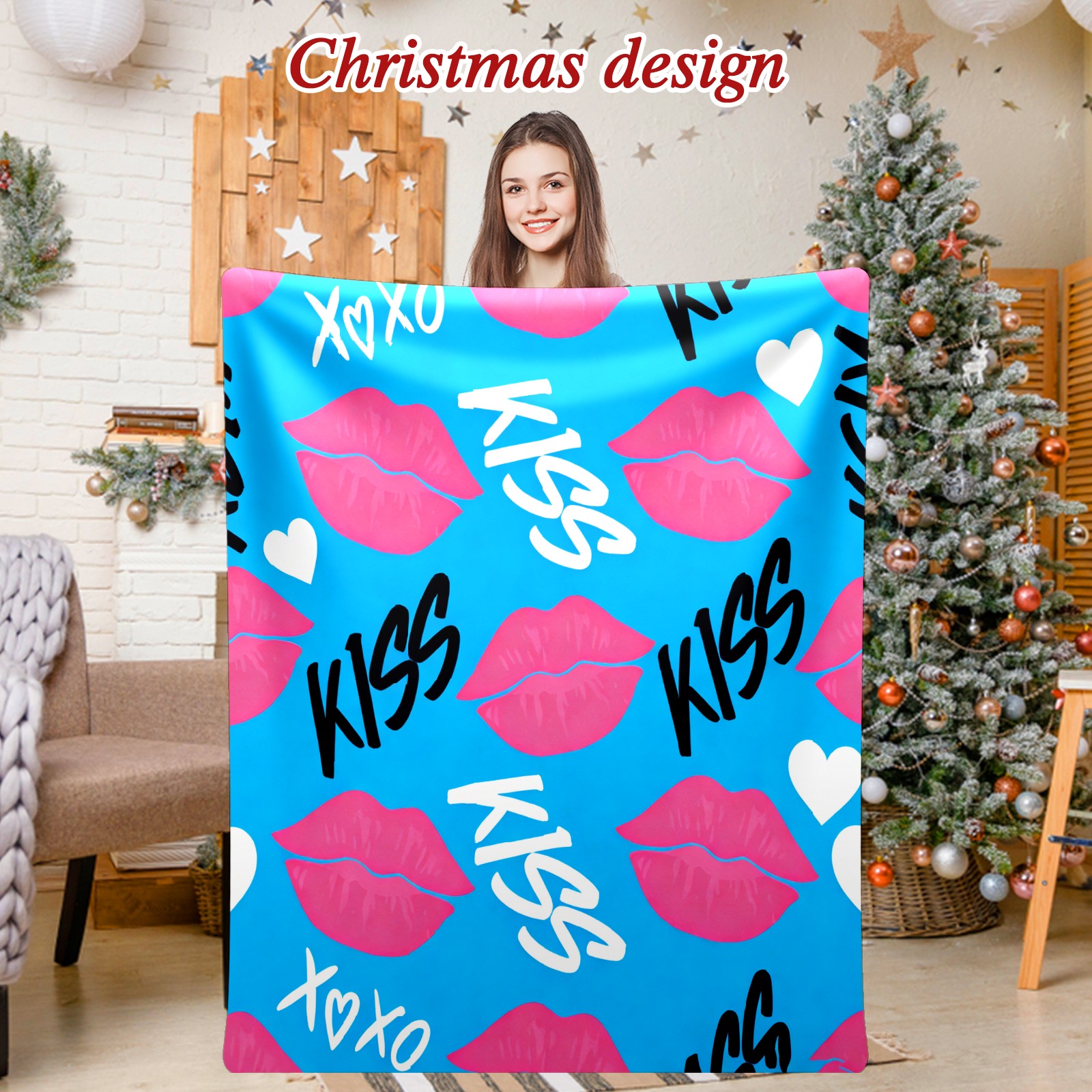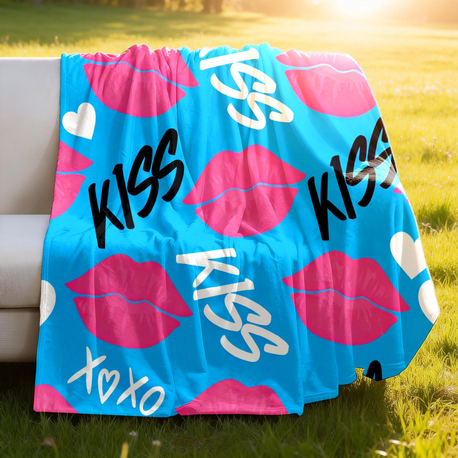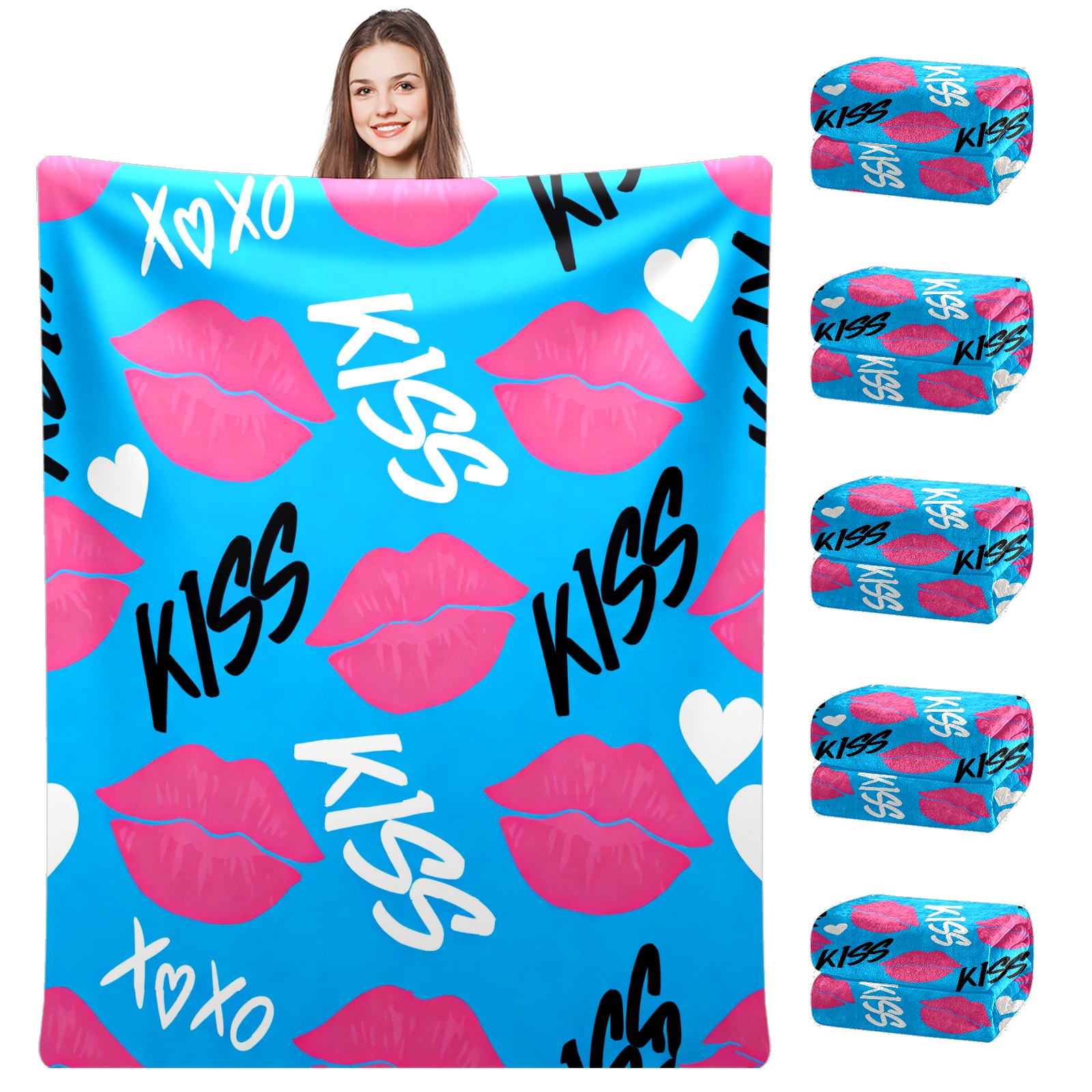 Counullo Flannel Throw Blanket, Ultra Soft Anti-Pilling Blanket for Couch & Bed, Lightweight Cozy Blanket for Travel, Home, Camping Gift - (30" x 39"), KISS Blue