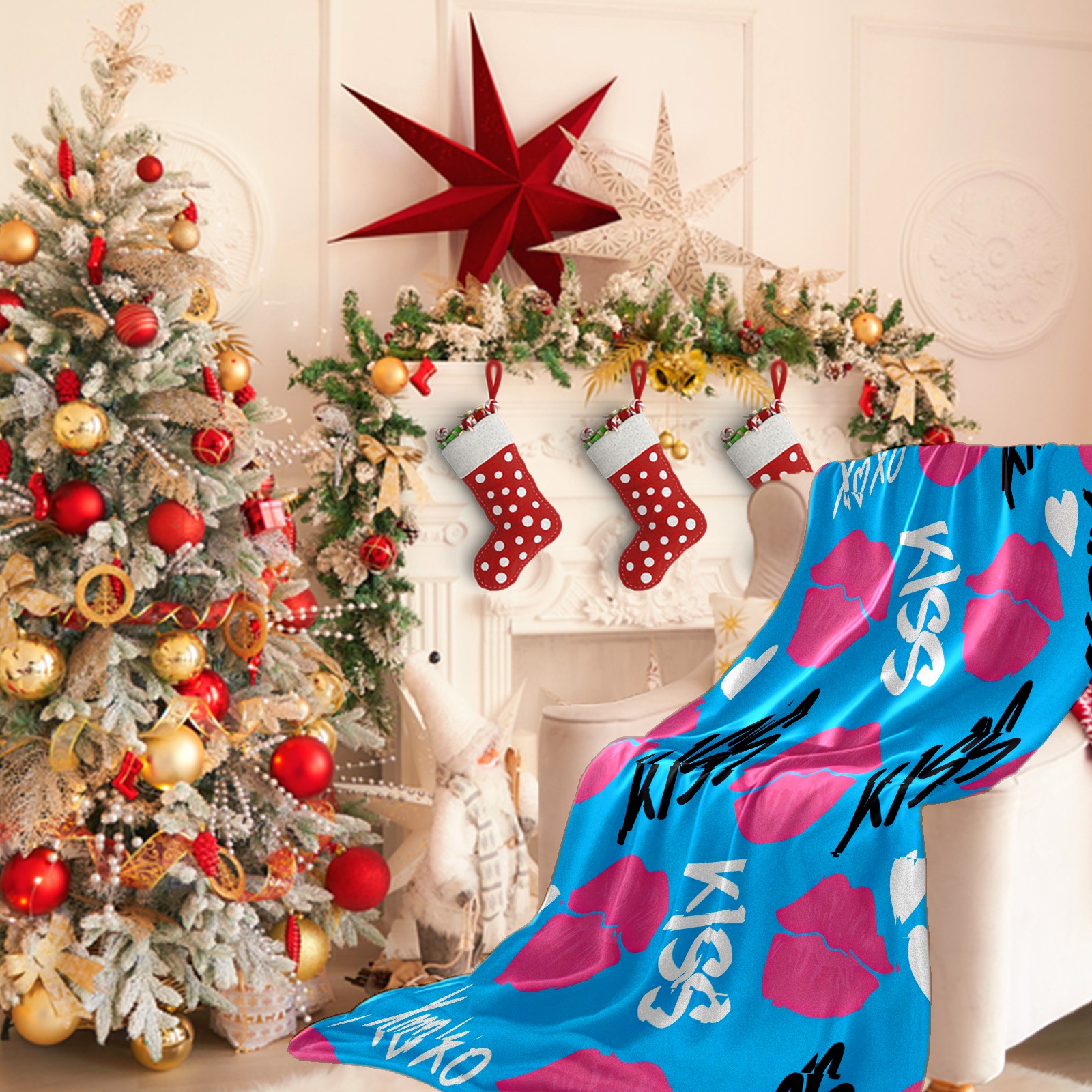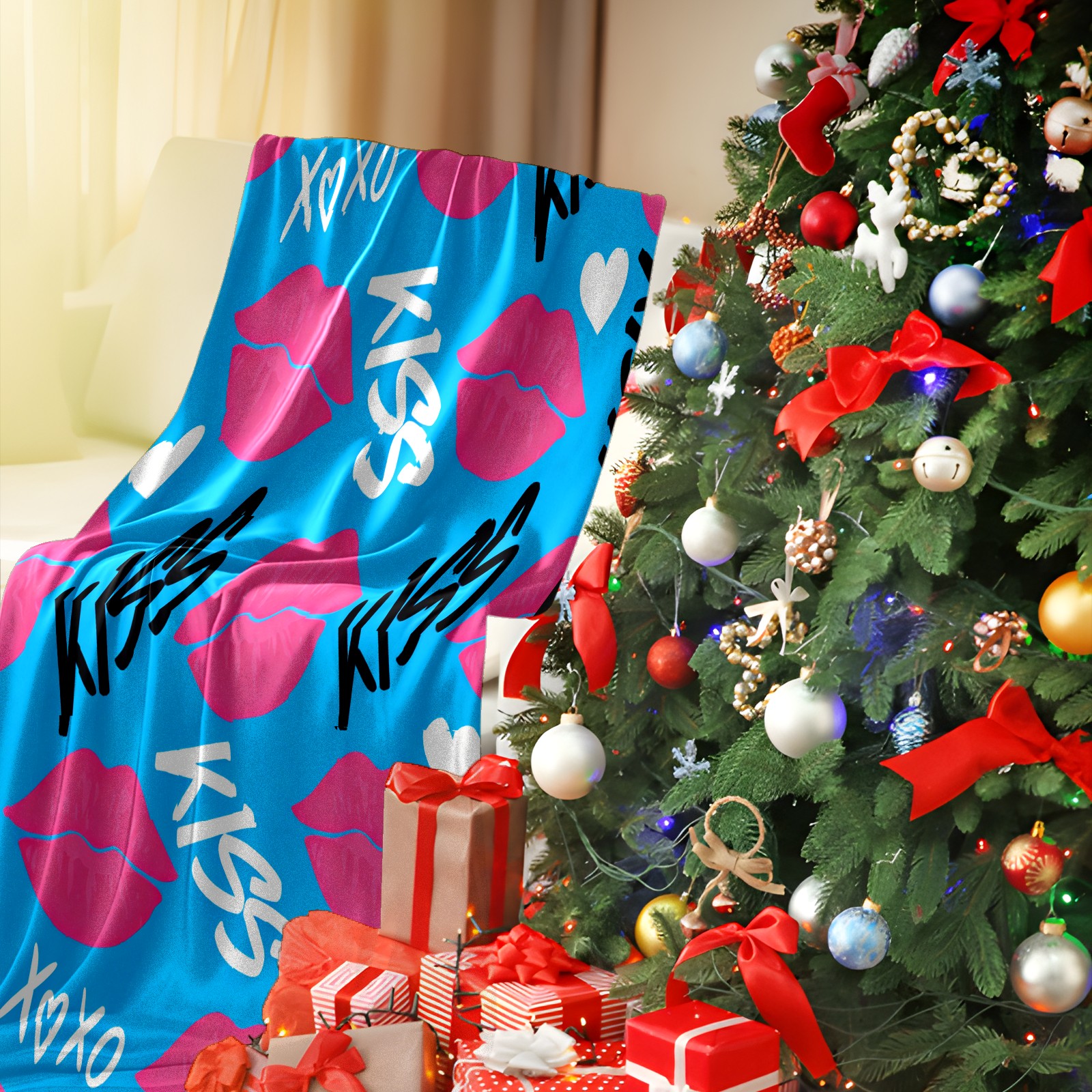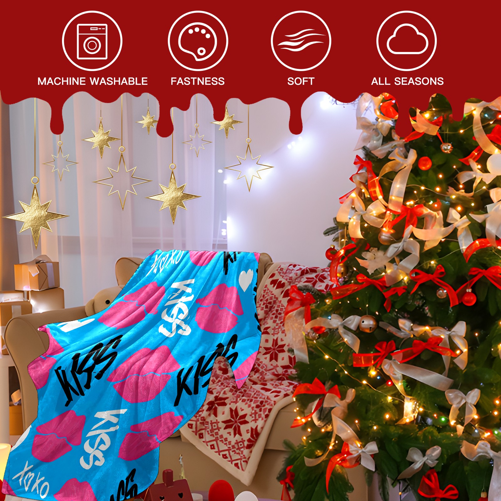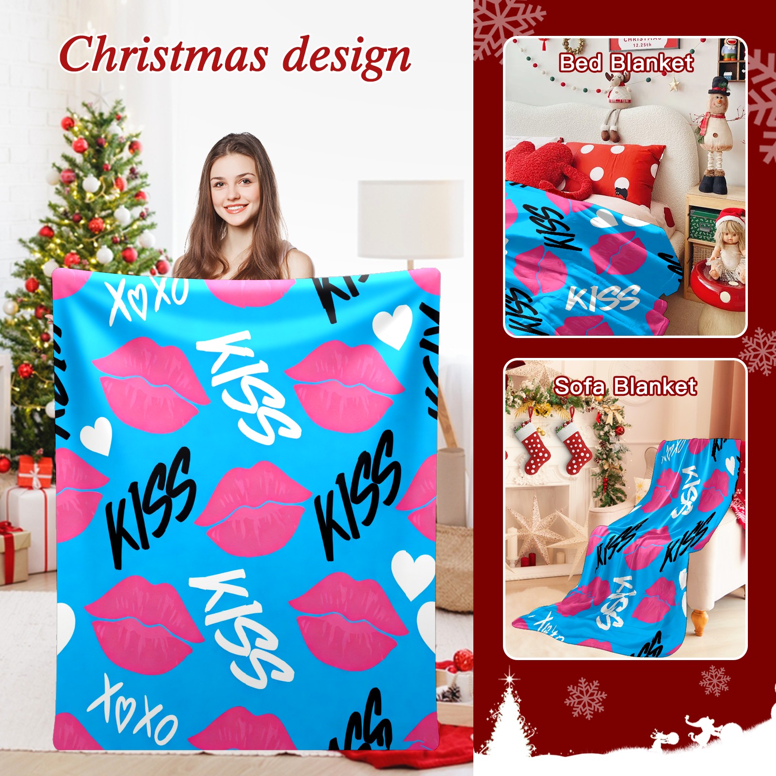 Counullo Flannel Throw Blanket, Ultra Soft Anti-Pilling Blanket for Couch & Bed, Lightweight Cozy Blanket for Travel, Home, Camping Gift - (30" x 39"), KISS Blue