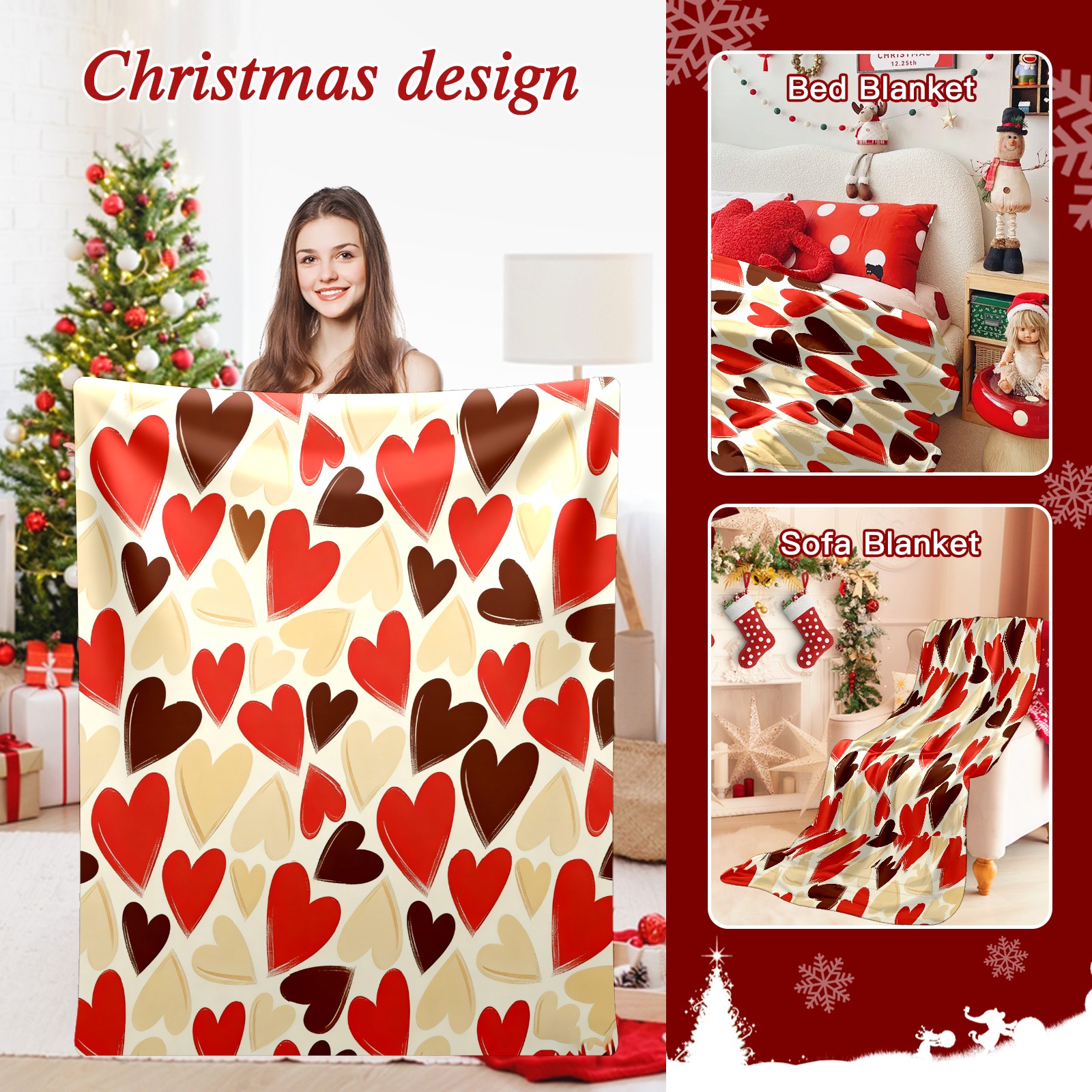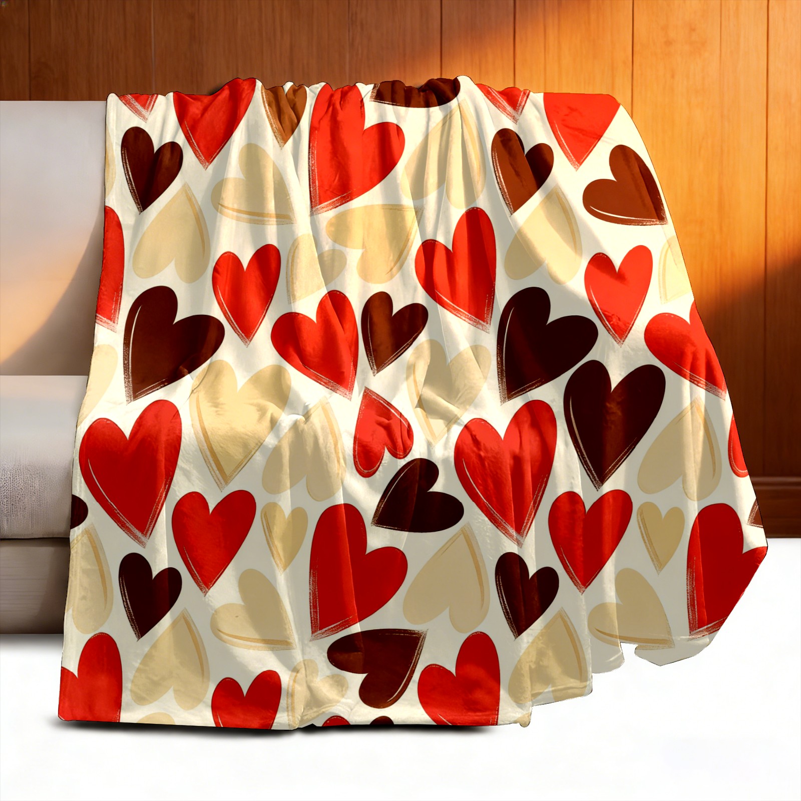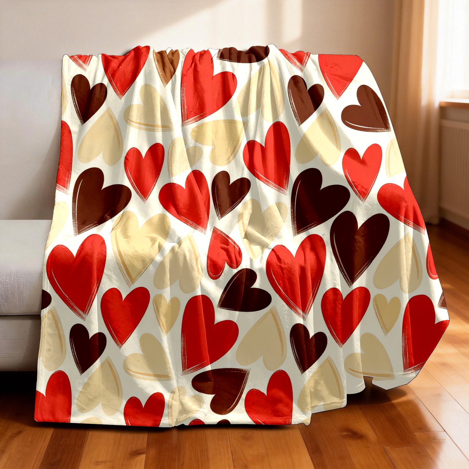 Counullo Flannel Throw Blanket, Ultra Soft Anti-Pilling Blanket for Couch & Bed, Lightweight Cozy Blanket for Travel, Home, Camping Gift - (30" x 39"), Heart Warm Brown