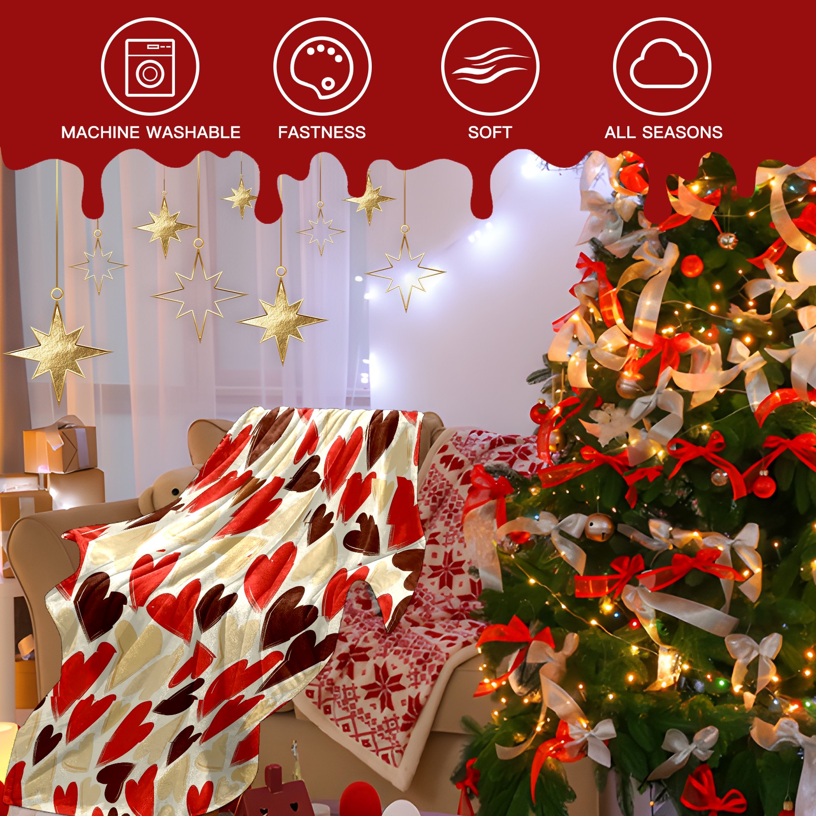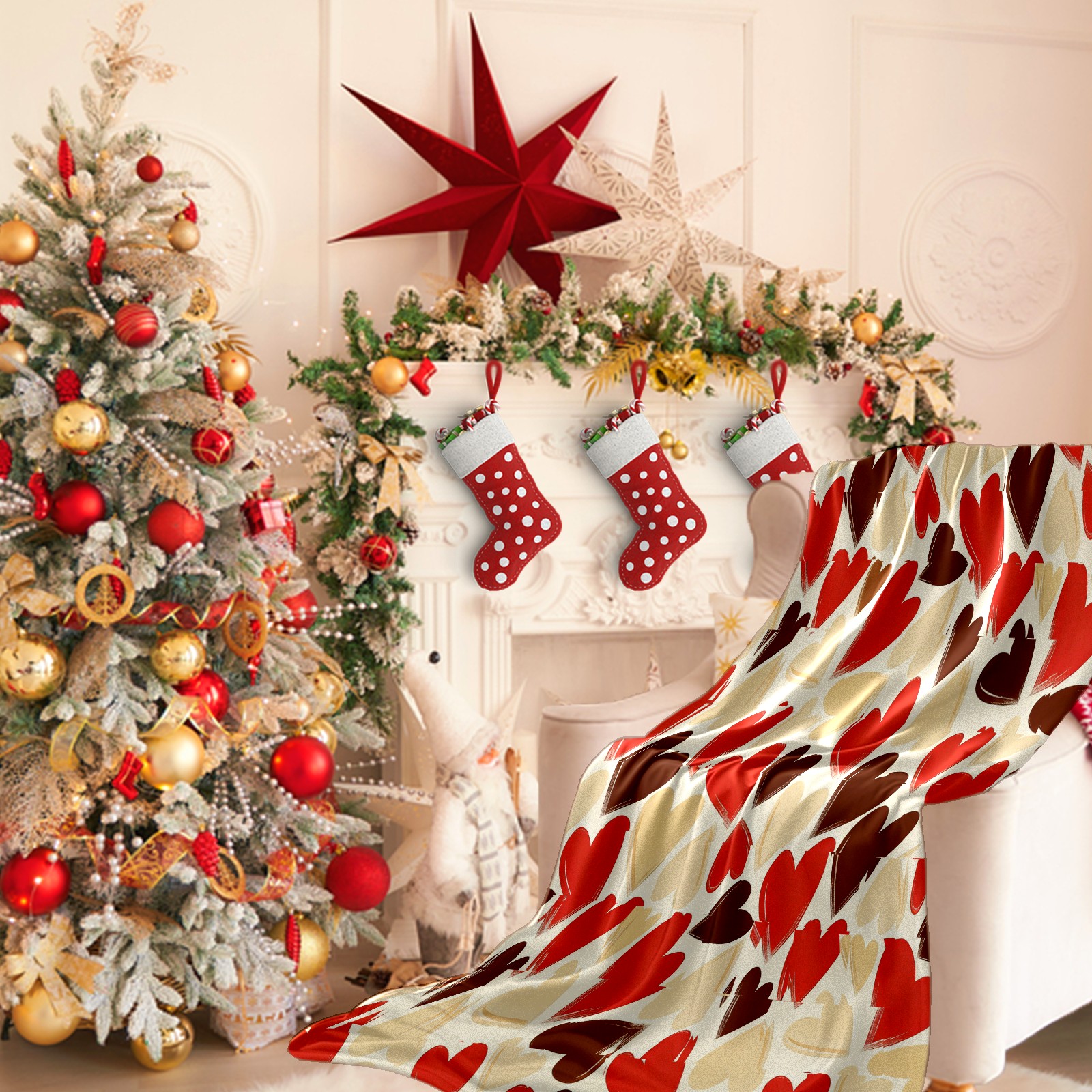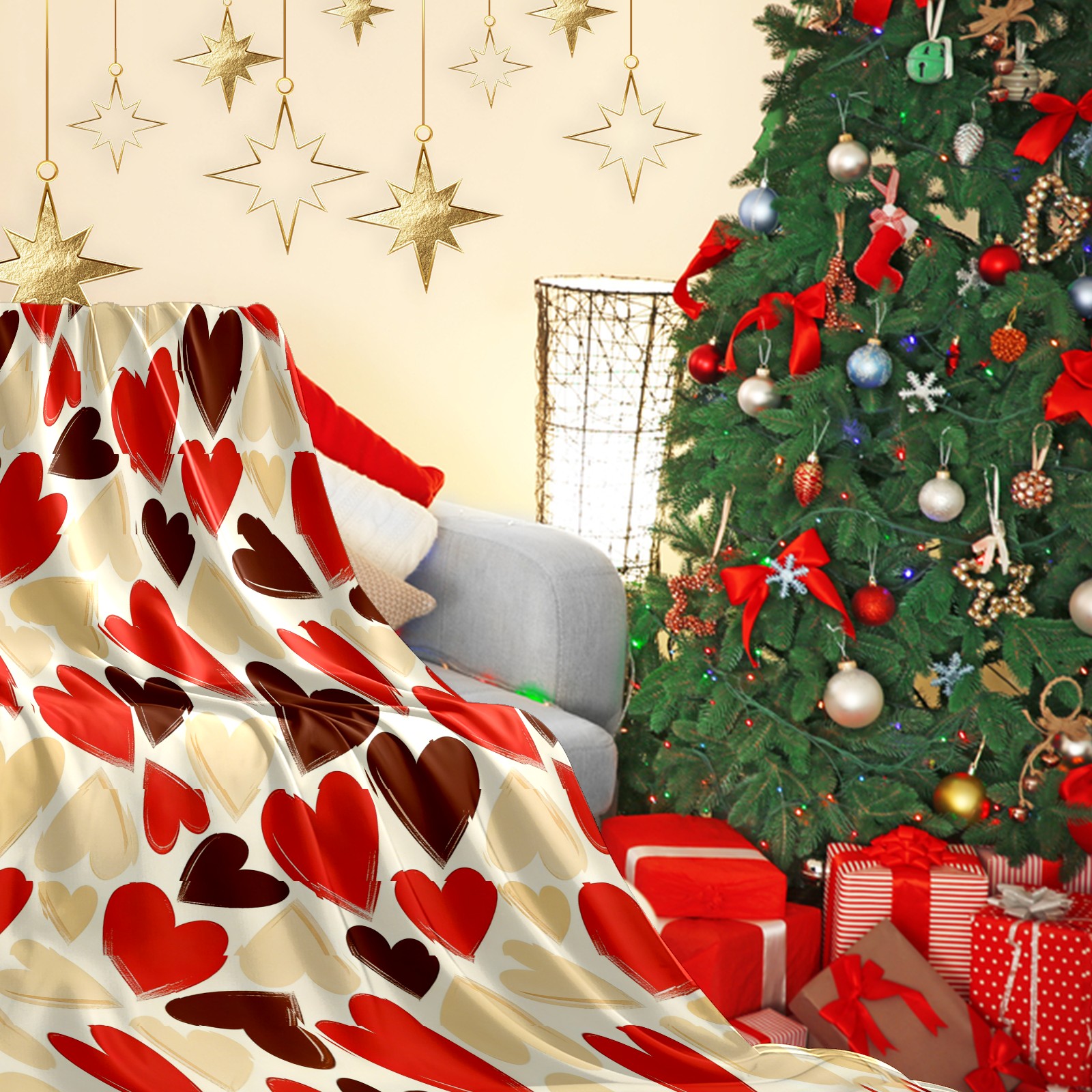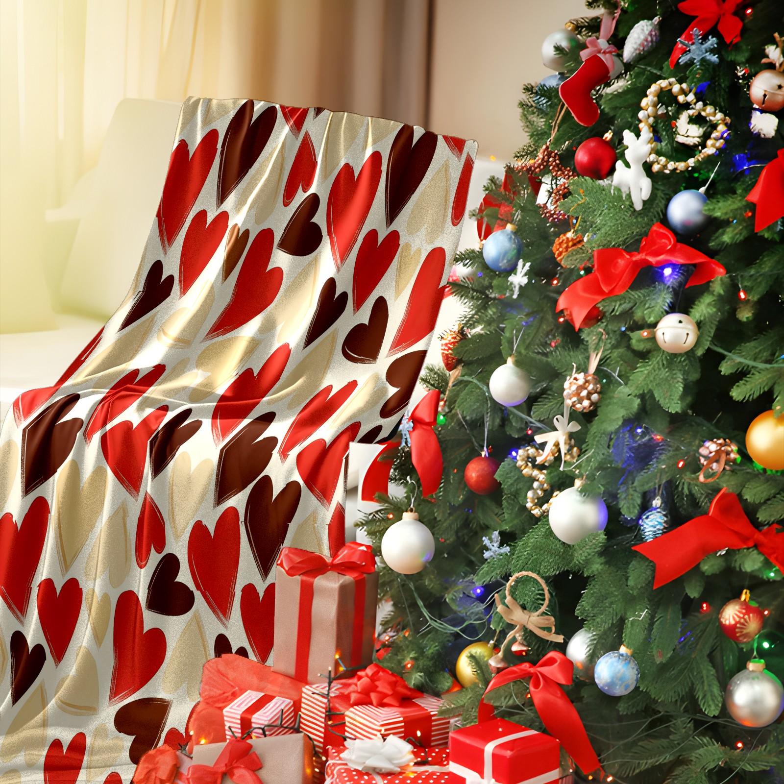Counullo Flannel Throw Blanket, Ultra Soft Anti-Pilling Blanket for Couch & Bed, Lightweight Cozy Blanket for Travel, Home, Camping Gift - (30" x 39"), Heart Warm Brown