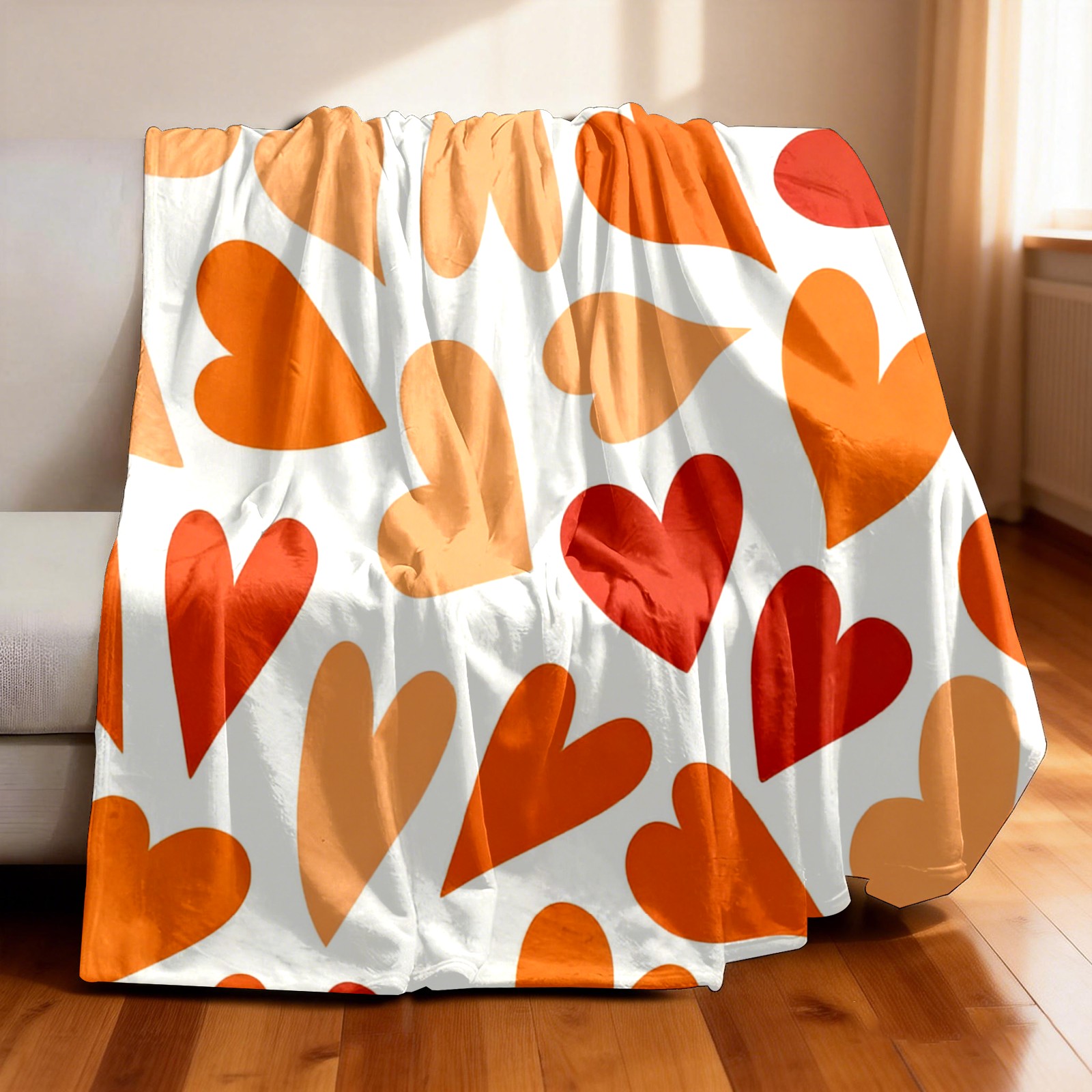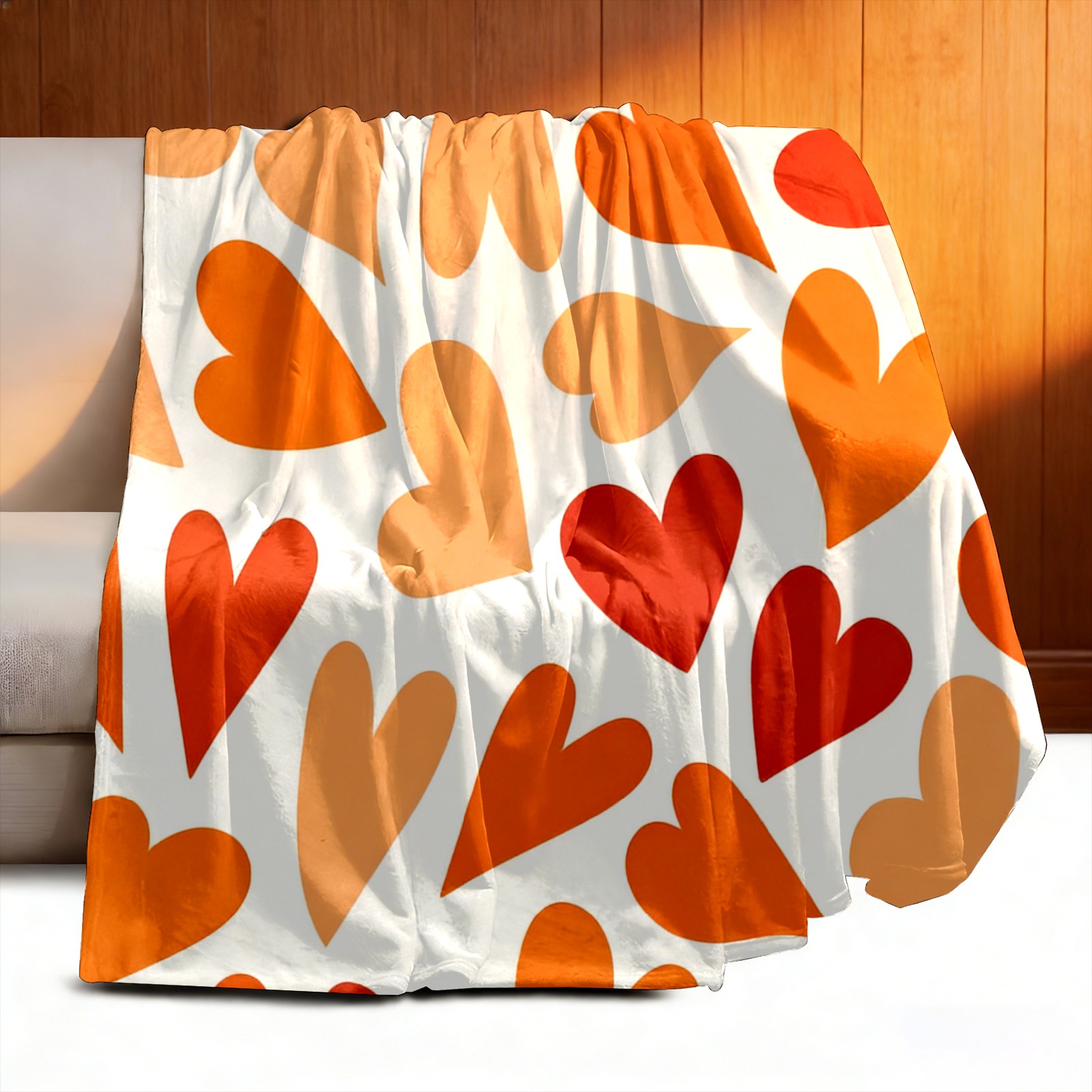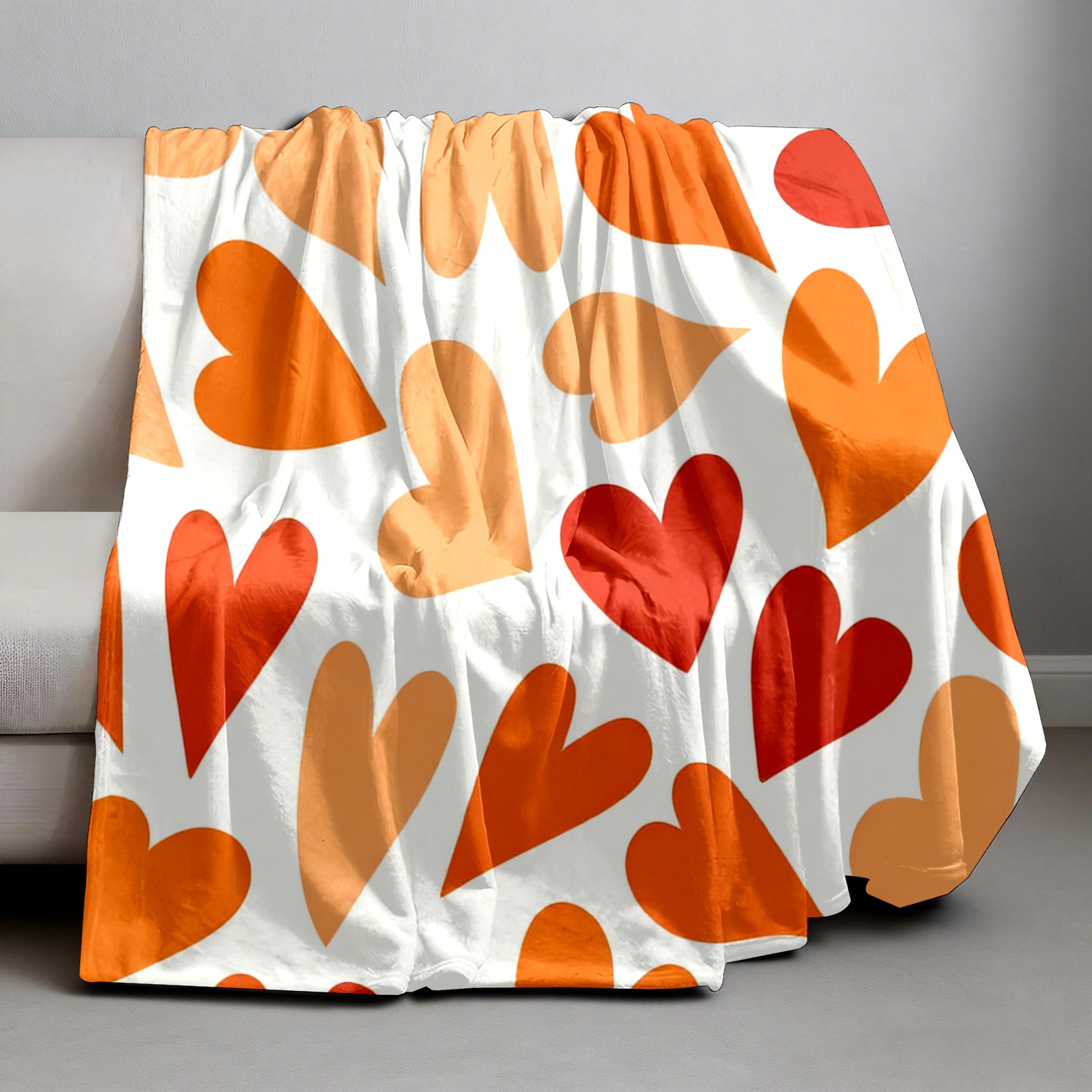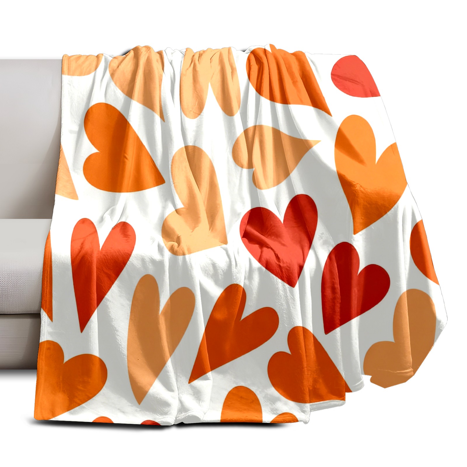 Counullo Flannel Throw Blanket, Ultra Soft Anti-Pilling Blanket for Couch & Bed, Lightweight Cozy Blanket for Travel, Home, Camping Gift - (30" x 39"), Heart Block Orange