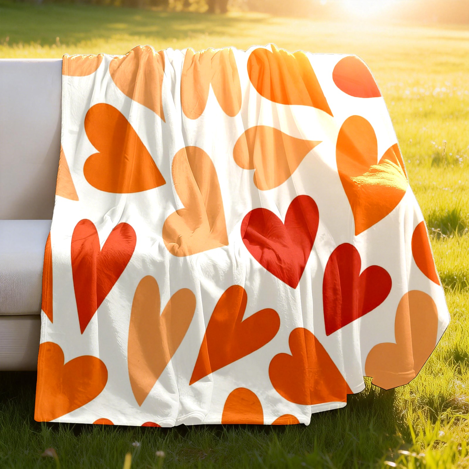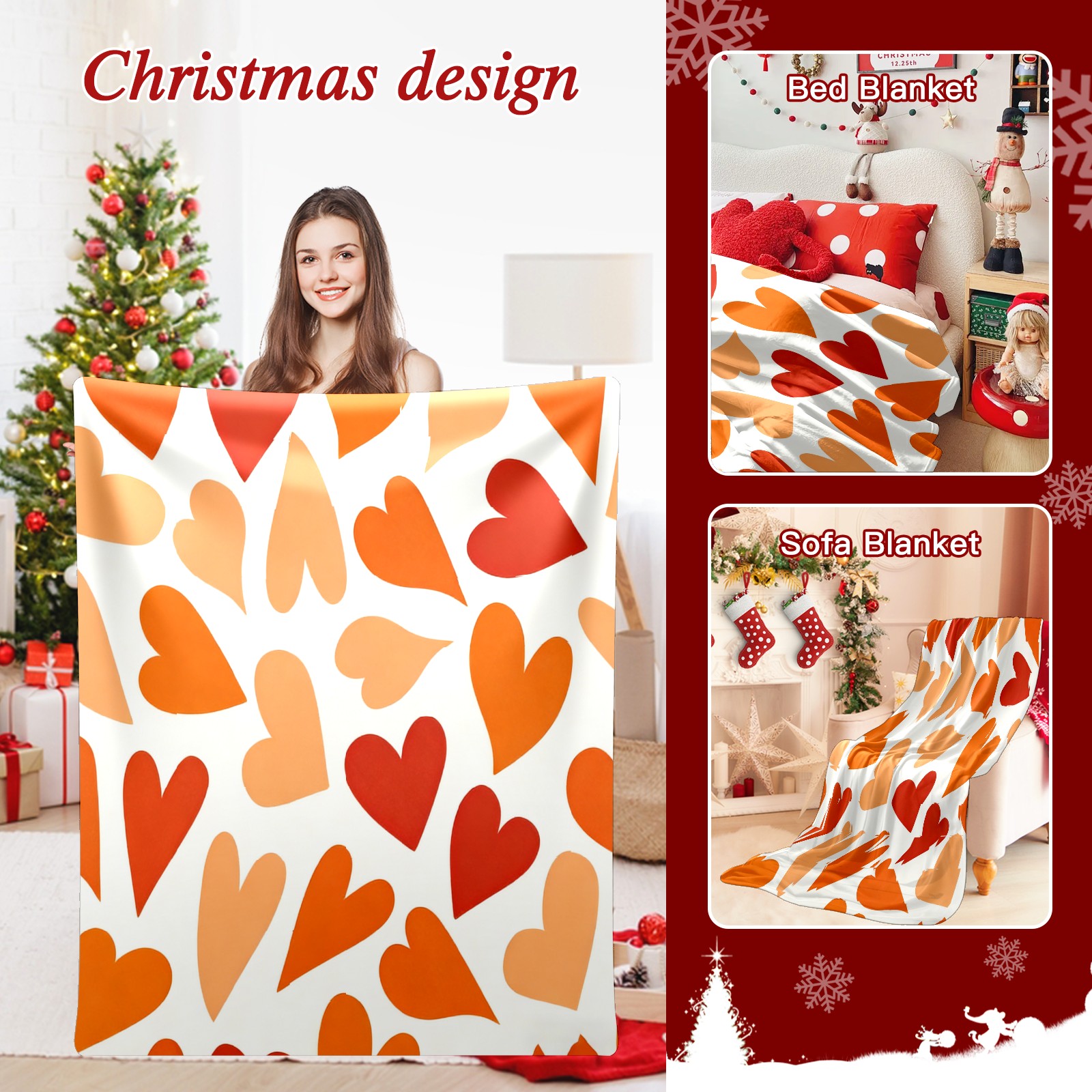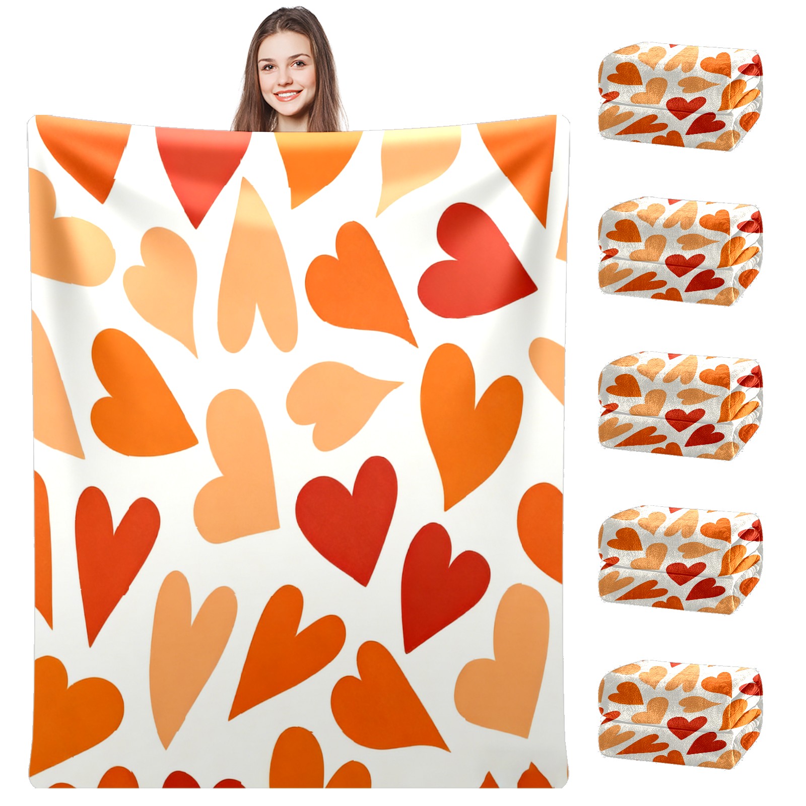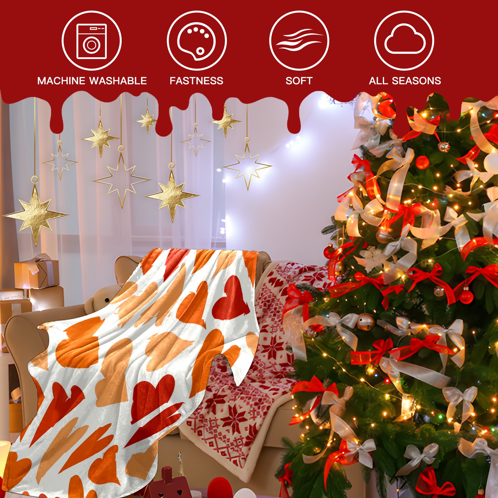 Counullo Flannel Throw Blanket, Ultra Soft Anti-Pilling Blanket for Couch & Bed, Lightweight Cozy Blanket for Travel, Home, Camping Gift - (30" x 39"), Heart Block Orange