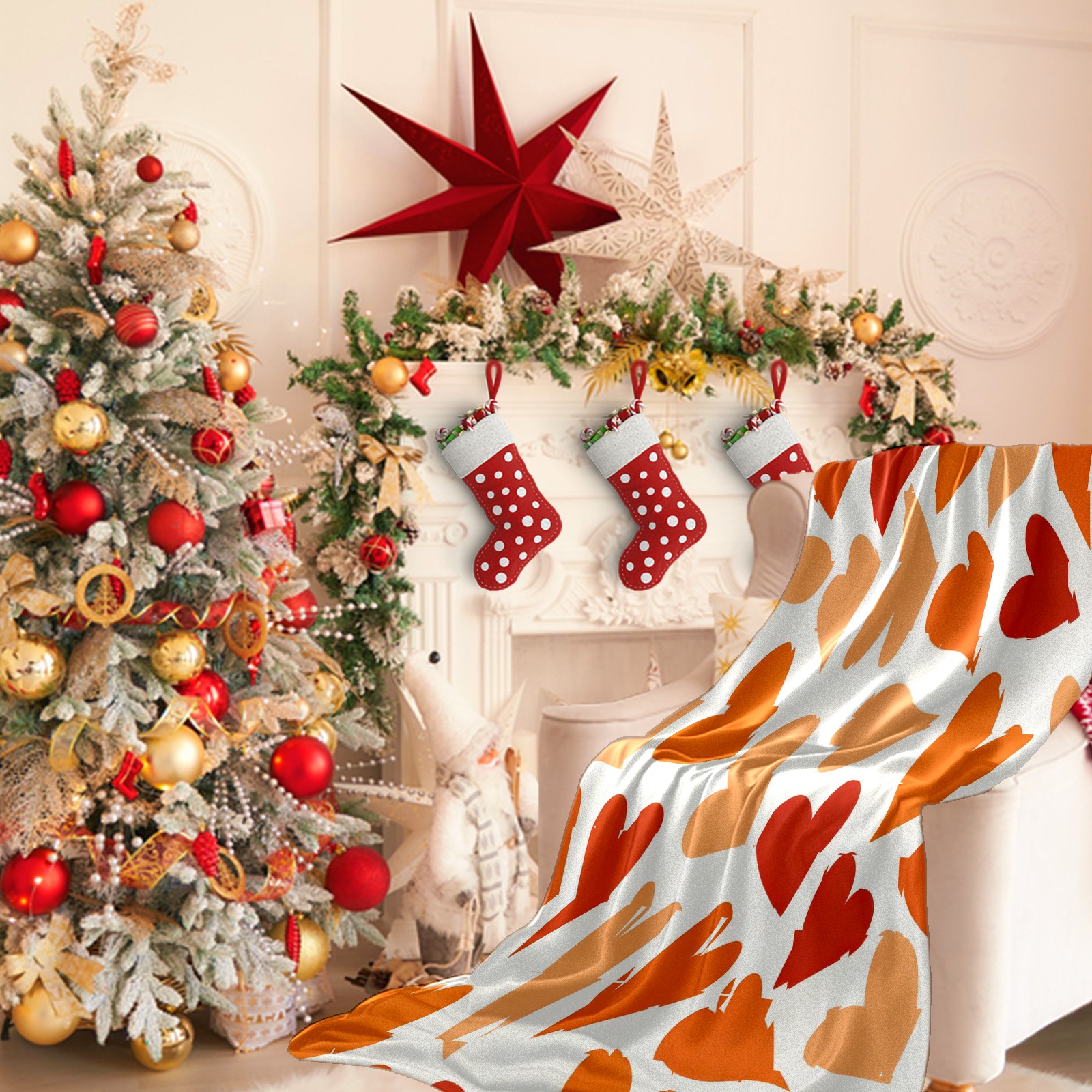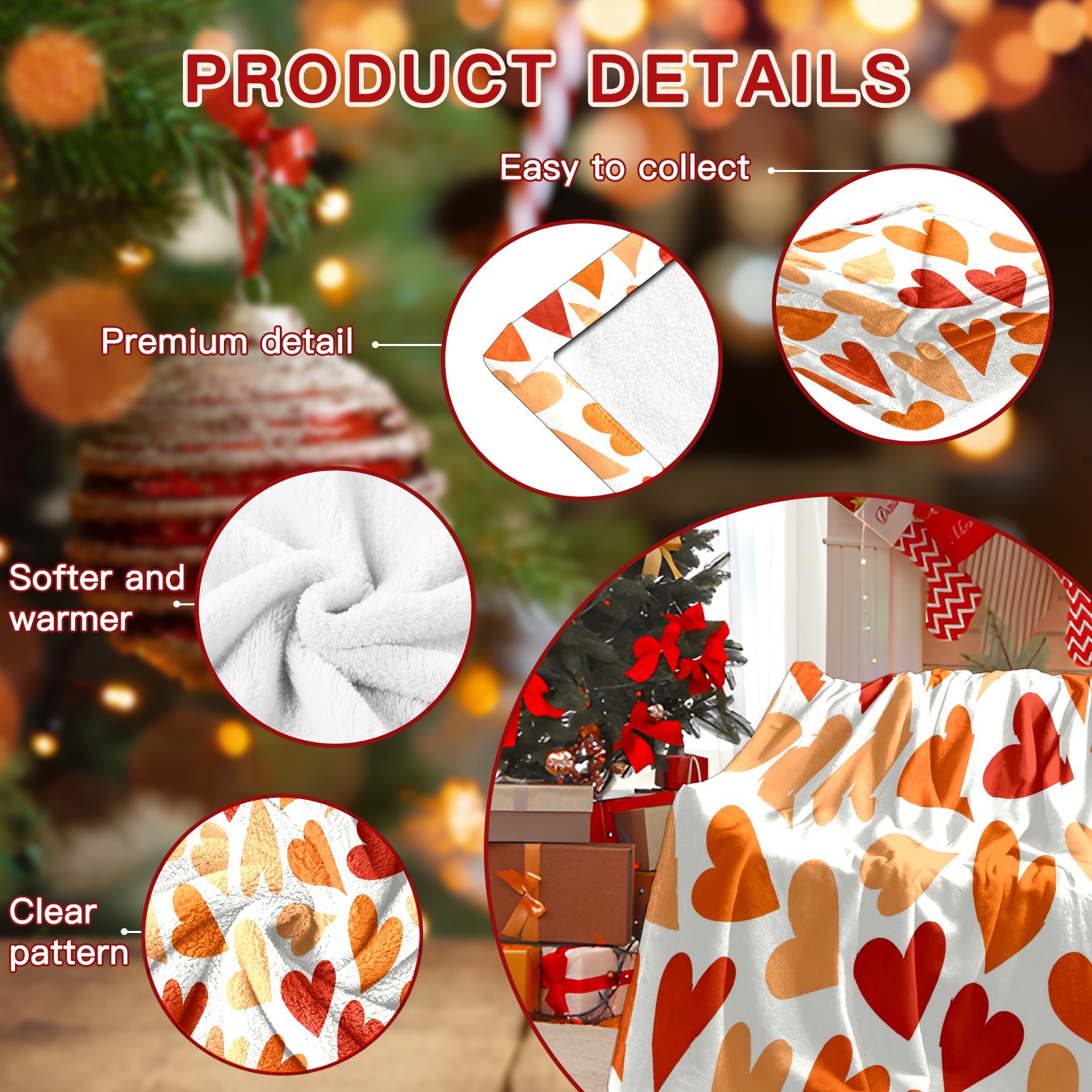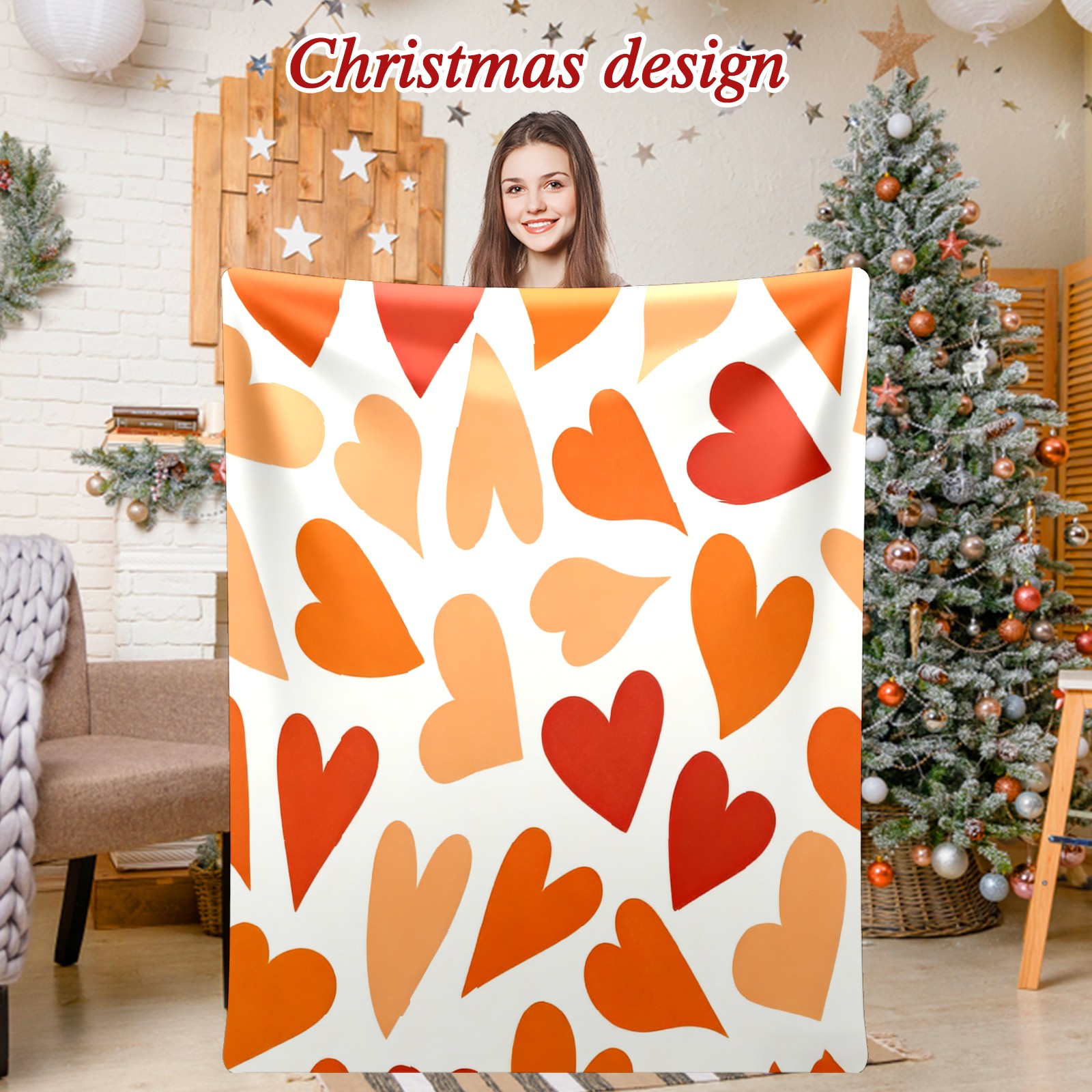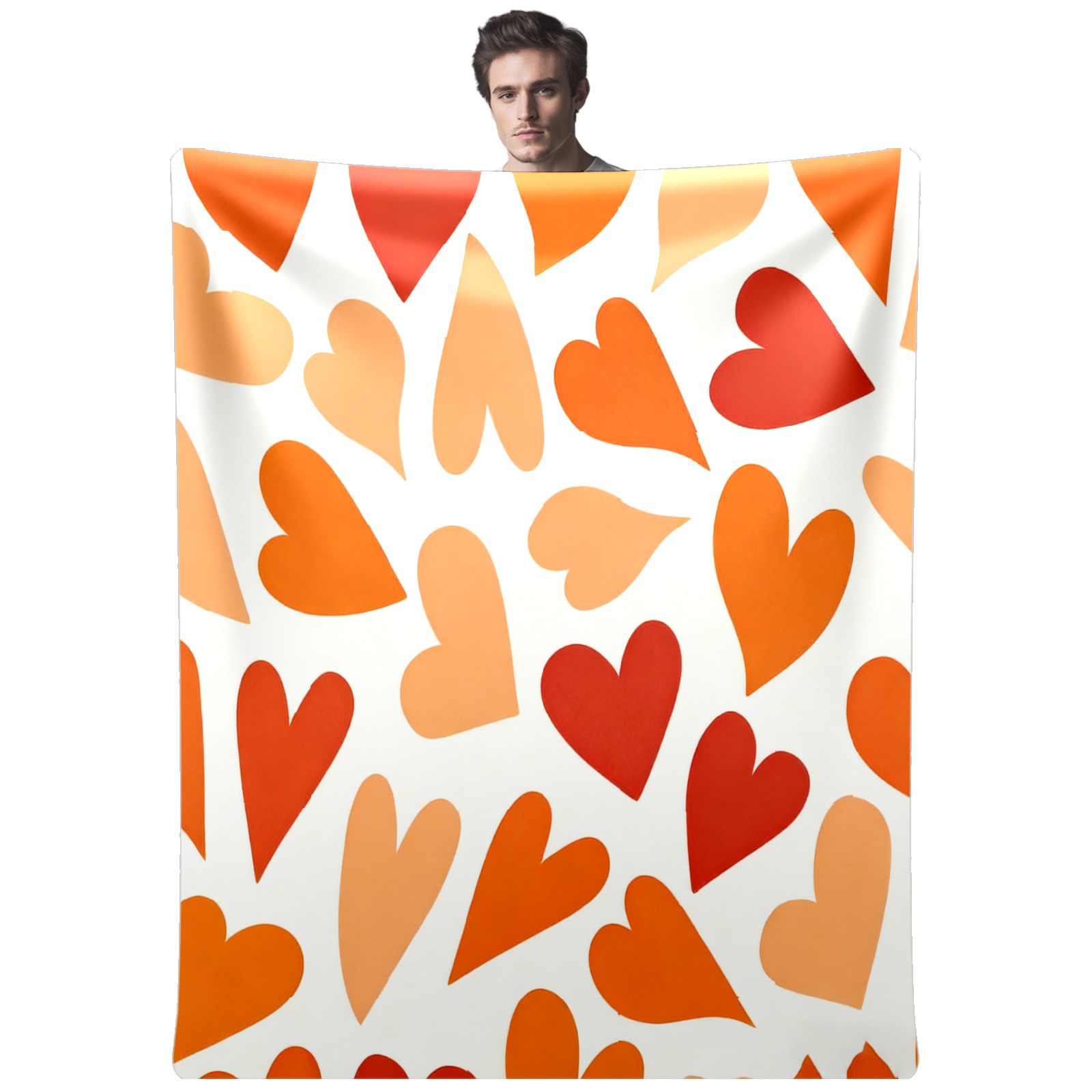 Counullo Flannel Throw Blanket, Ultra Soft Anti-Pilling Blanket for Couch & Bed, Lightweight Cozy Blanket for Travel, Home, Camping Gift - (30" x 39"), Heart Block Orange
