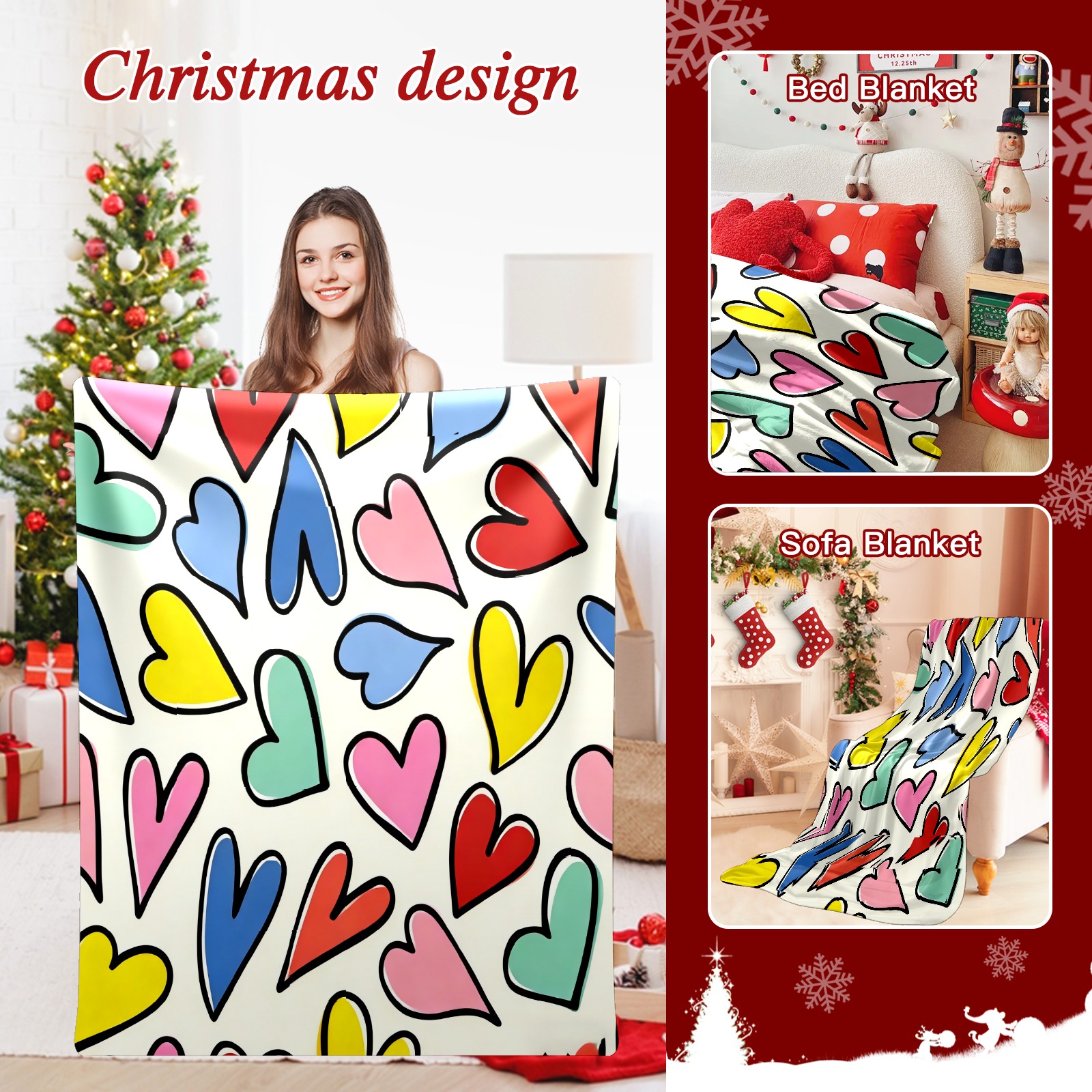 Counullo Flannel Throw Blanket, Ultra Soft Anti-Pilling Blanket for Couch & Bed, Lightweight Cozy Blanket for Travel, Home, Camping Gift - (30" x 39"), Multi-Color Heart