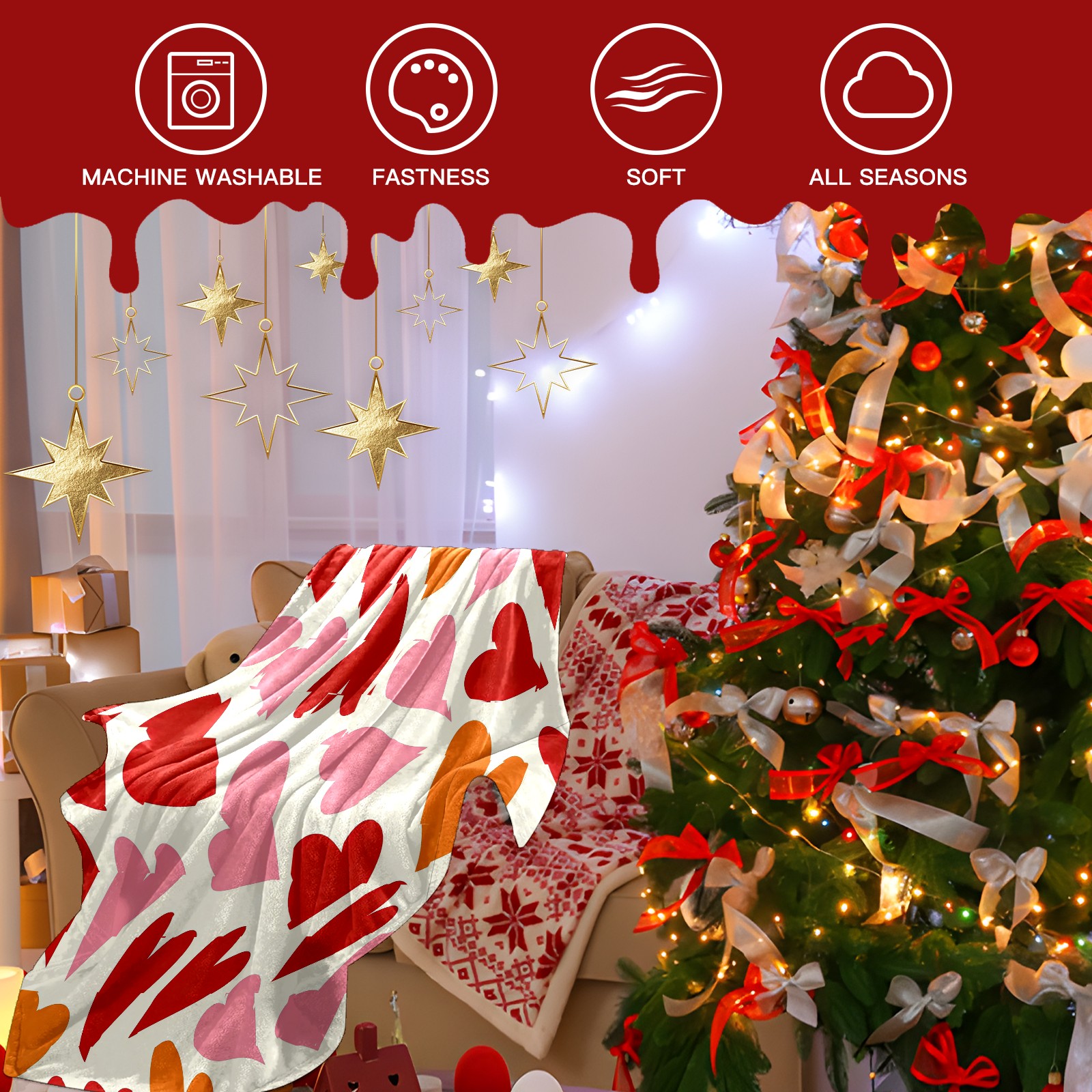 Counullo Flannel Throw Blanket, Ultra Soft Anti-Pilling Blanket for Couch & Bed, Lightweight Cozy Blanket for Travel, Home, Camping Gift - (30" x 39"), Heart Block Pink