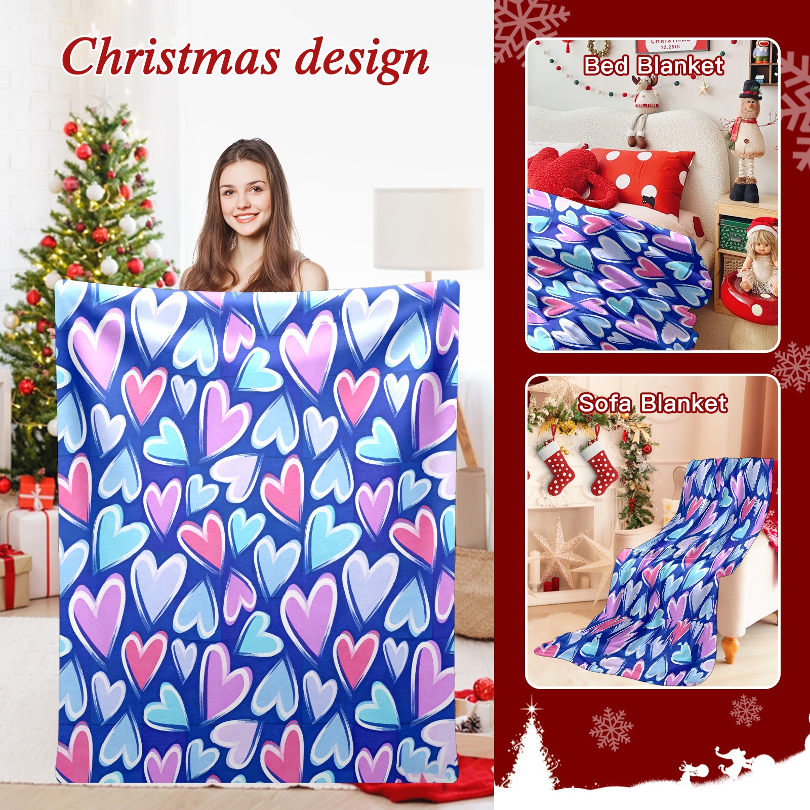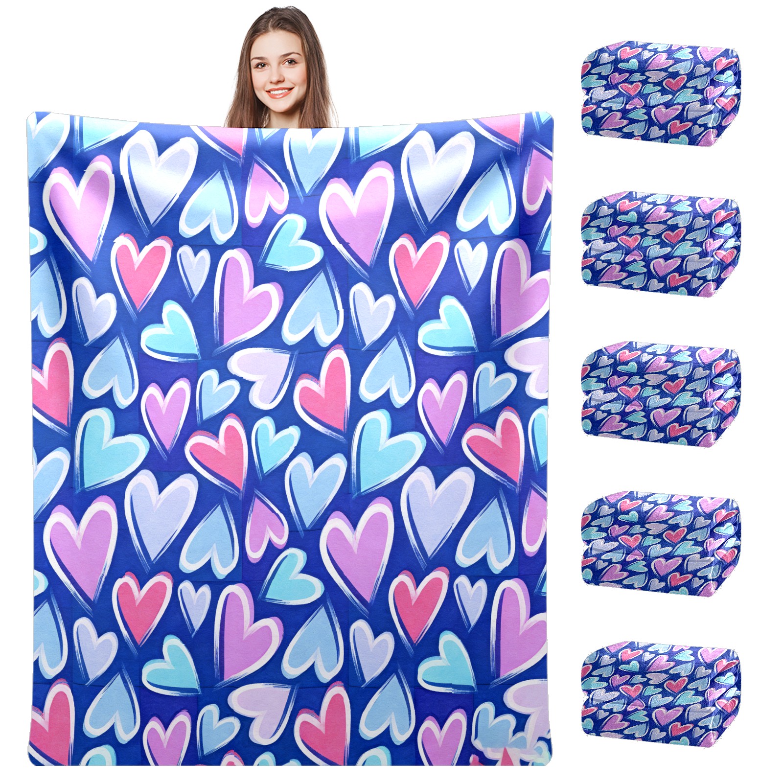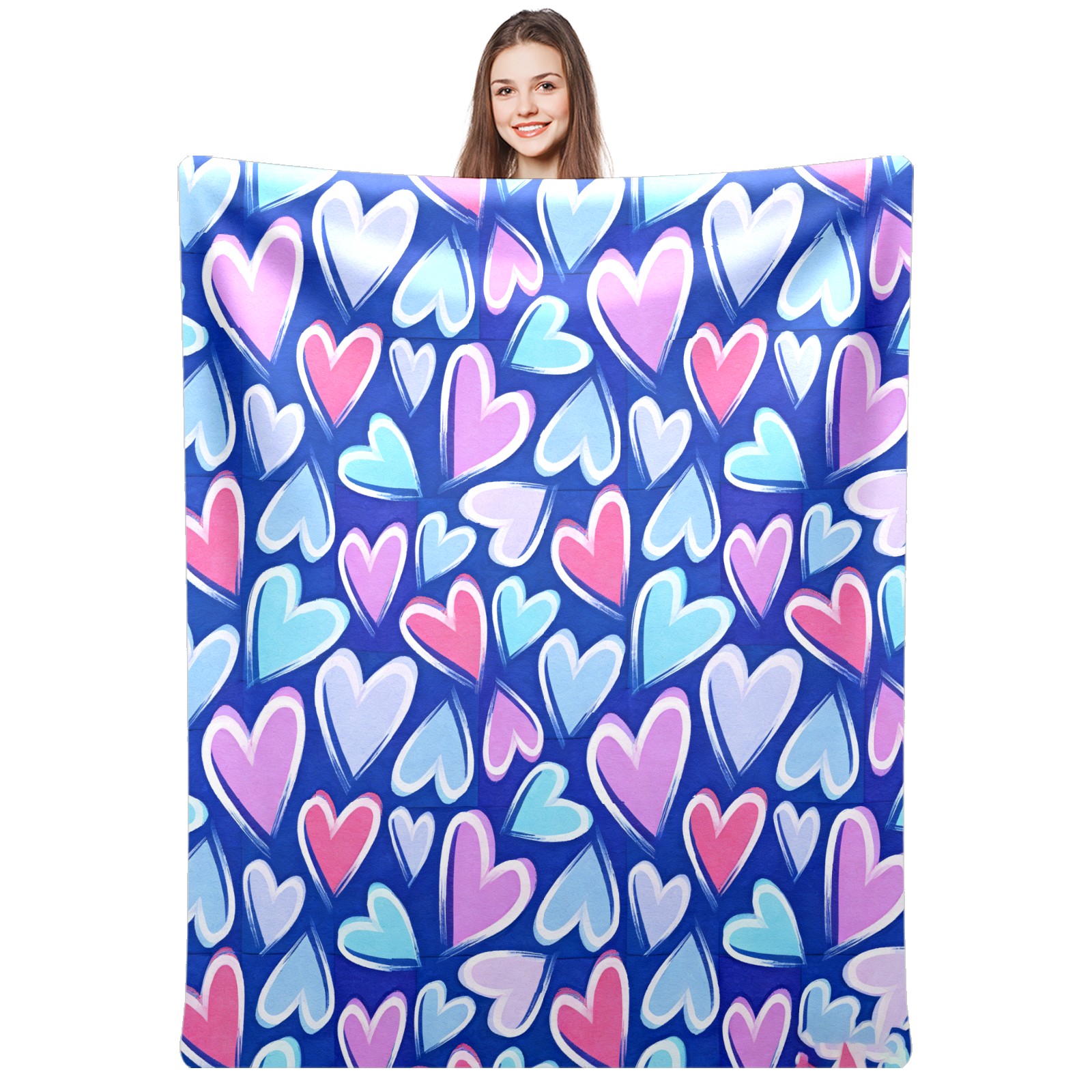 Counullo Flannel Throw Blanket, Ultra Soft Anti-Pilling Blanket for Couch & Bed, Lightweight Cozy Blanket for Travel, Home, Camping Gift - (30" x 39"), Gradient Heart Blue