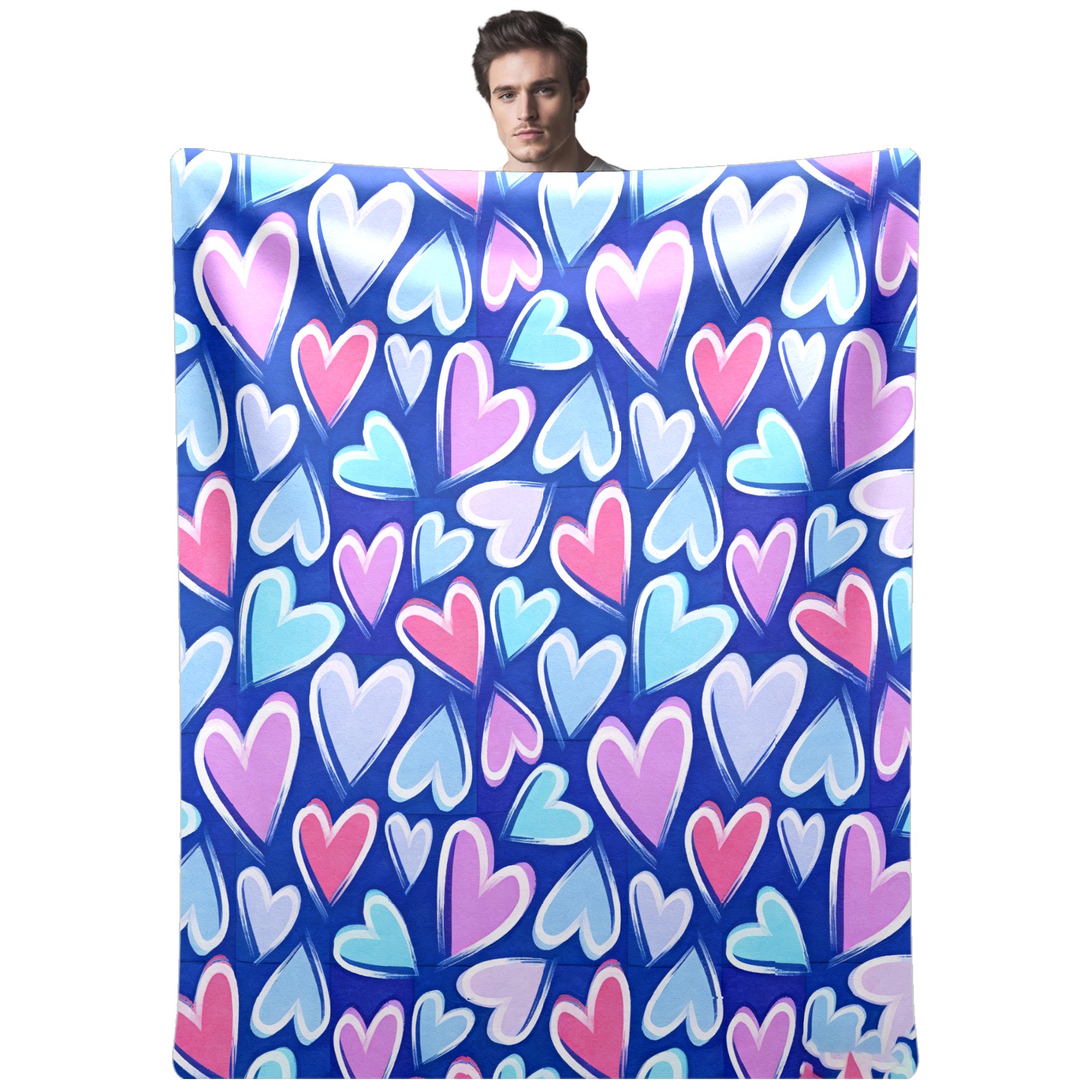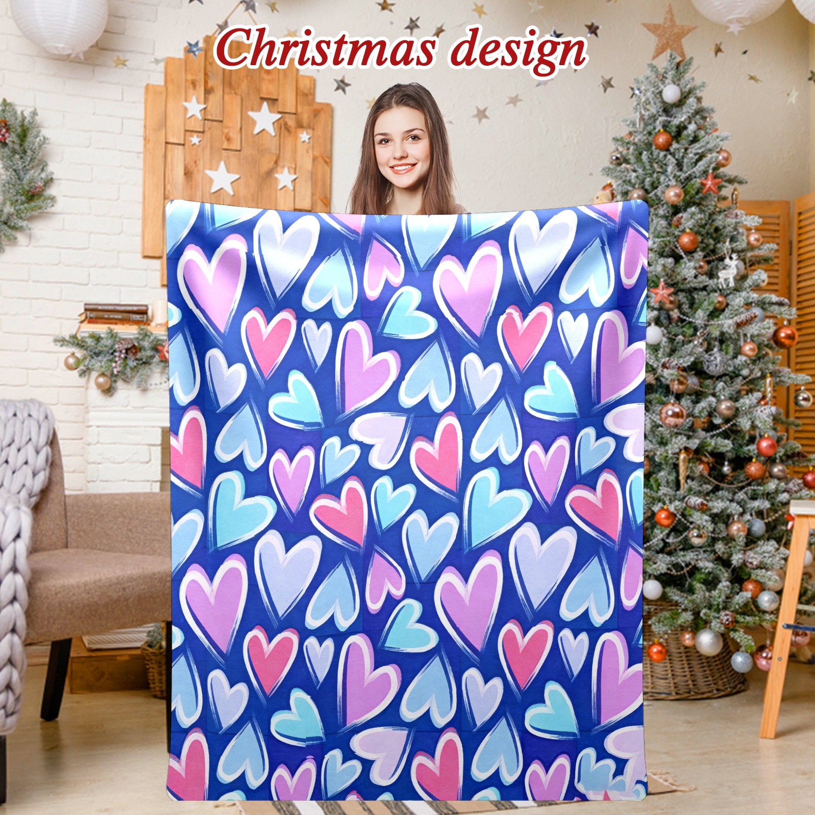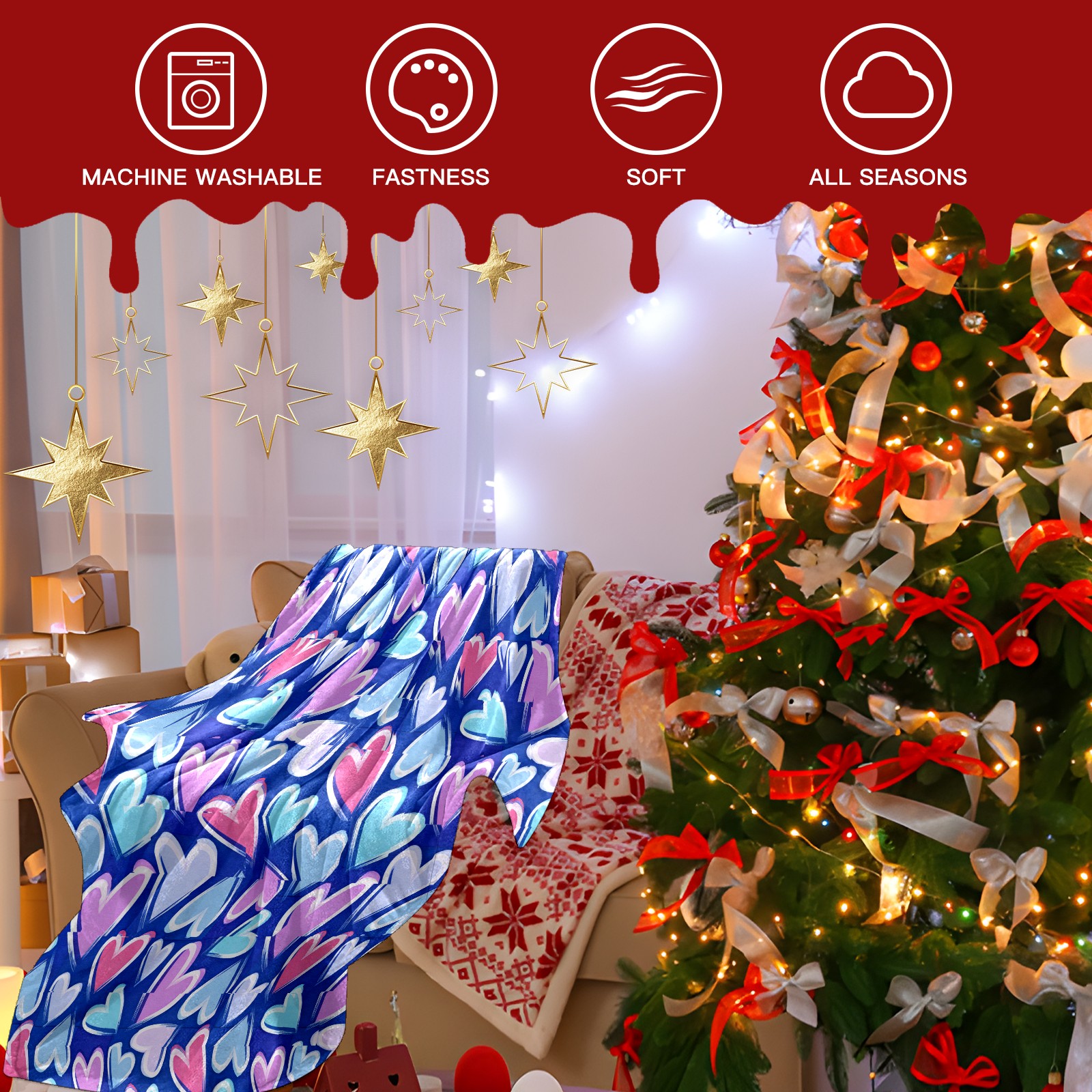 Counullo Flannel Throw Blanket, Ultra Soft Anti-Pilling Blanket for Couch & Bed, Lightweight Cozy Blanket for Travel, Home, Camping Gift - (30" x 39"), Gradient Heart Blue