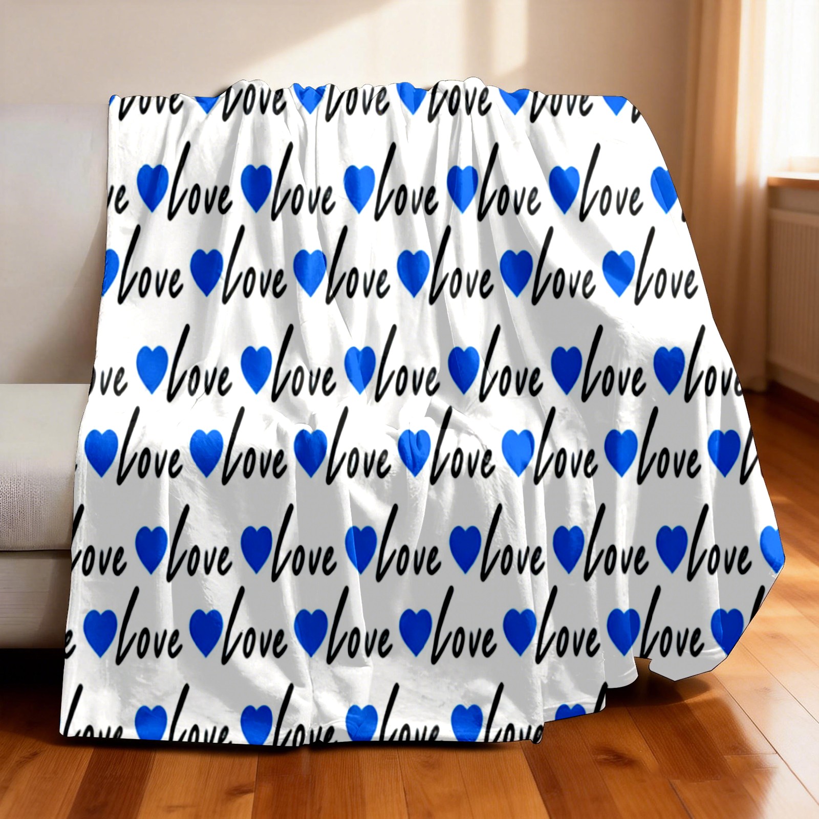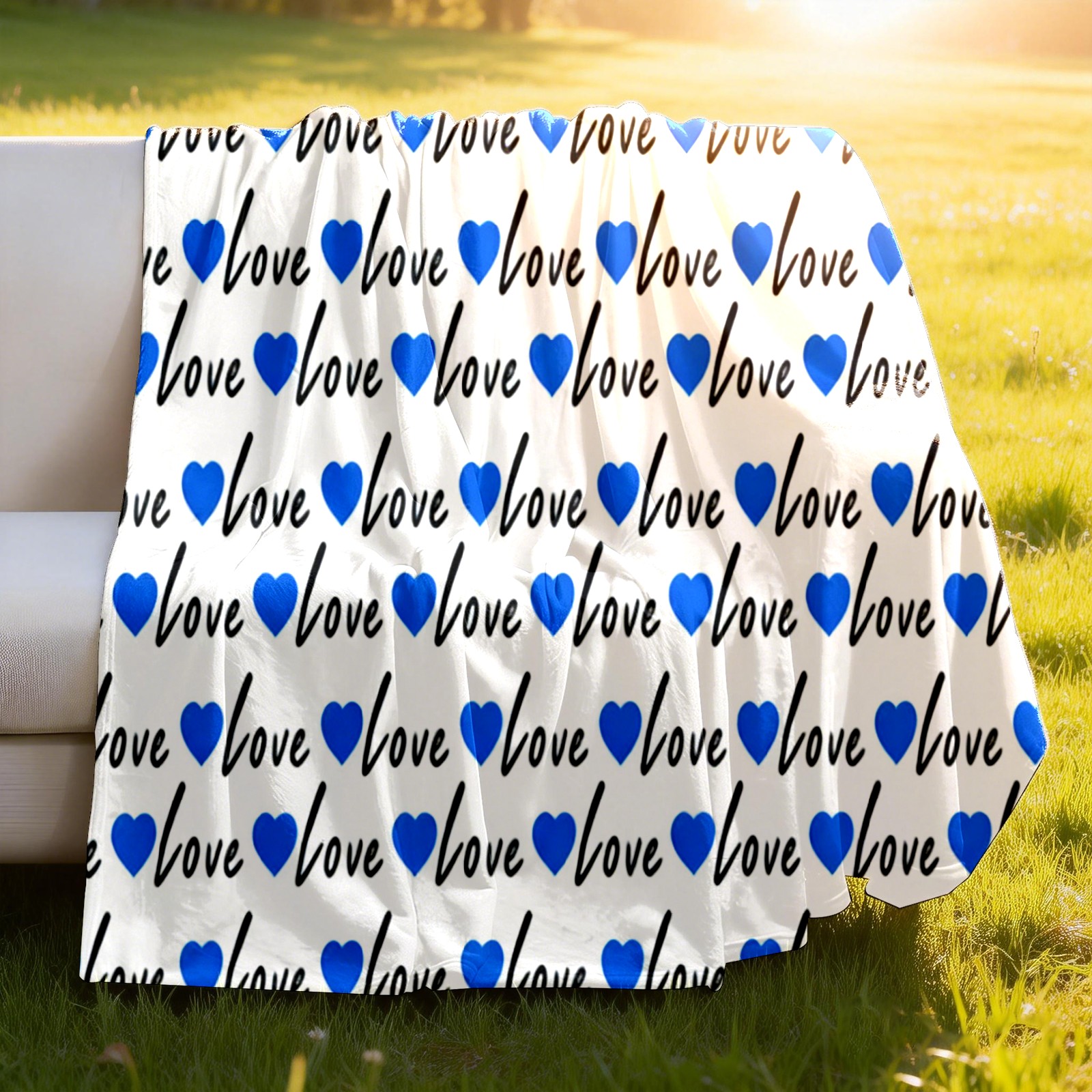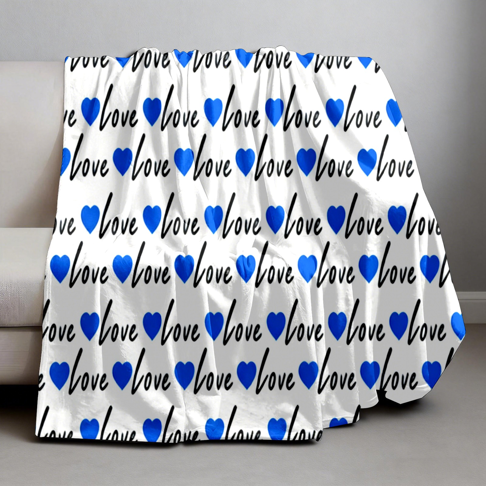 Counullo Flannel Throw Blanket, Ultra Soft Anti-Pilling Blanket for Couch & Bed, Lightweight Cozy Blanket for Travel, Home, Camping Gift - (30" x 39"), LOVE Text Blue