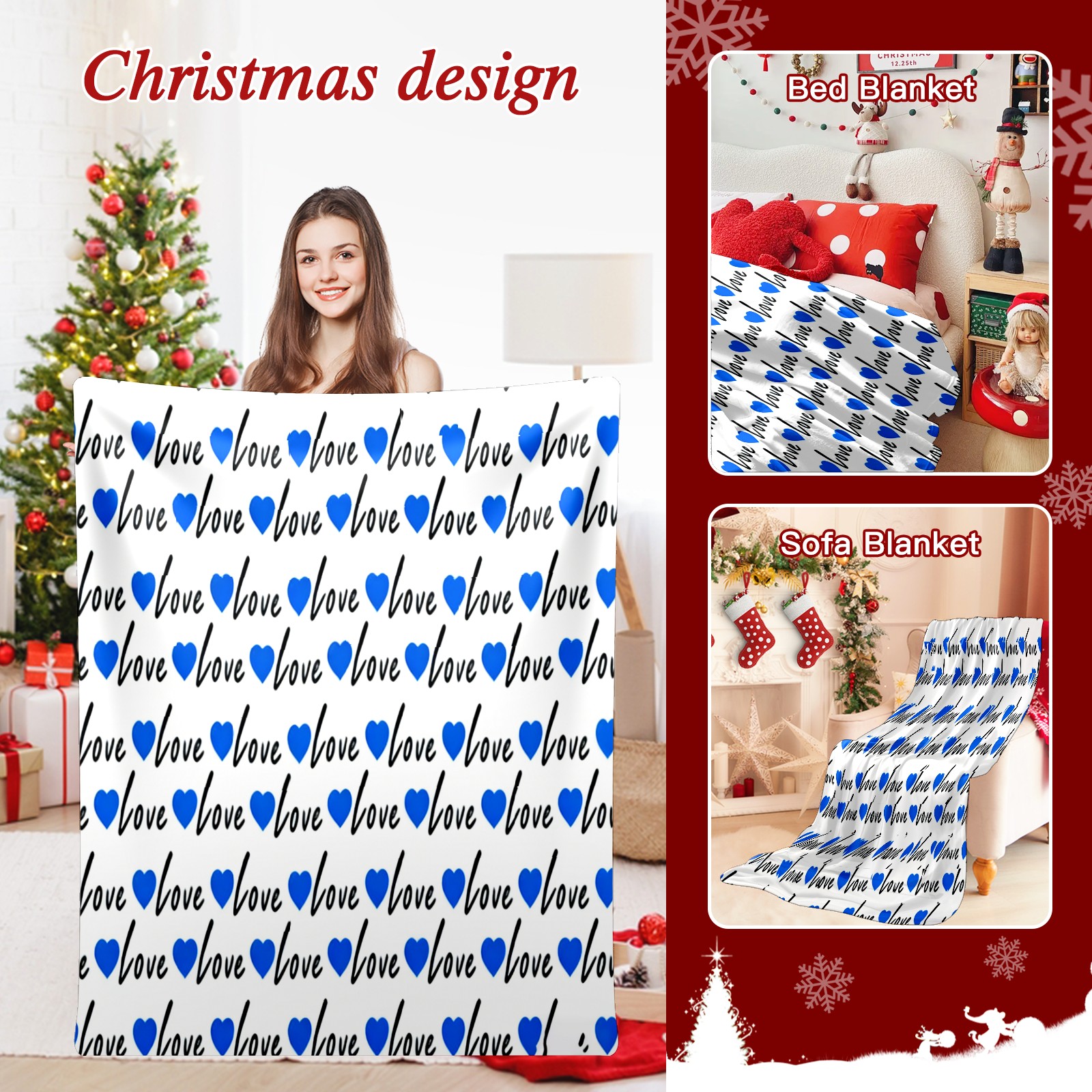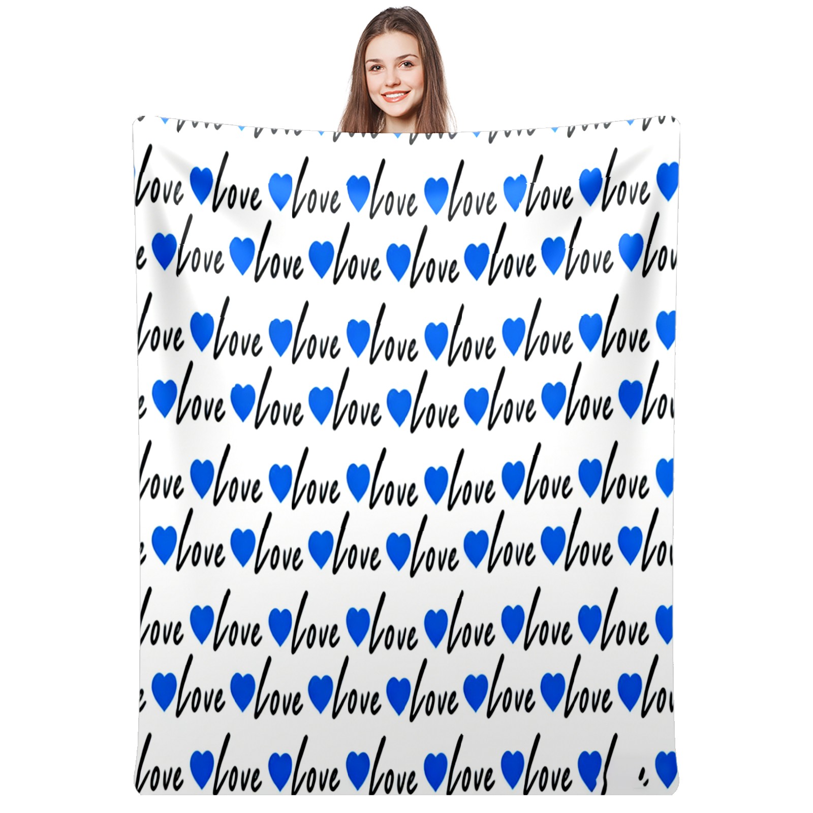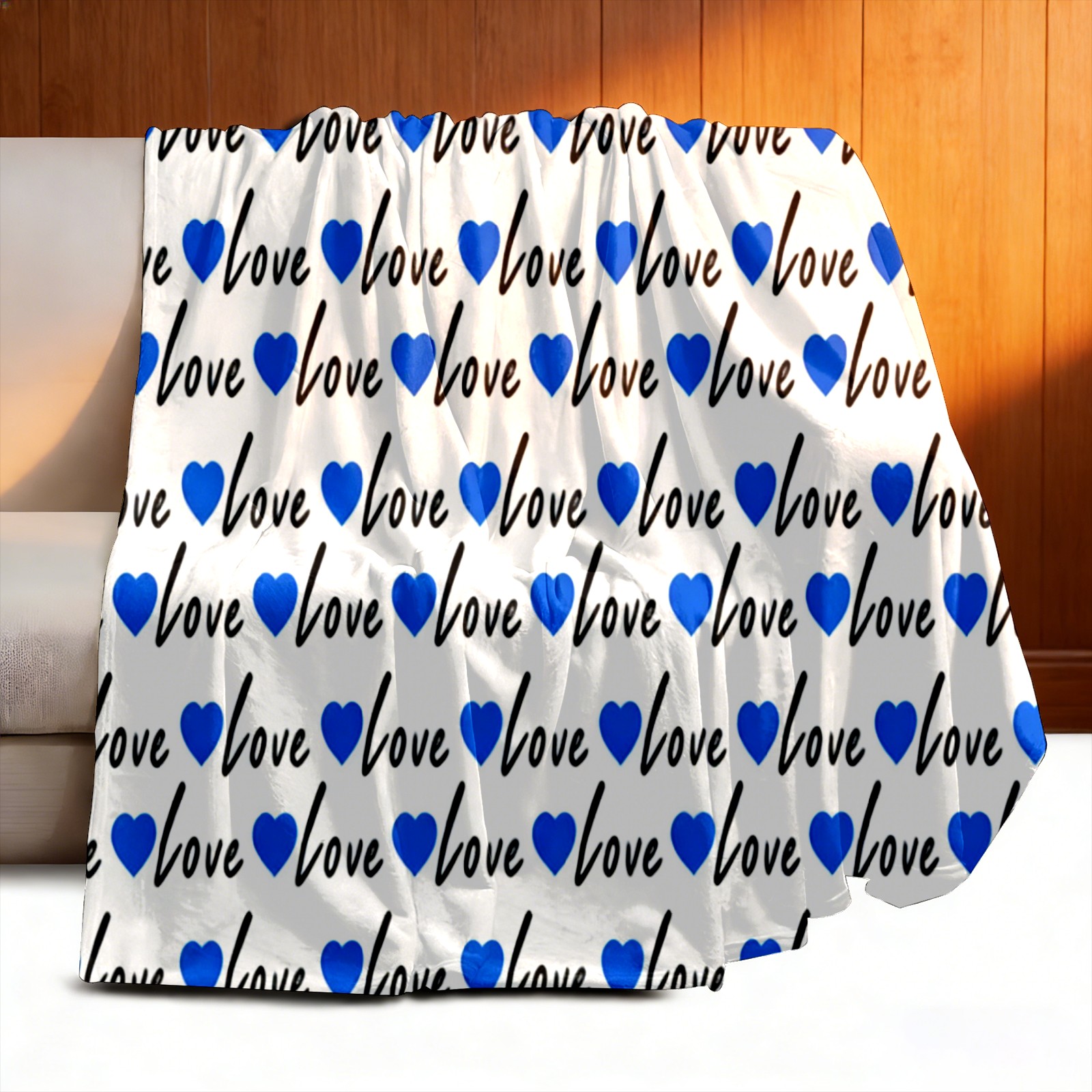 Counullo Flannel Throw Blanket, Ultra Soft Anti-Pilling Blanket for Couch & Bed, Lightweight Cozy Blanket for Travel, Home, Camping Gift - (30" x 39"), LOVE Text Blue