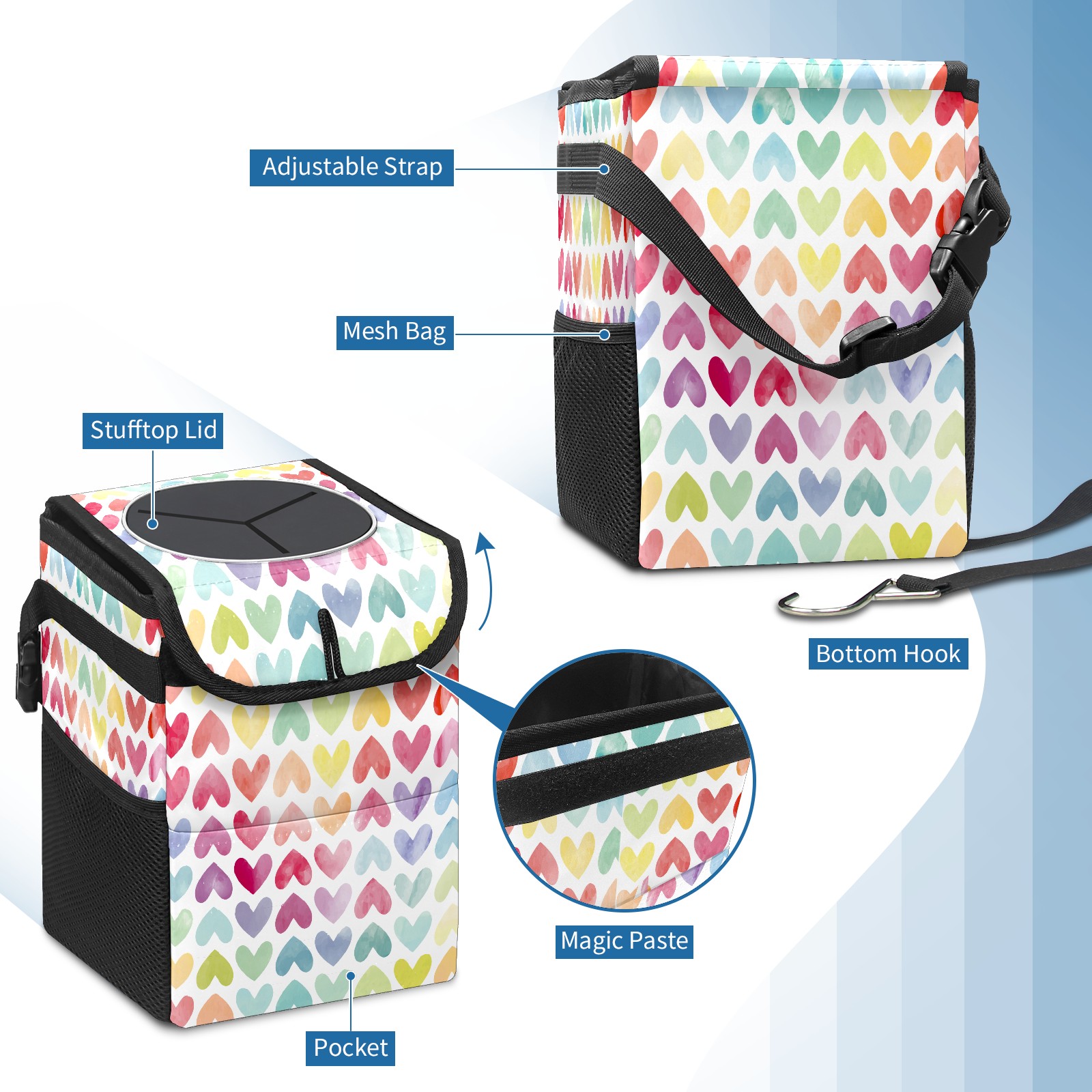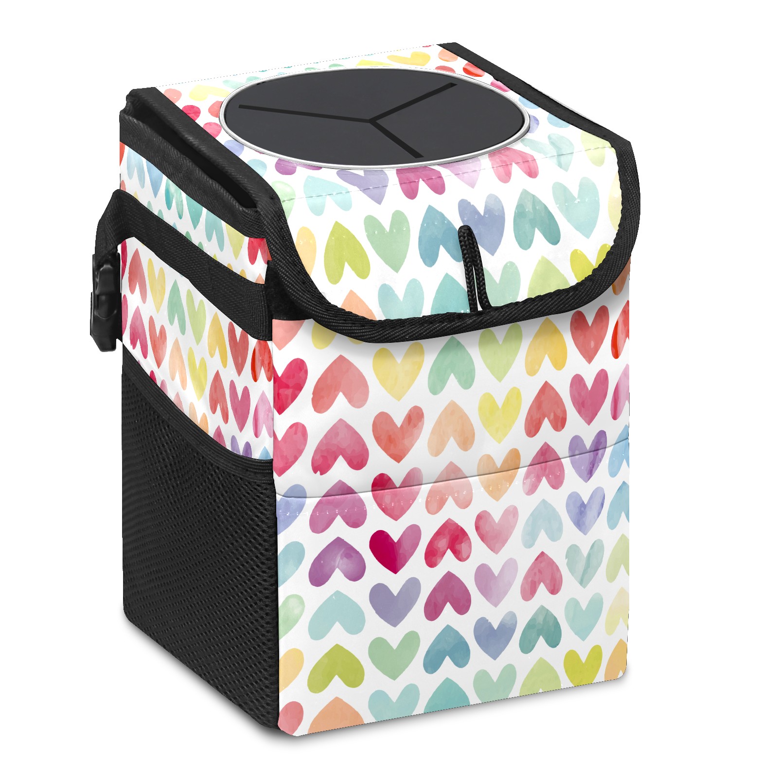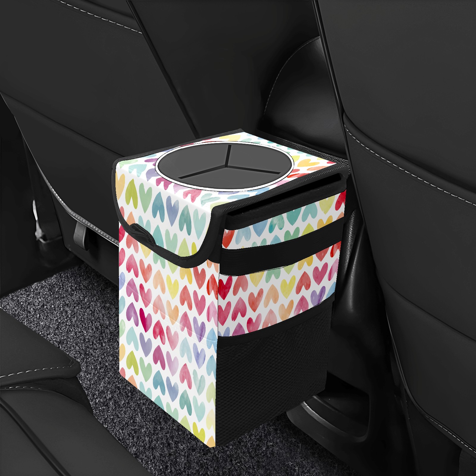 FOLDABLE & SPACE-SAVING Compact 9.5"×6.7"×6.3" size fits perfectly in any vehicle space Instantly folds flat when not in use - stores effortlessly under seats or in door pockets MULTI-FUNCTION ORGANIZER Large main compartment holds bottles, wrappers and tissues Additional pockets for wet wipes, masks or small accessories WATERPROOF & LEAKPROOF Made with premium leak-proof polyester material Contains messy spills from drinks, snacks, and food Wipe-clean surface resists stains and eliminates odors Package Includes 1× Car Trash Can