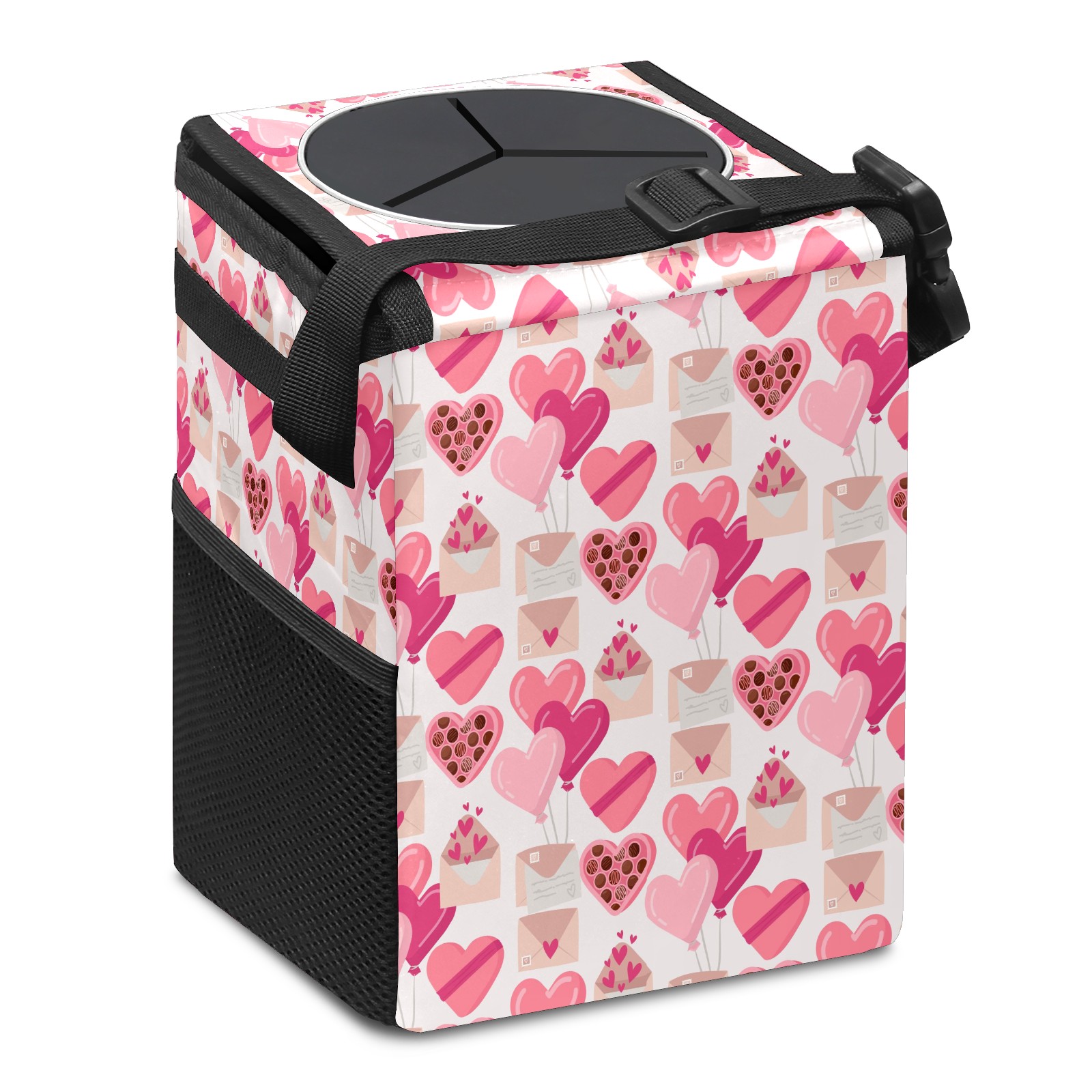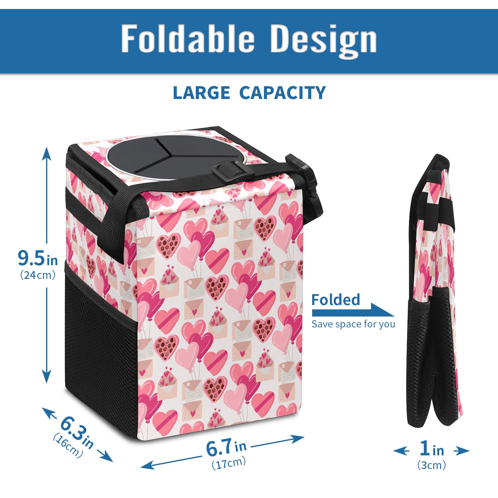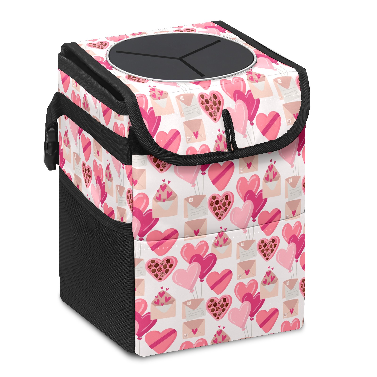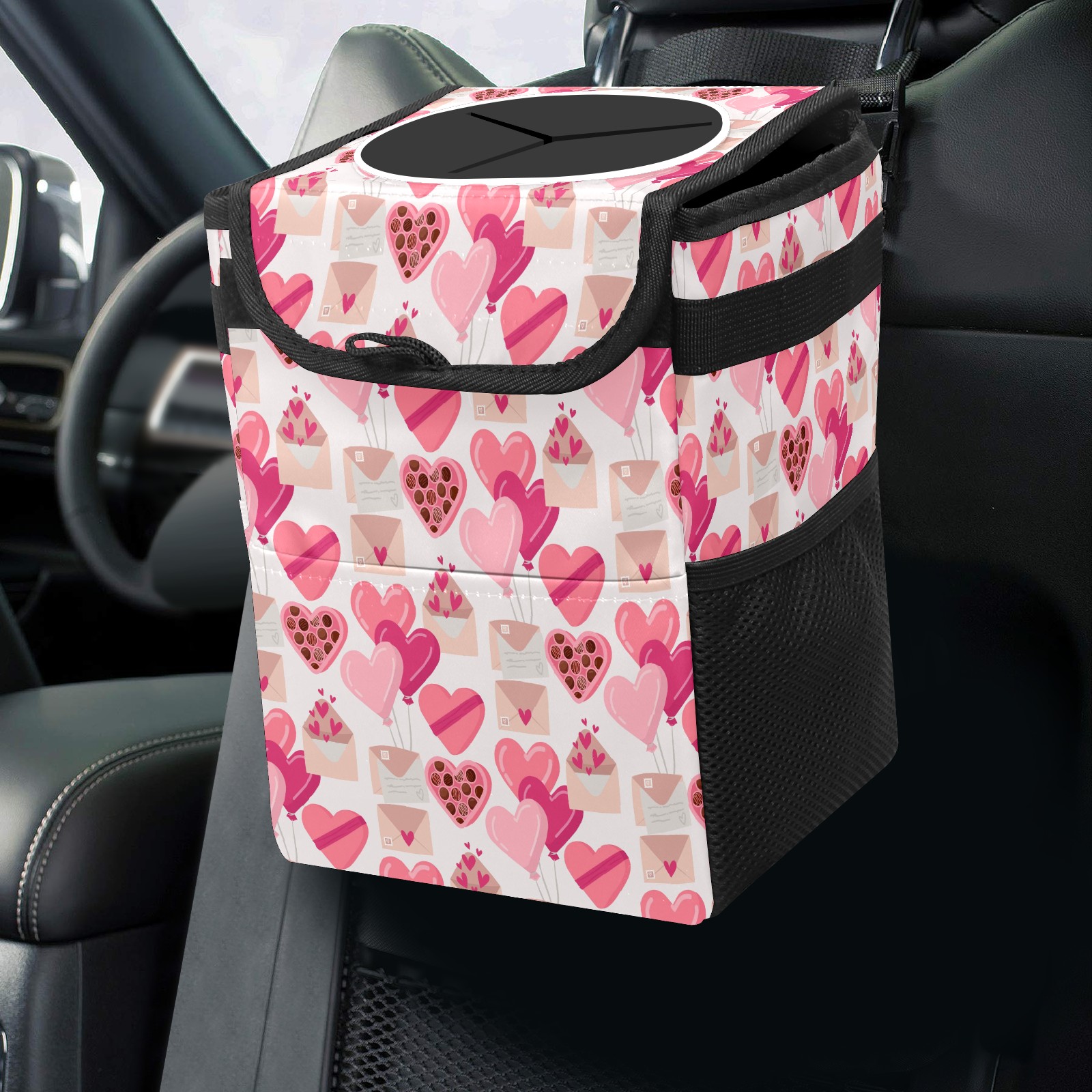 Car Trash Bin with Lid Auto Garbage Bag Hanging for Back Seat - Leakproof Trash Can for Cars SUVs Trucks Vehicle Car Accessories (Pink Heart Shape Pattern)