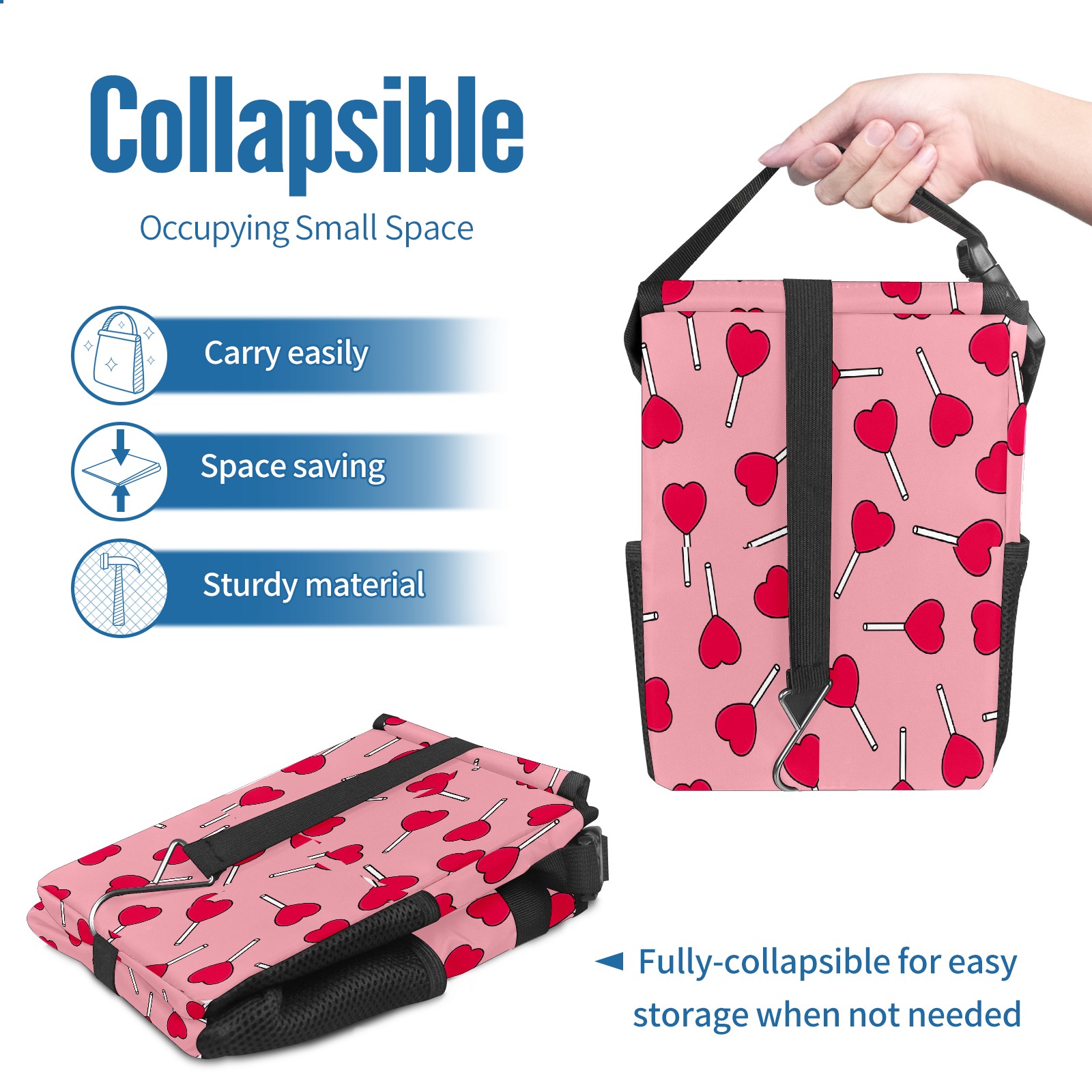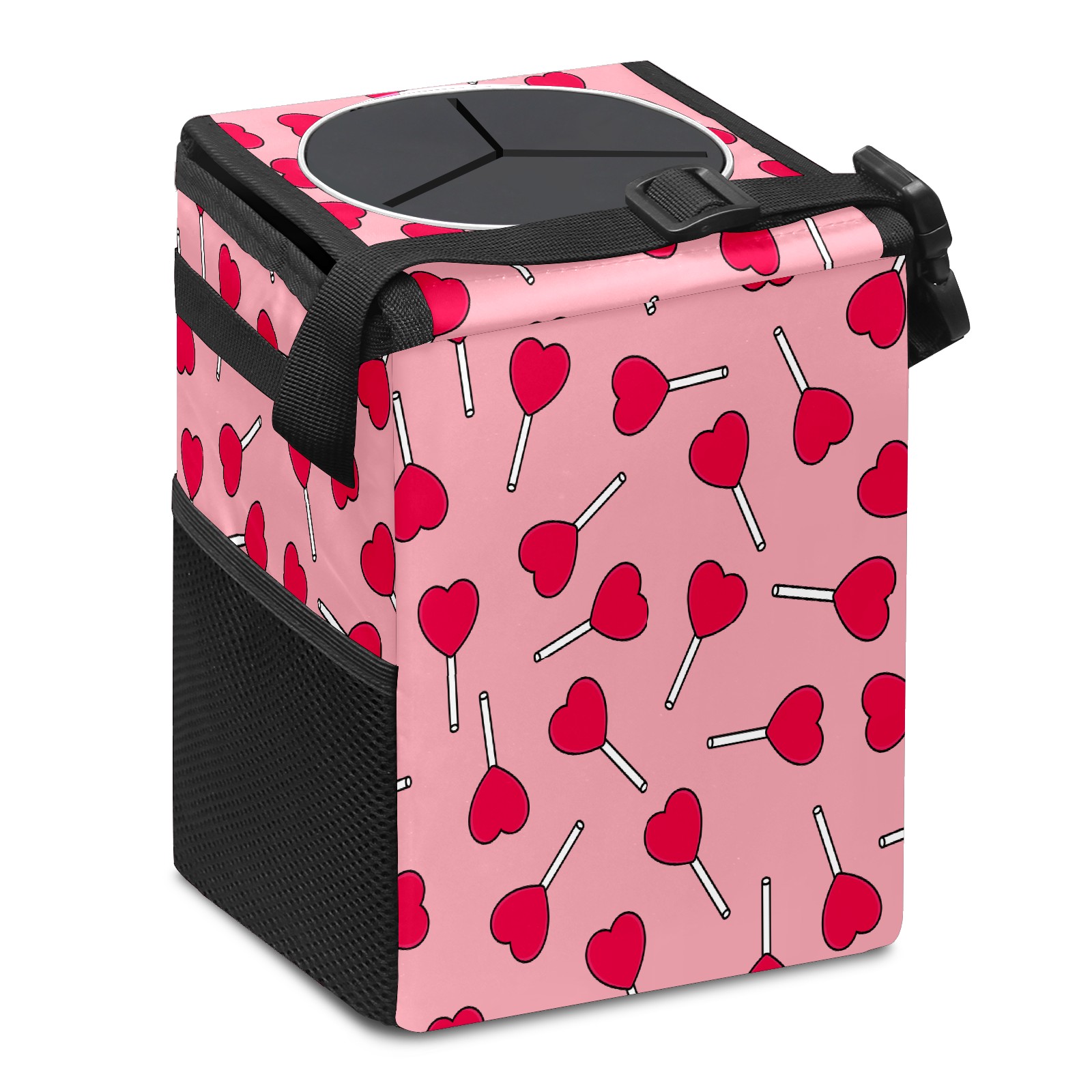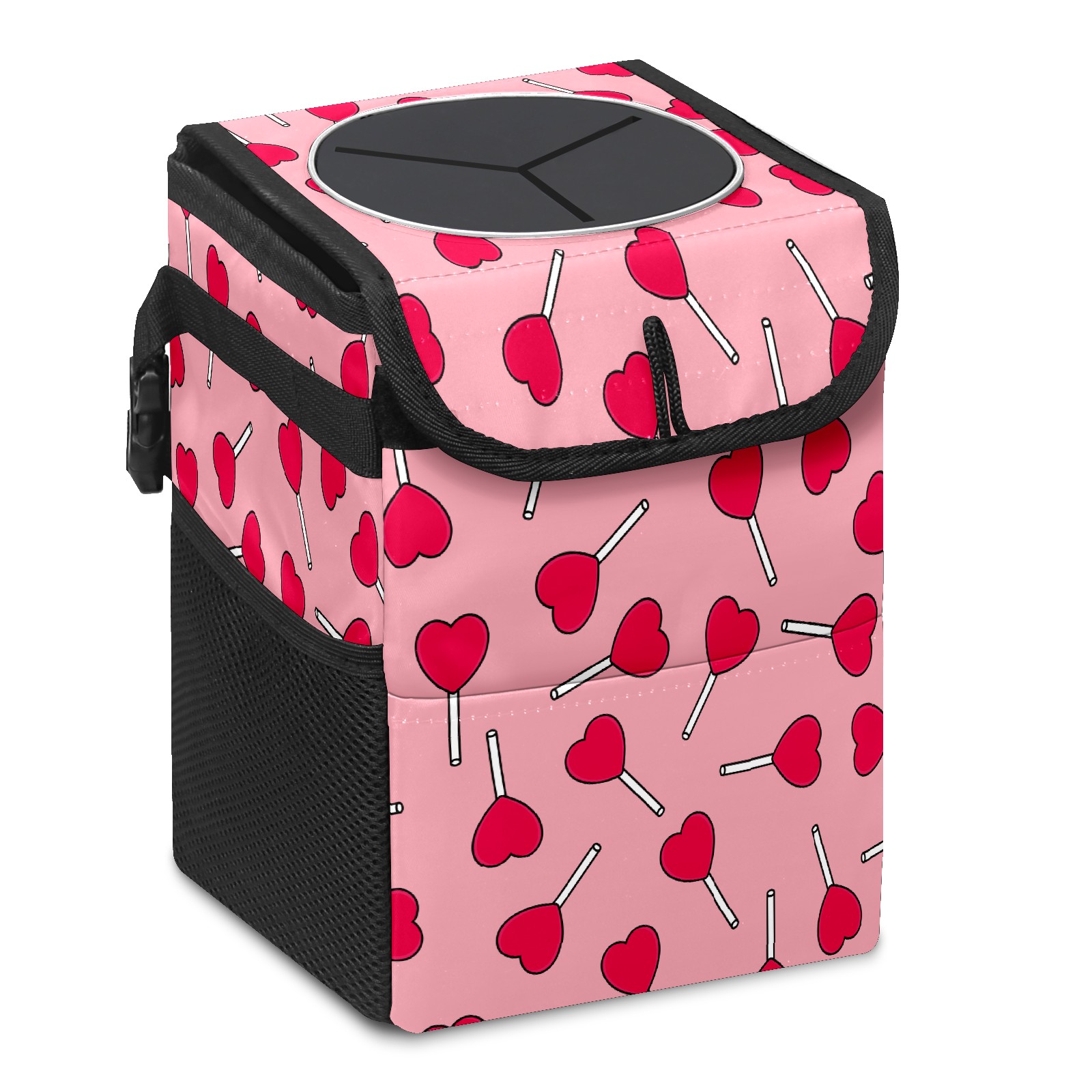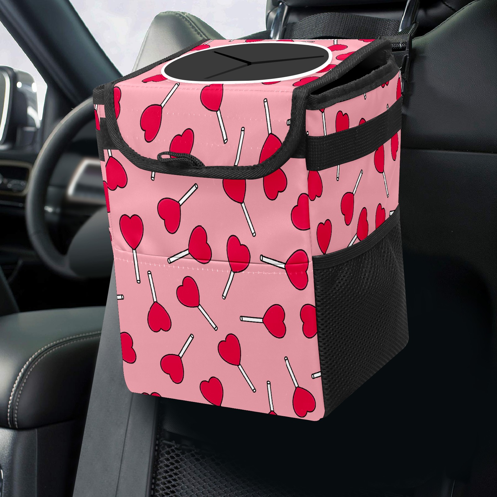 Car Trash Bin with Lid Auto Garbage Bag Hanging for Back Seat - Leakproof Trash Can for Cars SUVs Trucks Vehicle Car Accessories (Red Heart Lollipop Pink Pattern)