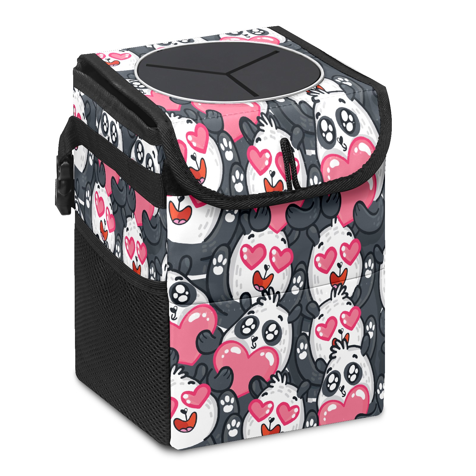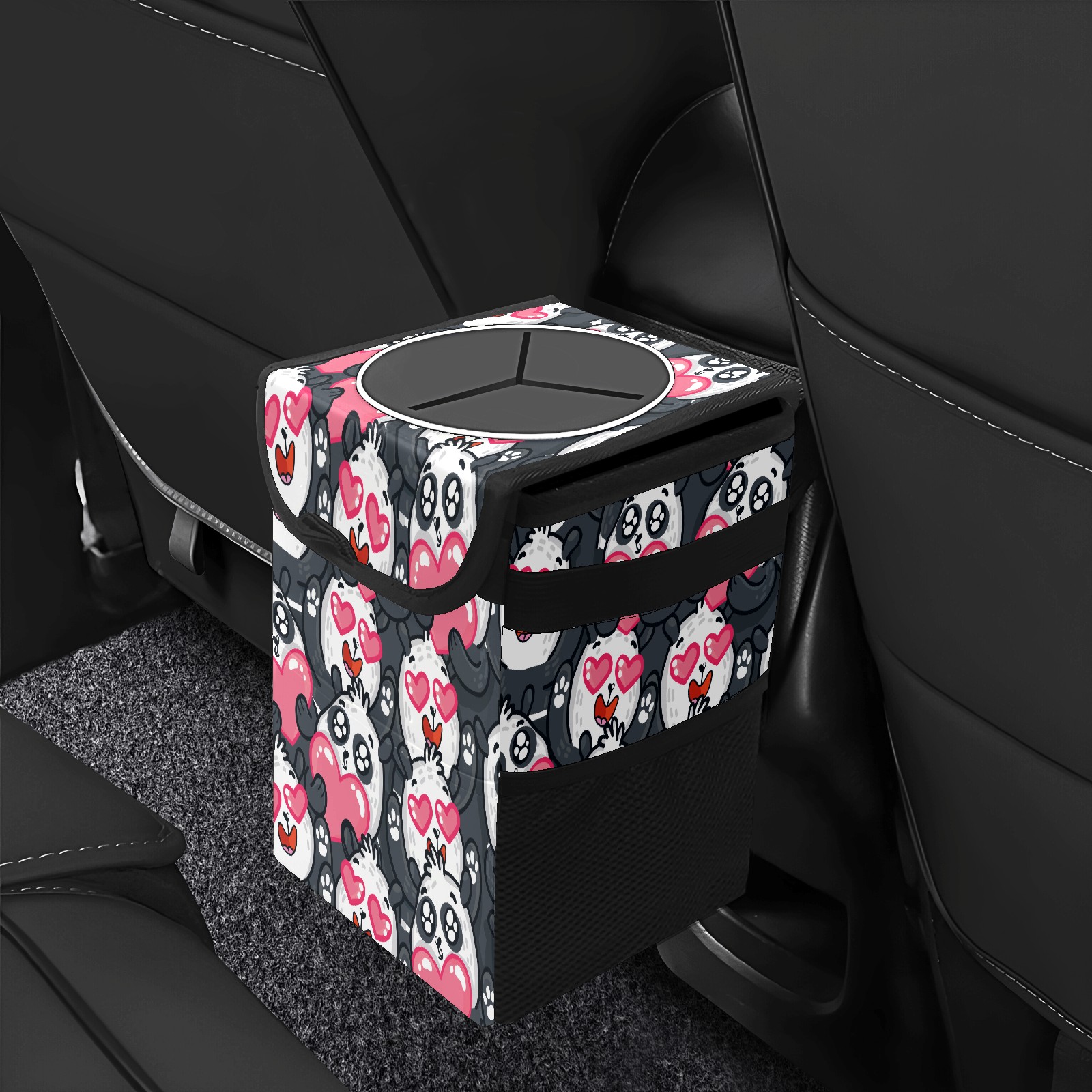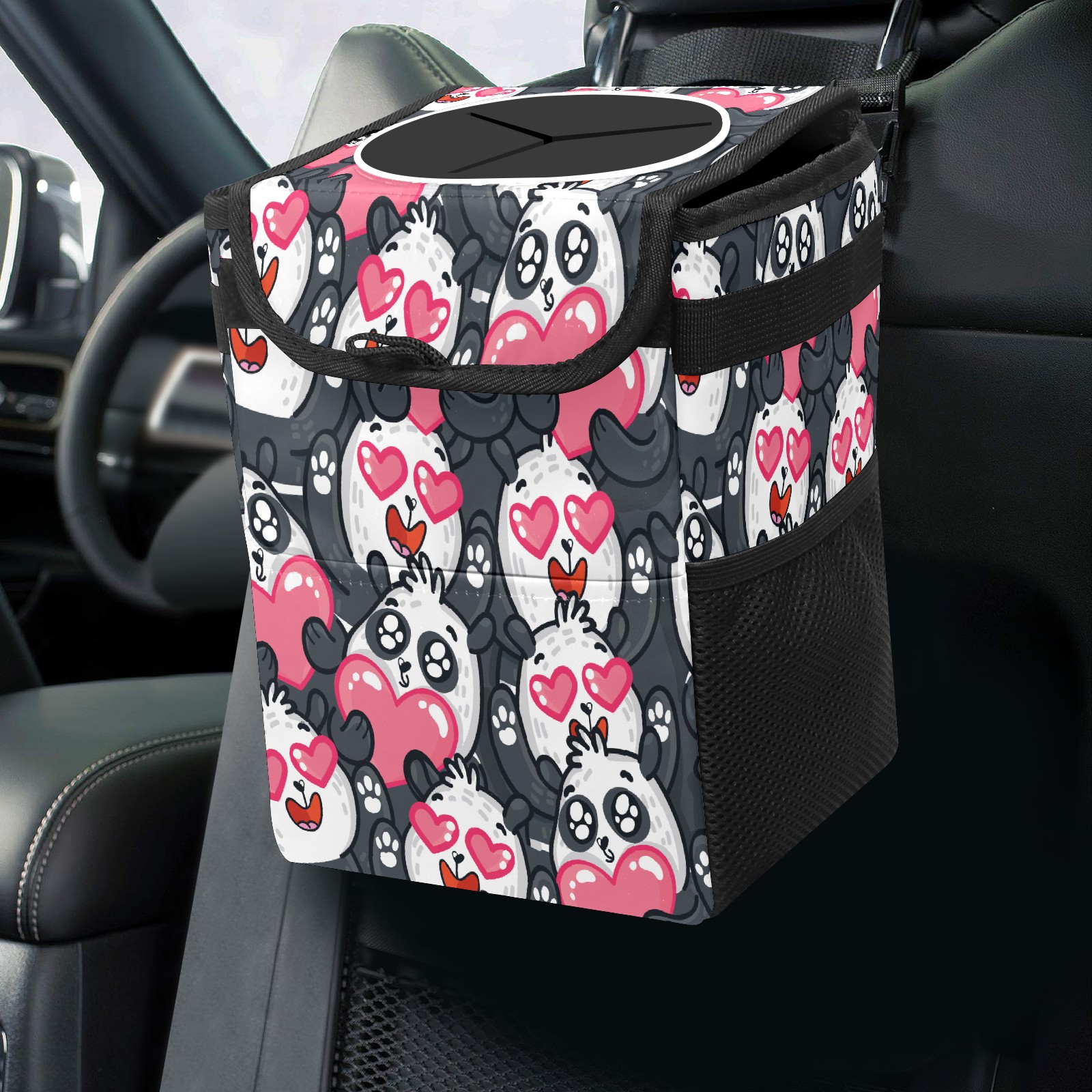 Car Trash Bin with Lid Auto Garbage Bag Hanging for Back Seat - Leakproof Trash Can for Cars SUVs Trucks Vehicle Car Accessories (Lovely Cartoon Panda Love Heart)