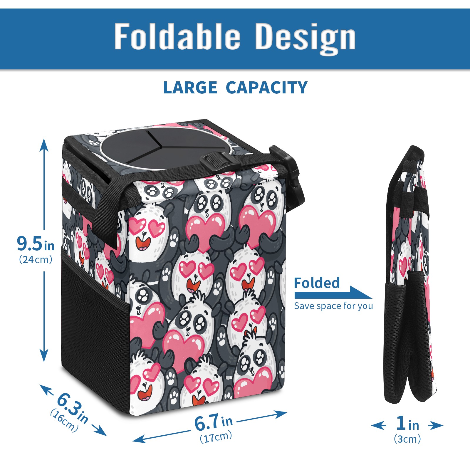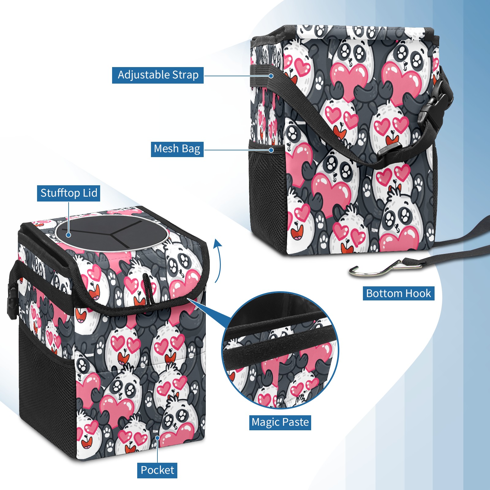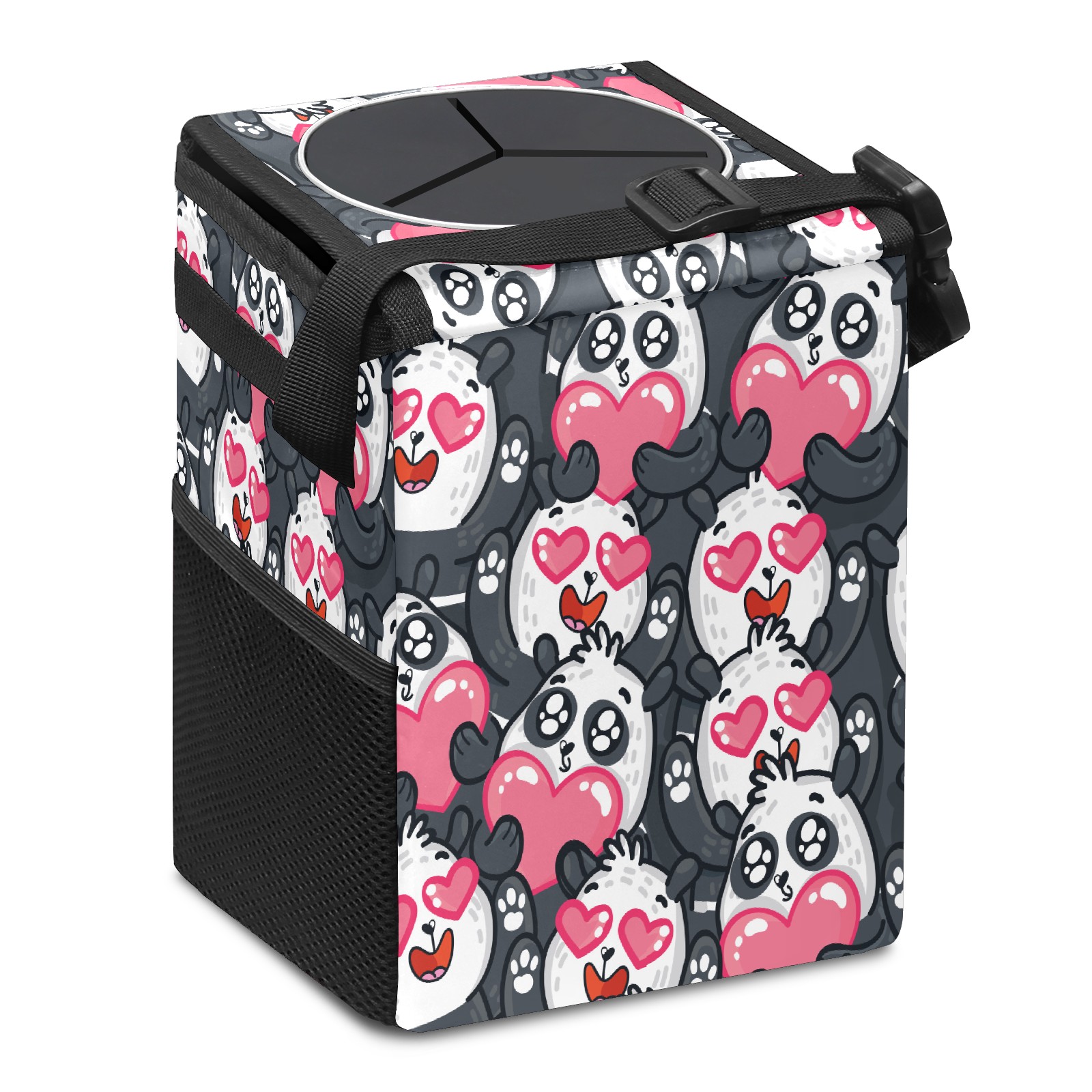 Car Trash Bin with Lid Auto Garbage Bag Hanging for Back Seat - Leakproof Trash Can for Cars SUVs Trucks Vehicle Car Accessories (Lovely Cartoon Panda Love Heart)