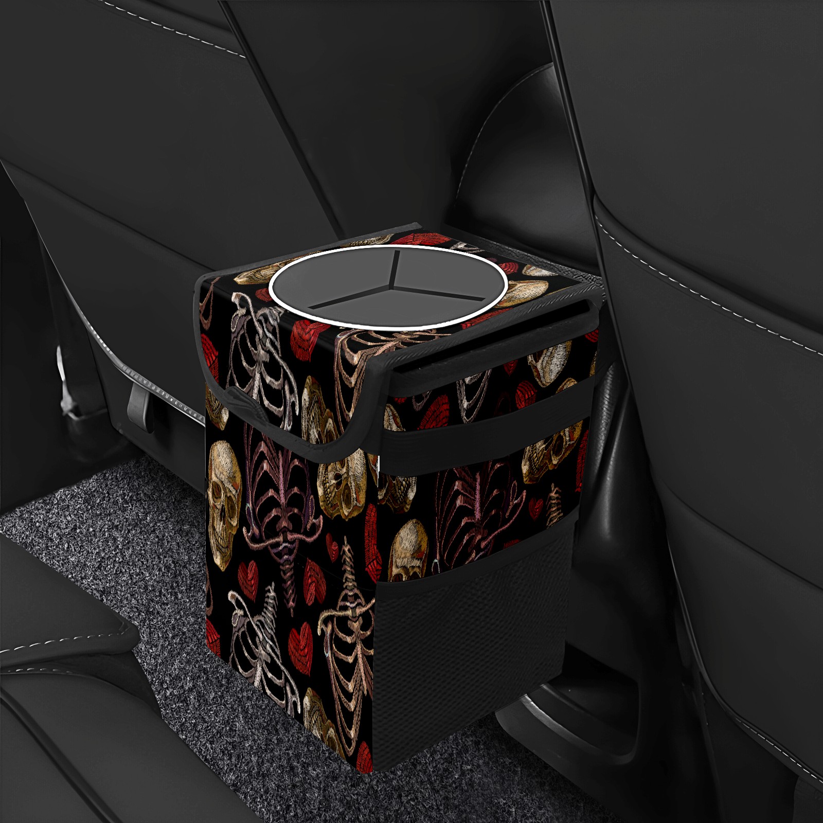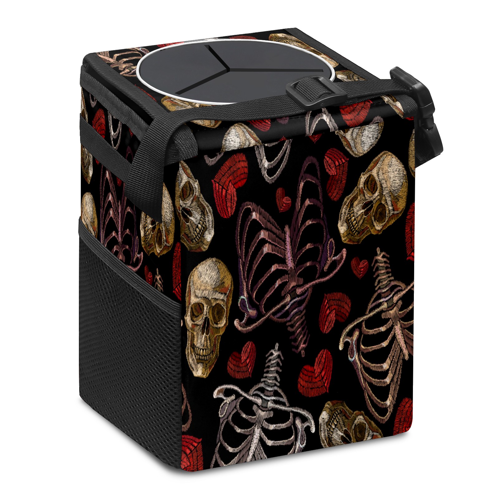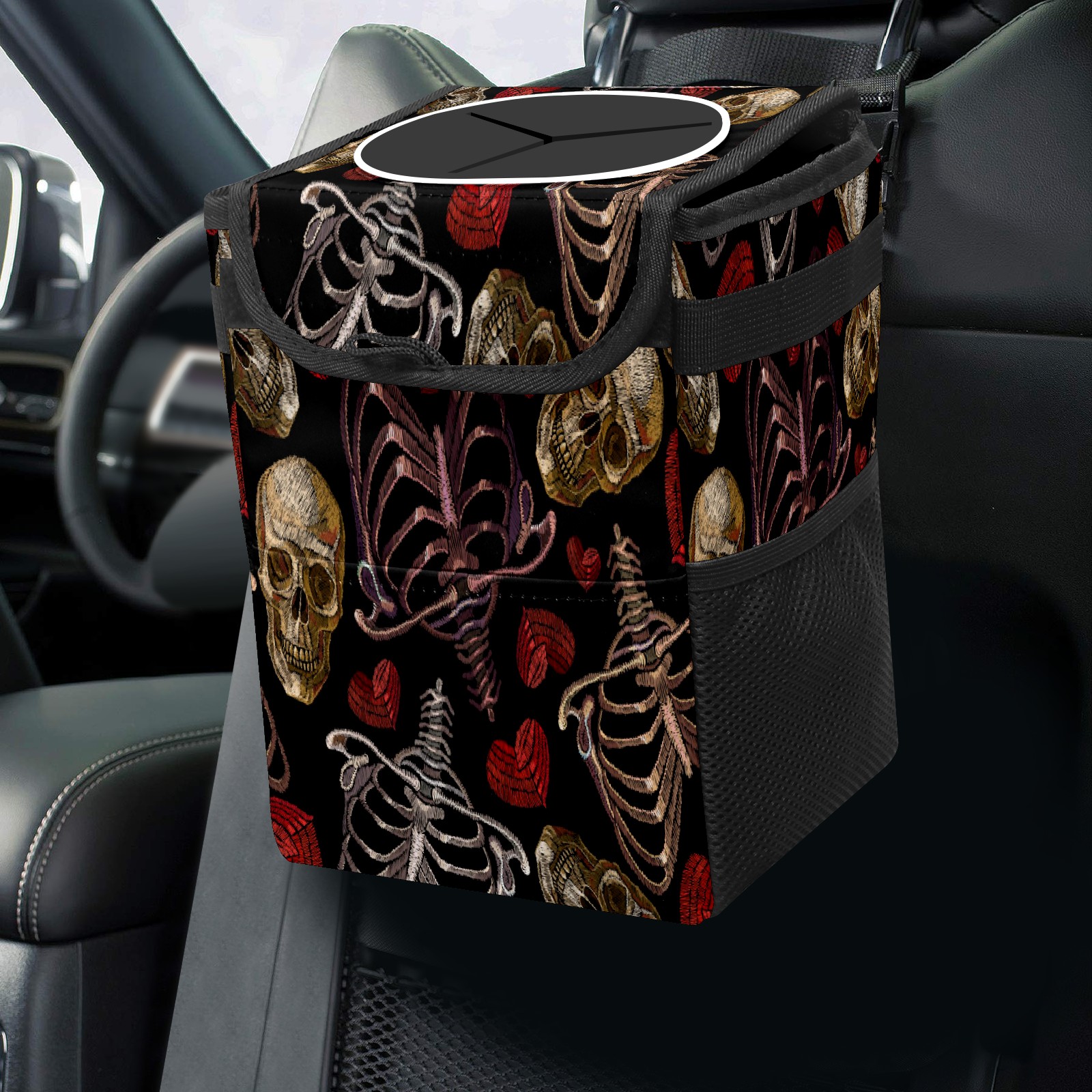 Car Trash Bin with Lid Auto Garbage Bag Hanging for Back Seat - Leakproof Trash Can for Cars SUVs Trucks Vehicle Car Accessories (Skeleton Hearts Skull)