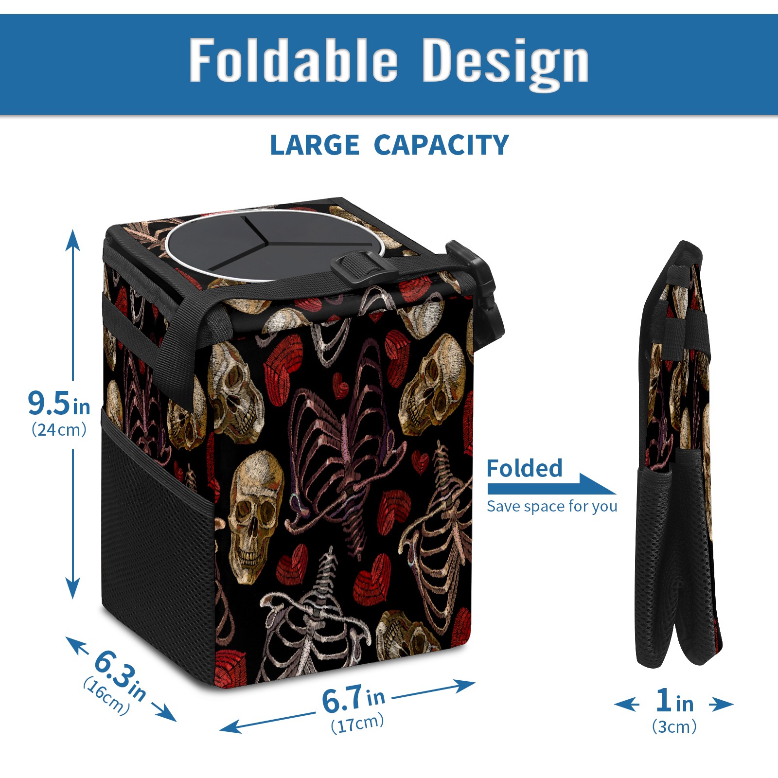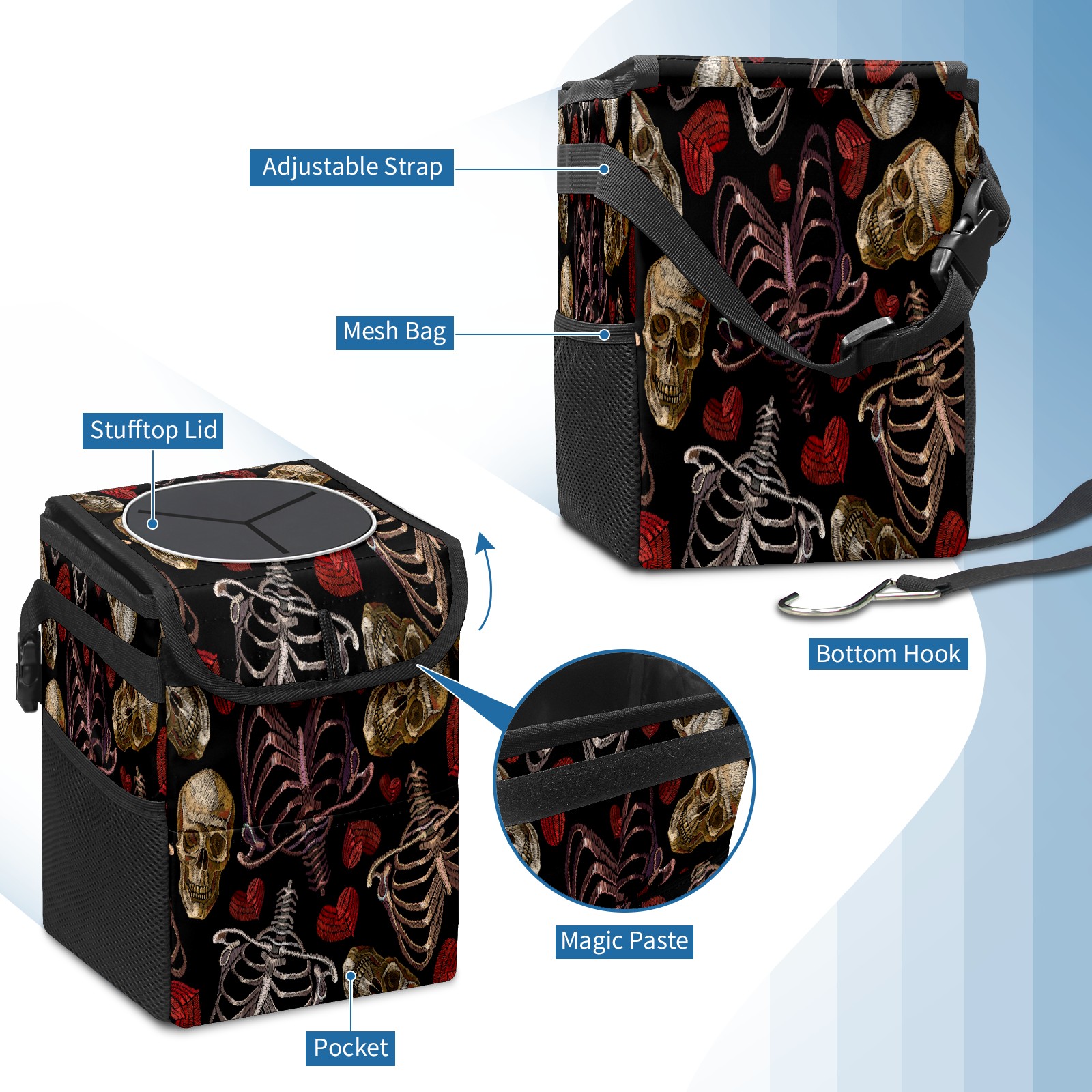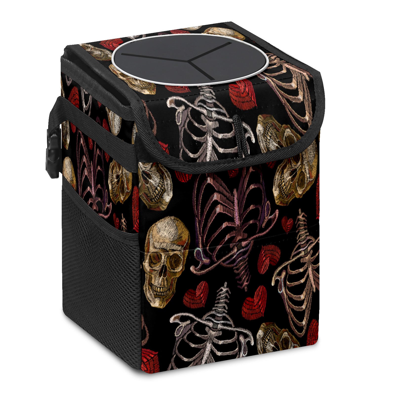 Car Trash Bin with Lid Auto Garbage Bag Hanging for Back Seat - Leakproof Trash Can for Cars SUVs Trucks Vehicle Car Accessories (Skeleton Hearts Skull)