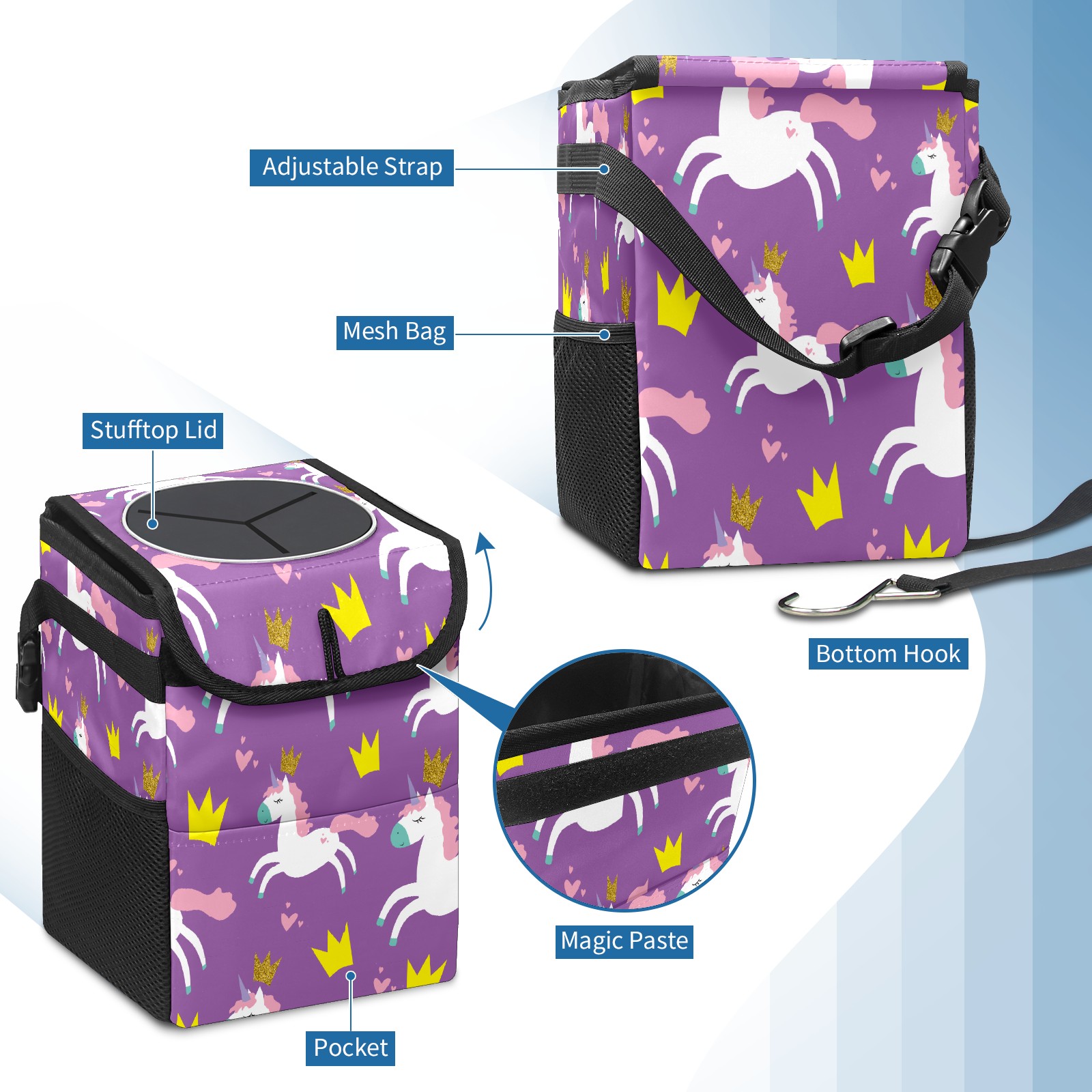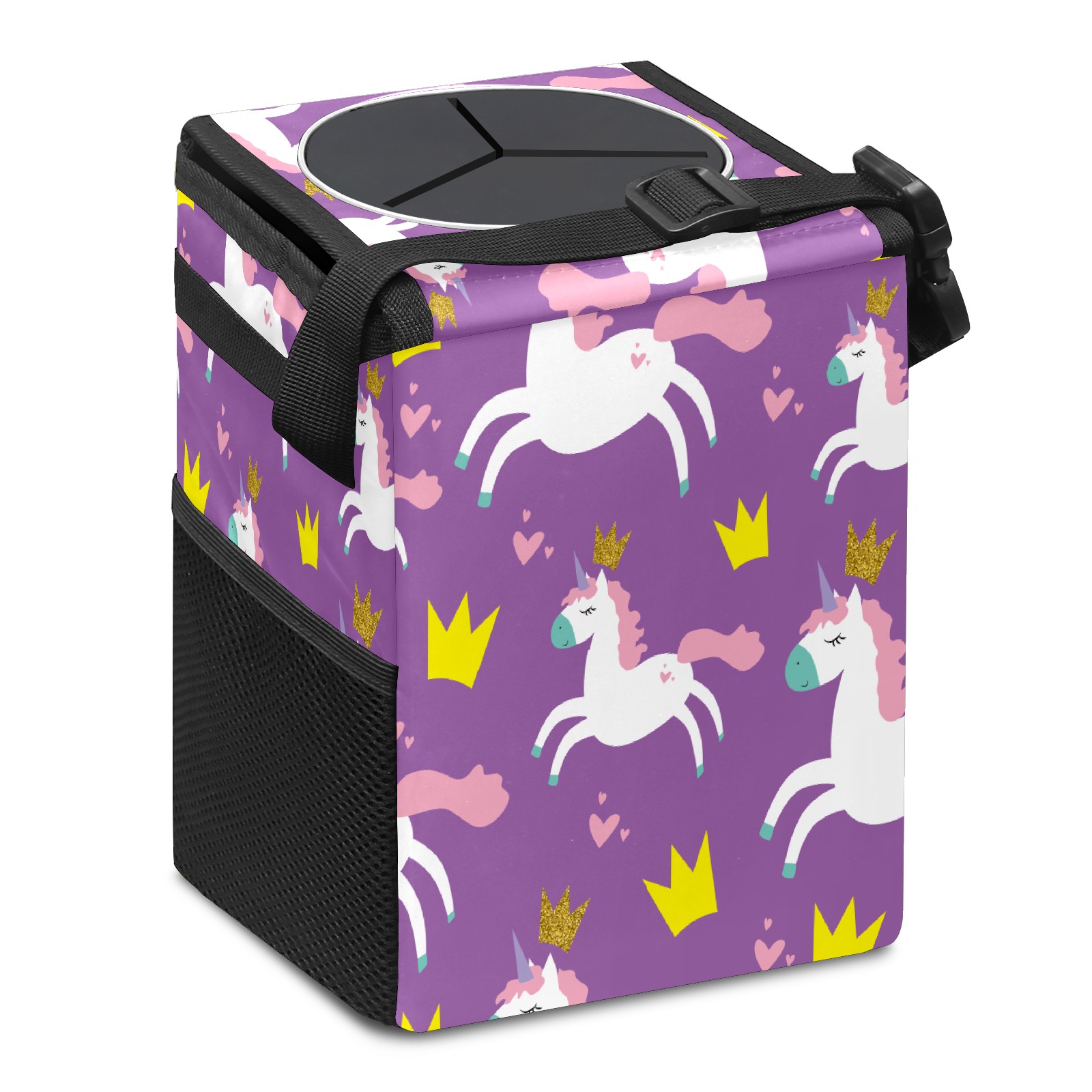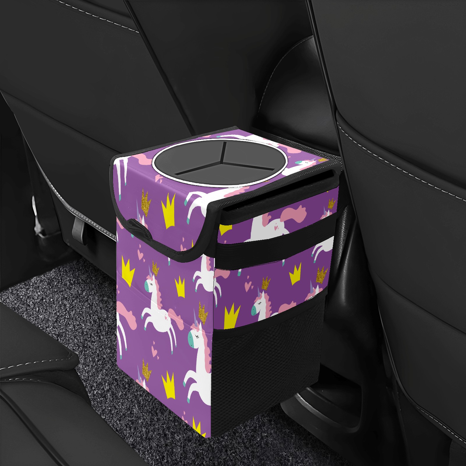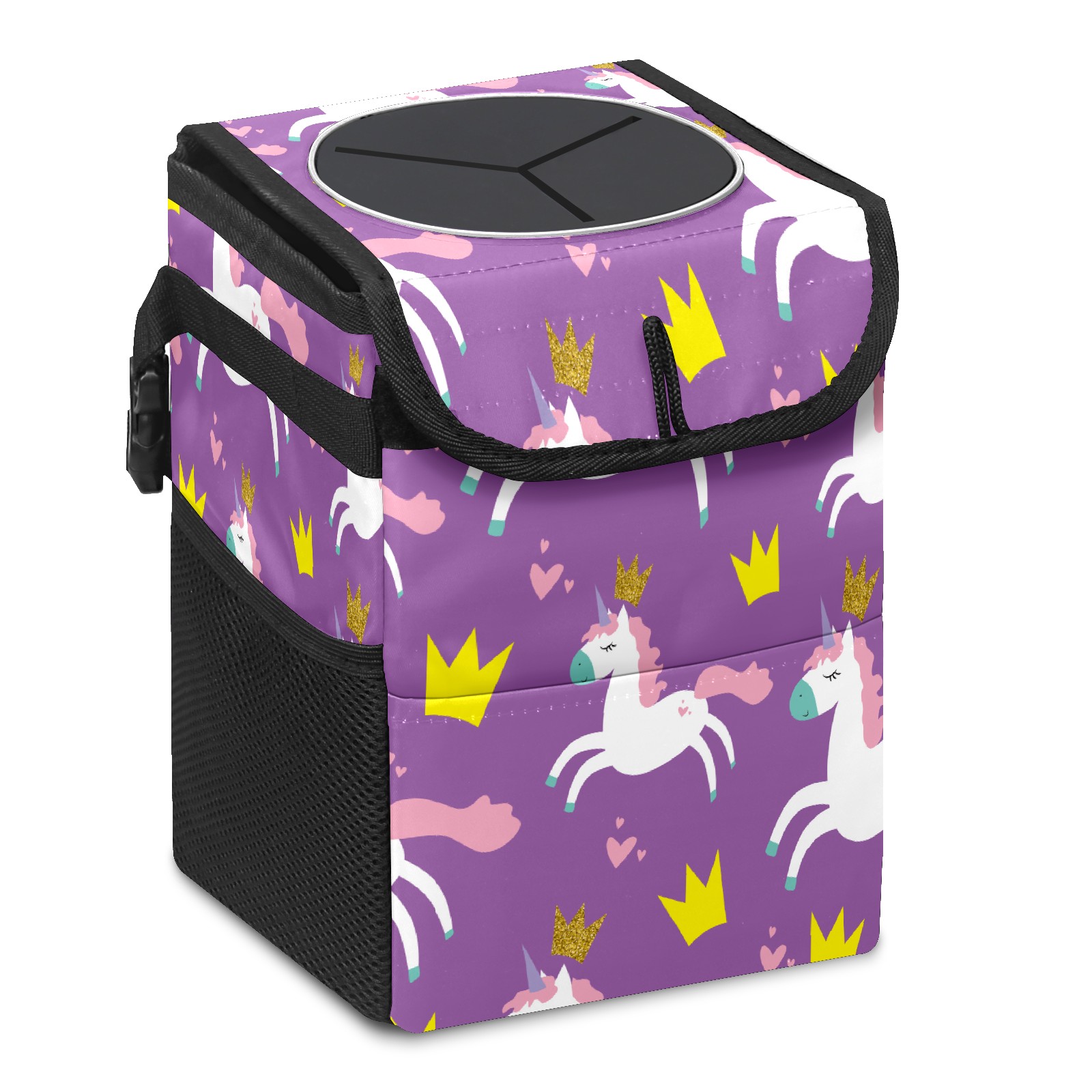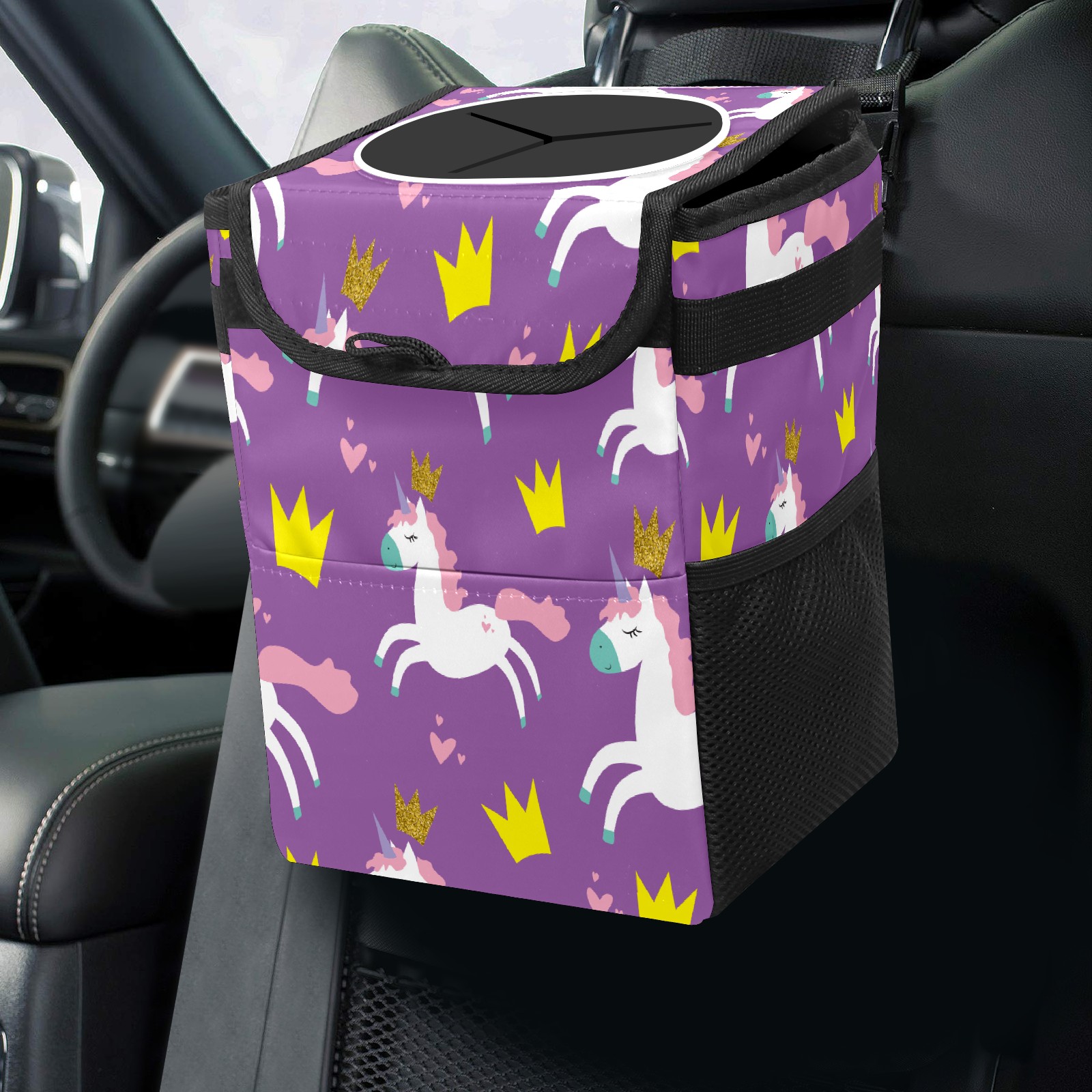 Car Trash Bin with Lid Auto Garbage Bag Hanging for Back Seat - Leakproof Trash Can for Cars SUVs Trucks Vehicle Car Accessories (Unicorn Glitter Crown Hearts Purple)
