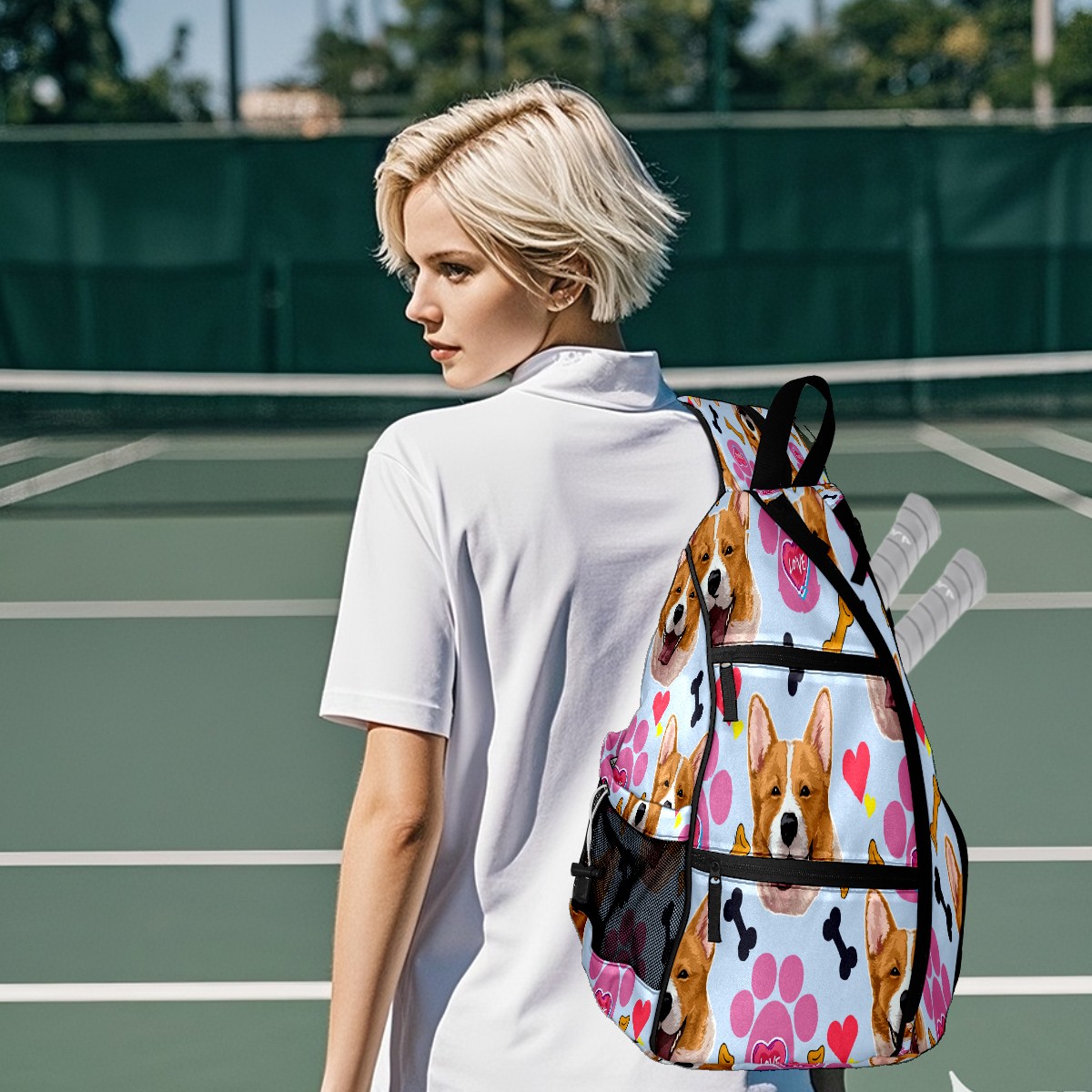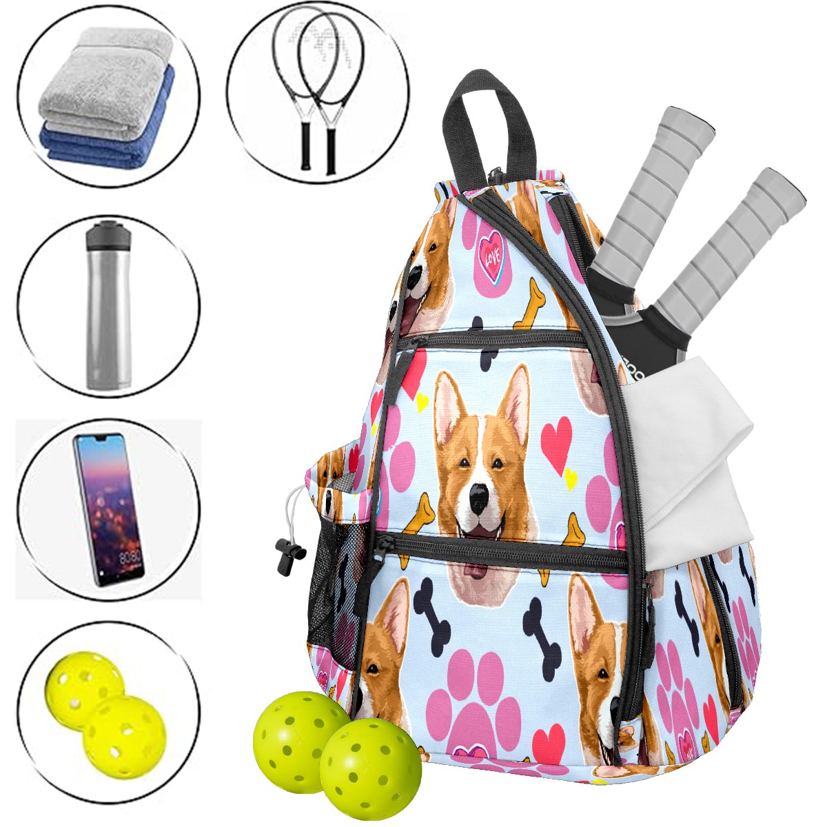 Multifunctional Pickleball Bag,Large Capacity Sports Pickleball Racket Bag, Water Bottle Holder and Fence Hook,Suitable for Both Men Women -狗9
