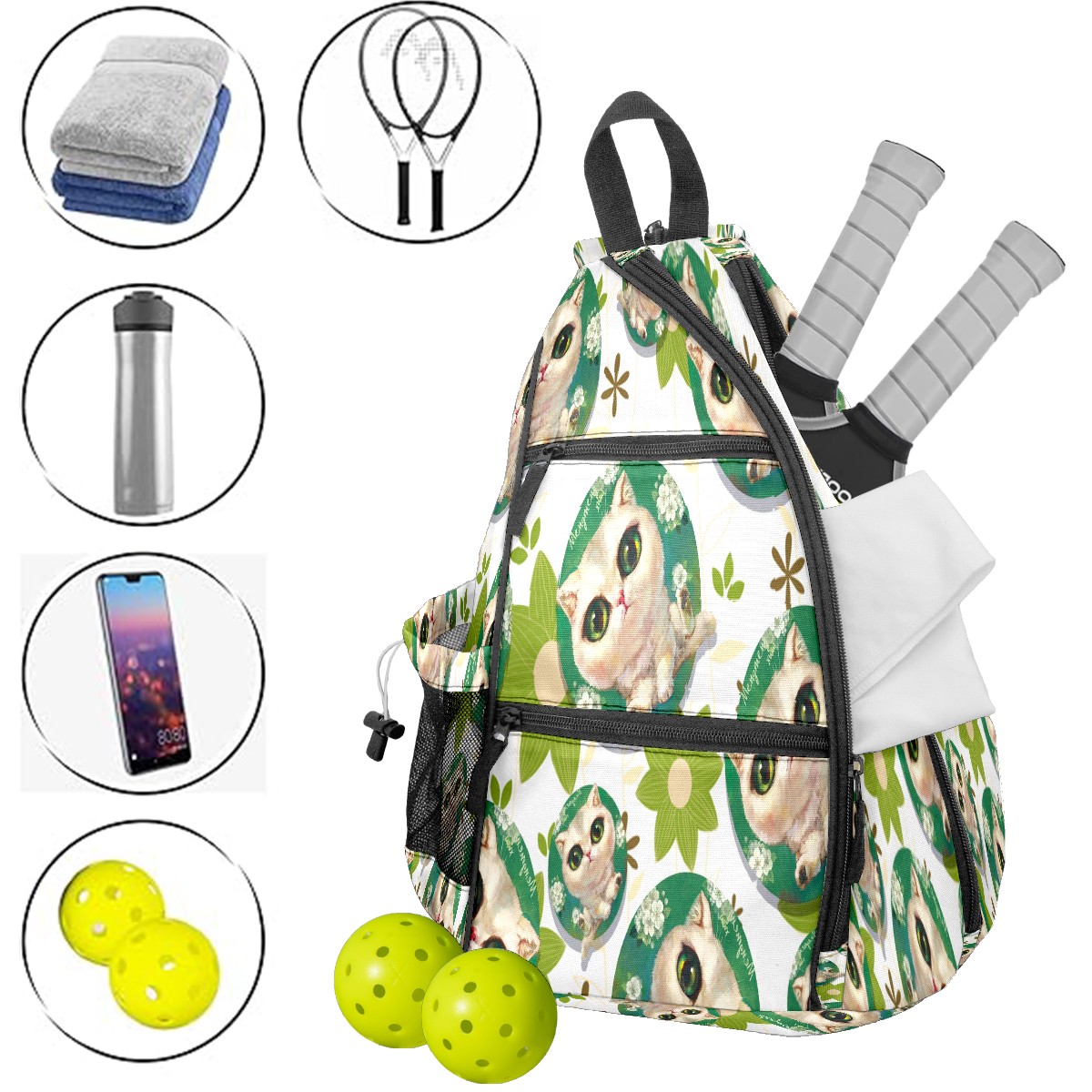 Multifunctional Pickleball Bag,Large Capacity Sports Pickleball Racket Bag, Water Bottle Holder and Fence Hook,Suitable for Both Men Women -猫猫