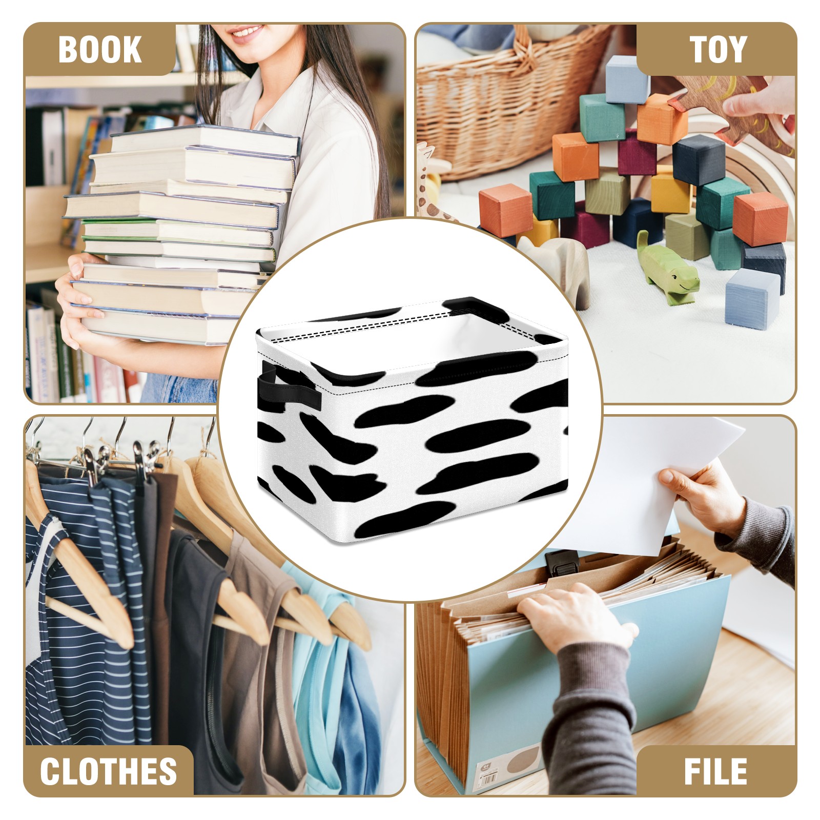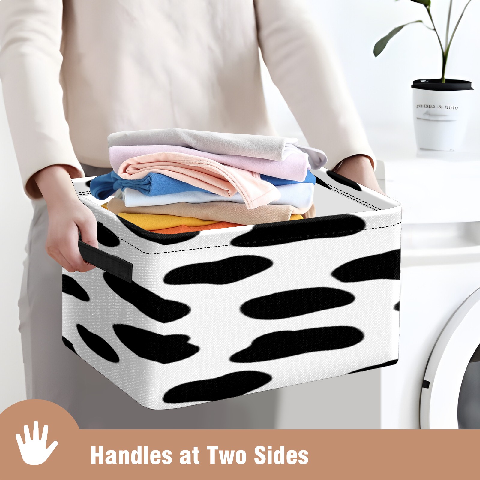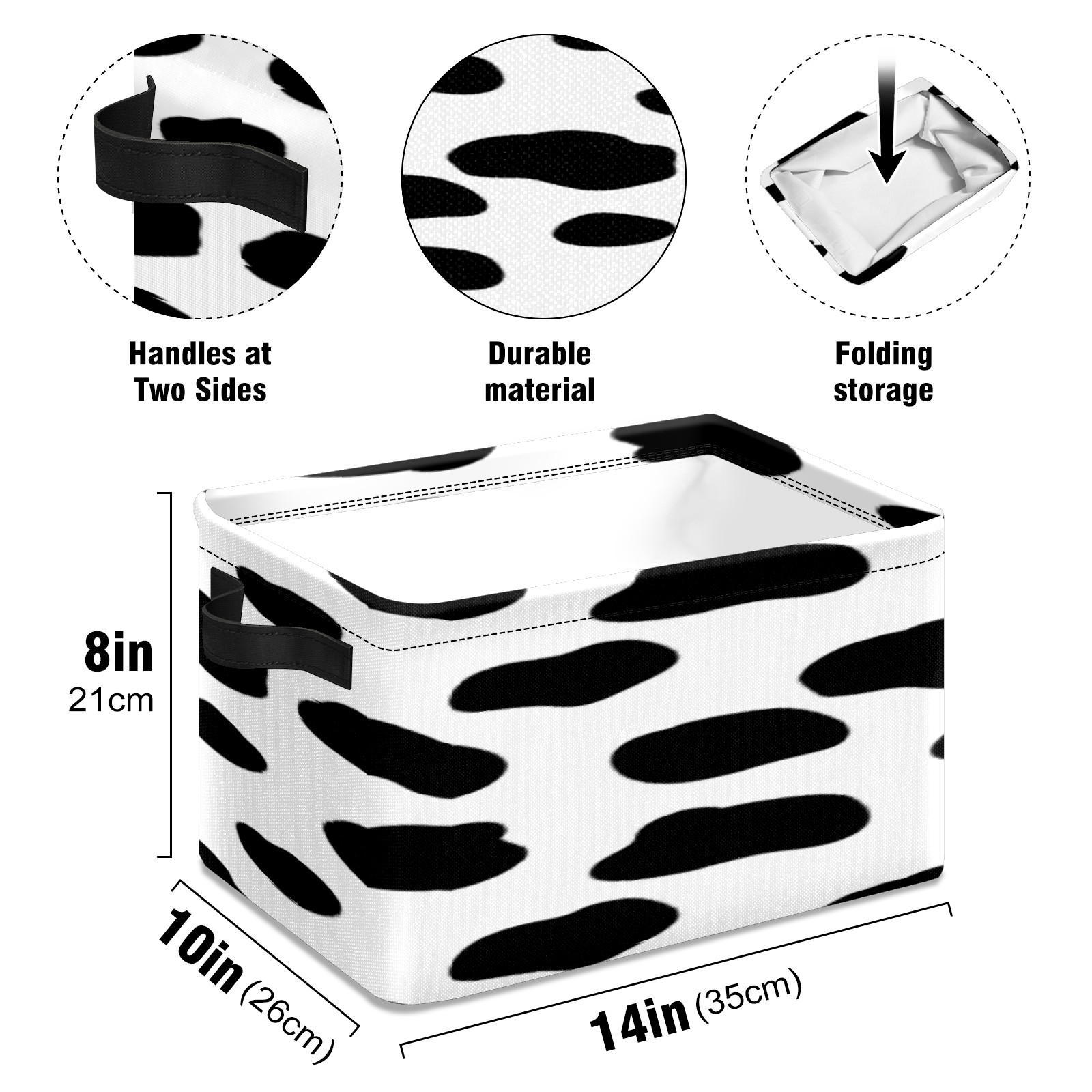 • 【Материал】Оксфордская ткань из полиэстера 600D; ручки изготовлены из полиэстера. 【Описание материала】Внешняя ткань: Оксфордская ткань полотняного переплетения высокой плотности 300D (ПВХ); Подкладка: белая ткань 750D; Ручки: черная композитная ткань 290T. 【Размер】26x35x21 см (10x14x8 дюймов) 【Описание продукта】Эта корзина для хранения с ручками с обеих сторон предлагает достаточно места для хранения предметов разных размеров, что делает ее подходящей для различных случаев, таких как дом, офис и школа. Ручки с обеих сторон закреплены гвоздями для долговечности. Прочный металлический каркас окружает корзину, поддерживая ее форму. Складная корзина для хранения: Наши корзины для хранения легко складываются, когда не используются. Эти ящики для хранения изготовлены из легко моющейся оксфордской ткани и при необходимости могут быть аккуратно протерты мягким мылом и водой. Из-за внутреннего металлического каркаса и жесткого дна машинная стирка не рекомендуется. 【Подходящие сценарии использования】Дом, офис и школа 【Инструкции по стирке】Рекомендуется ручная стирка; избегайте длительного воздействия прямых солнечных лучей.