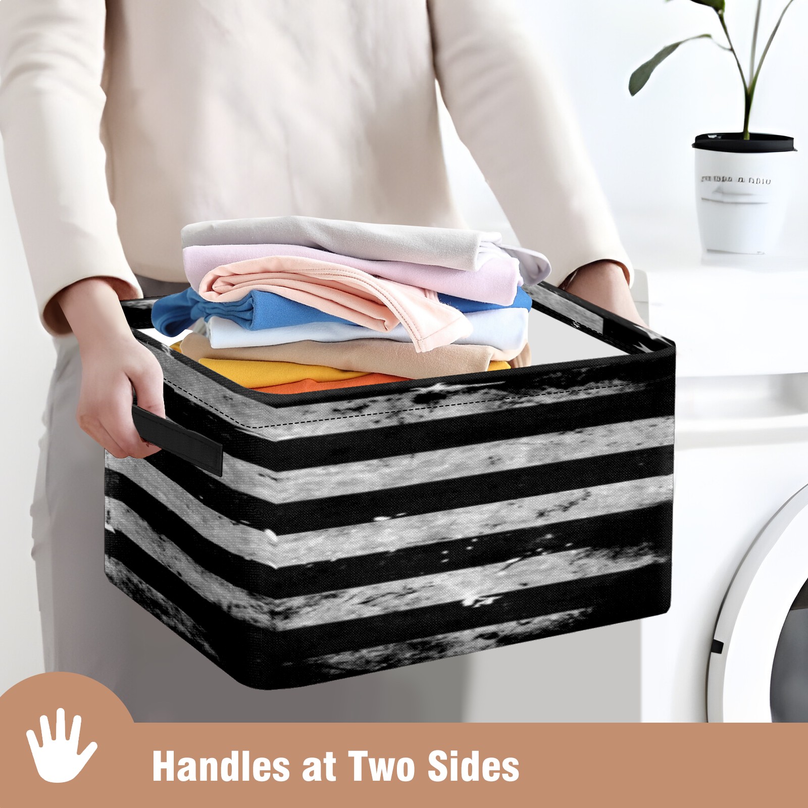 • 【Материал】Оксфордская ткань из полиэстера 600D; ручки изготовлены из полиэстера. 【Описание материала】Внешняя ткань: Оксфордская ткань полотняного переплетения высокой плотности 300D (ПВХ); Подкладка: белая ткань 750D; Ручки: черная композитная ткань 290T. 【Размер】26x35x21 см (10x14x8 дюймов) 【Описание продукта】Эта корзина для хранения с ручками с обеих сторон предлагает достаточно места для хранения предметов разных размеров, что делает ее подходящей для различных случаев, таких как дом, офис и школа. Ручки с обеих сторон закреплены гвоздями для долговечности. Прочный металлический каркас окружает корзину, поддерживая ее форму. Складная корзина для хранения: Наши корзины для хранения легко складываются, когда не используются. Эти ящики для хранения изготовлены из легко моющейся оксфордской ткани и при необходимости могут быть аккуратно протерты мягким мылом и водой. Из-за внутреннего металлического каркаса и жесткого дна машинная стирка не рекомендуется. 【Подходящие сценарии использования】Дом, офис и школа 【Инструкции по стирке】Рекомендуется ручная стирка; избегайте длительного воздействия прямых солнечных лучей.