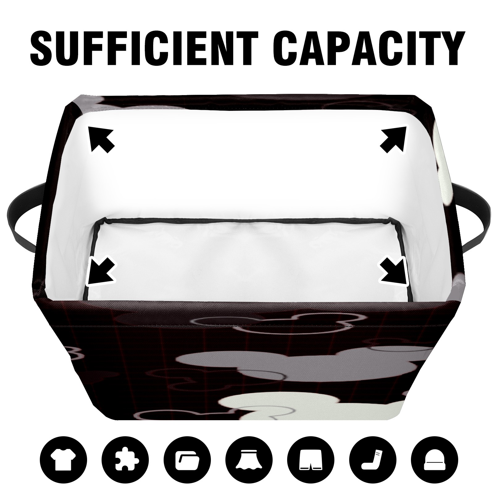 【Материал】Оксфордская ткань из полиэстера 600D; ручки изготовлены из полиэстера. 【Описание материала】Внешняя ткань: Оксфордская ткань полотняного переплетения высокой плотности 300D (ПВХ); Подкладка: белая ткань 750D; Ручки: черная композитная ткань 290T. 【Размер】26x35x21 см (10x14x8 дюймов) 【Описание продукта】Эта корзина для хранения с ручками с обеих сторон предлагает достаточно места для хранения предметов разных размеров, что делает ее подходящей для различных случаев, таких как дом, офис и школа. Ручки с обеих сторон закреплены гвоздями для долговечности. Прочный металлический каркас окружает корзину, поддерживая ее форму. Складная корзина для хранения: Наши корзины для хранения легко складываются, когда не используются. Эти ящики для хранения изготовлены из легко моющейся оксфордской ткани и при необходимости могут быть аккуратно протерты мягким мылом и водой. Из-за внутреннего металлического каркаса и жесткого дна машинная стирка не рекомендуется. 【Подходящие сценарии использования】Дом, офис и школа 【Инструкции по стирке】Рекомендуется ручная стирка; избегайте длительного воздействия прямых солнечных лучей.