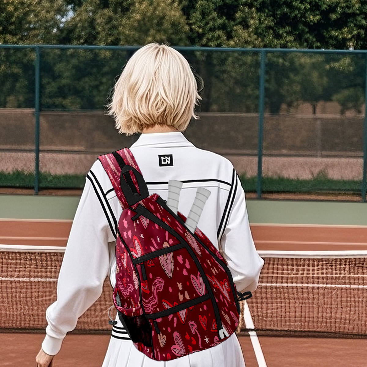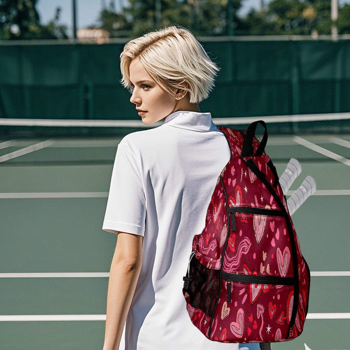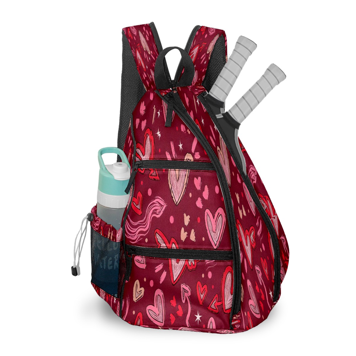 Multifunctional Pickleball Bag,Large Capacity Sports Pickleball Racket Bag, Water Bottle Holder and Fence Hook,Suitable for Both Men Women -Pink Hearts