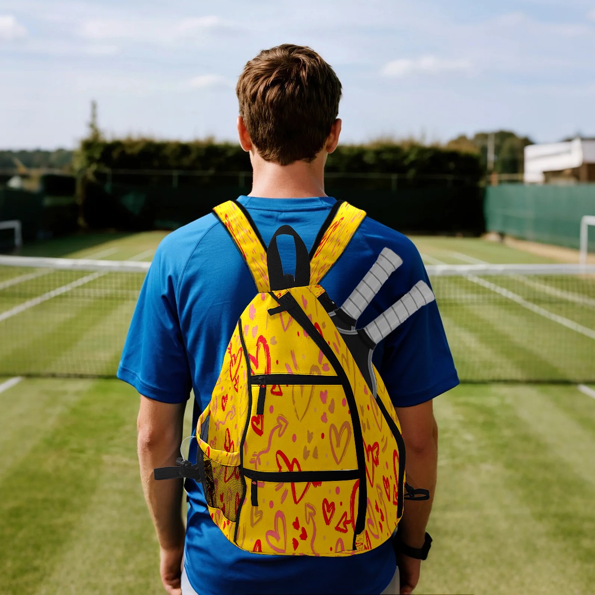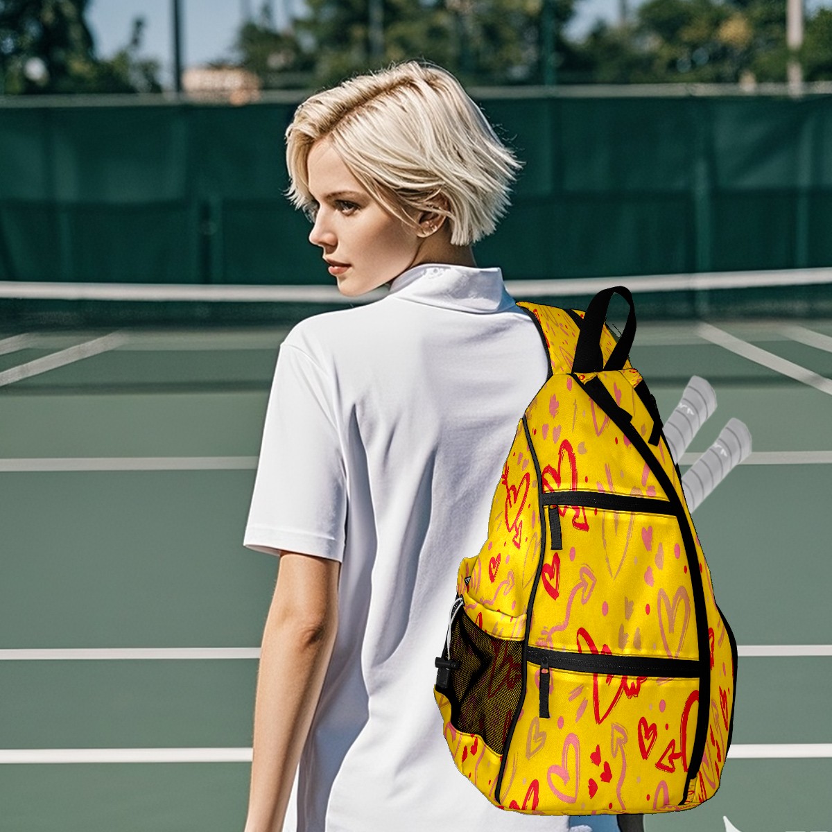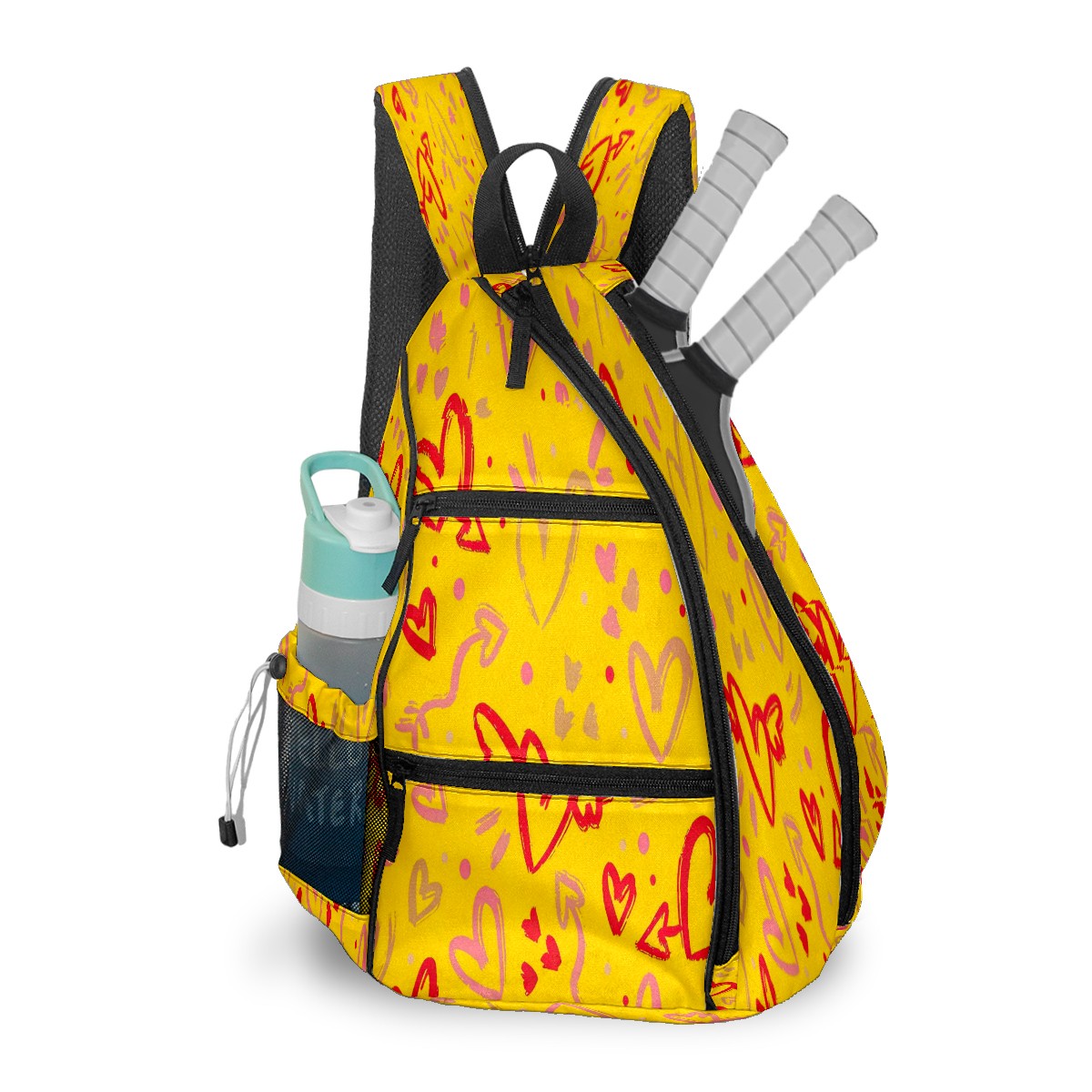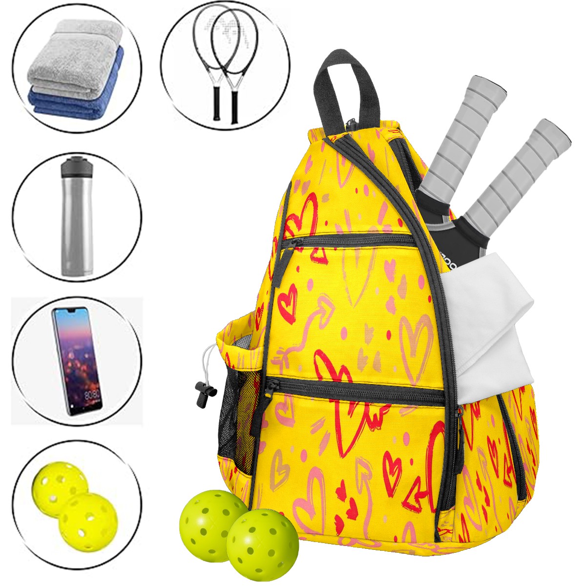 Multifunctional Pickleball Bag,Large Capacity Sports Pickleball Racket Bag, Water Bottle Holder and Fence Hook,Suitable for Both Men Women -1Yellow Hearts