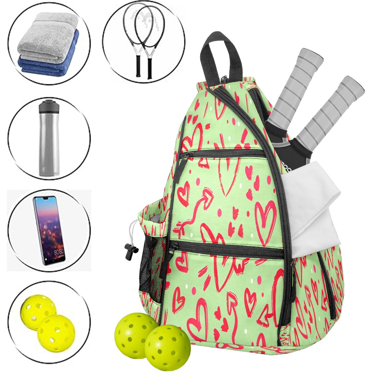 <p>This peakball backpack boasts a spacious 14-inch x 10-inch x 19-inch interior. The main compartment is clearly divided, easily accommodating 2-3 rackets and 6-8 peakballs. A side pocket can hold a water bottle, and an inner pocket provides storage for small items like phones and keys. The adjustable, thickened shoulder straps can be adjusted to fit different body types, effectively distributing weight and preventing shoulder and back pain even when fully loaded and worn for extended periods. Its convenience is particularly outstanding – all peakball accessories can be neatly stored in one bag, making travel easy. Moreover, its versatility is incredibly broad. Besides peakballs, it can also be used as a badminton or table tennis racket bag, and is perfect for carrying clothes and personal items when going to the gym or on short trips. One bag, multiple uses, and super convenient. For pickleball players of all ages and genders, this is not just an essential equipment storage bag, but also a thoughtful gift—its simple and durable design suits everyone, making it perfect for birthdays, holidays, or as a team reward for teammates. Almost every sports enthusiast who has used it praises its practicality and versatility.</p>