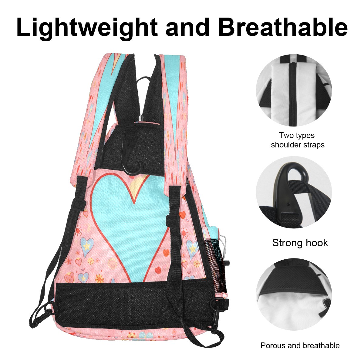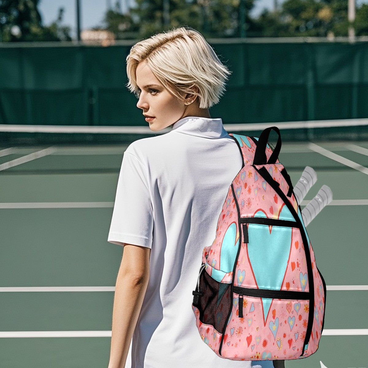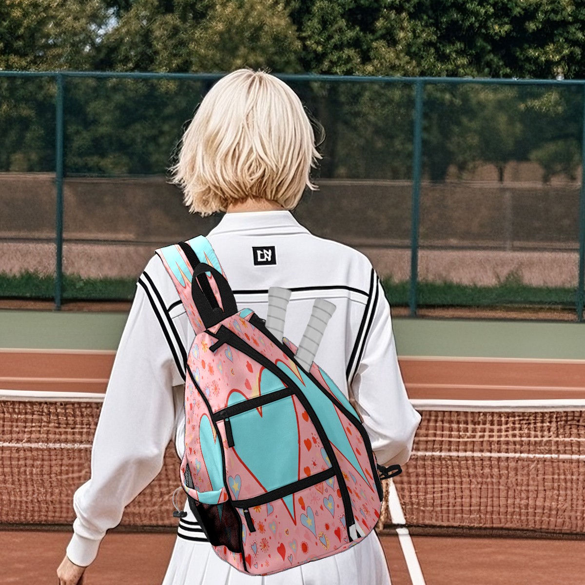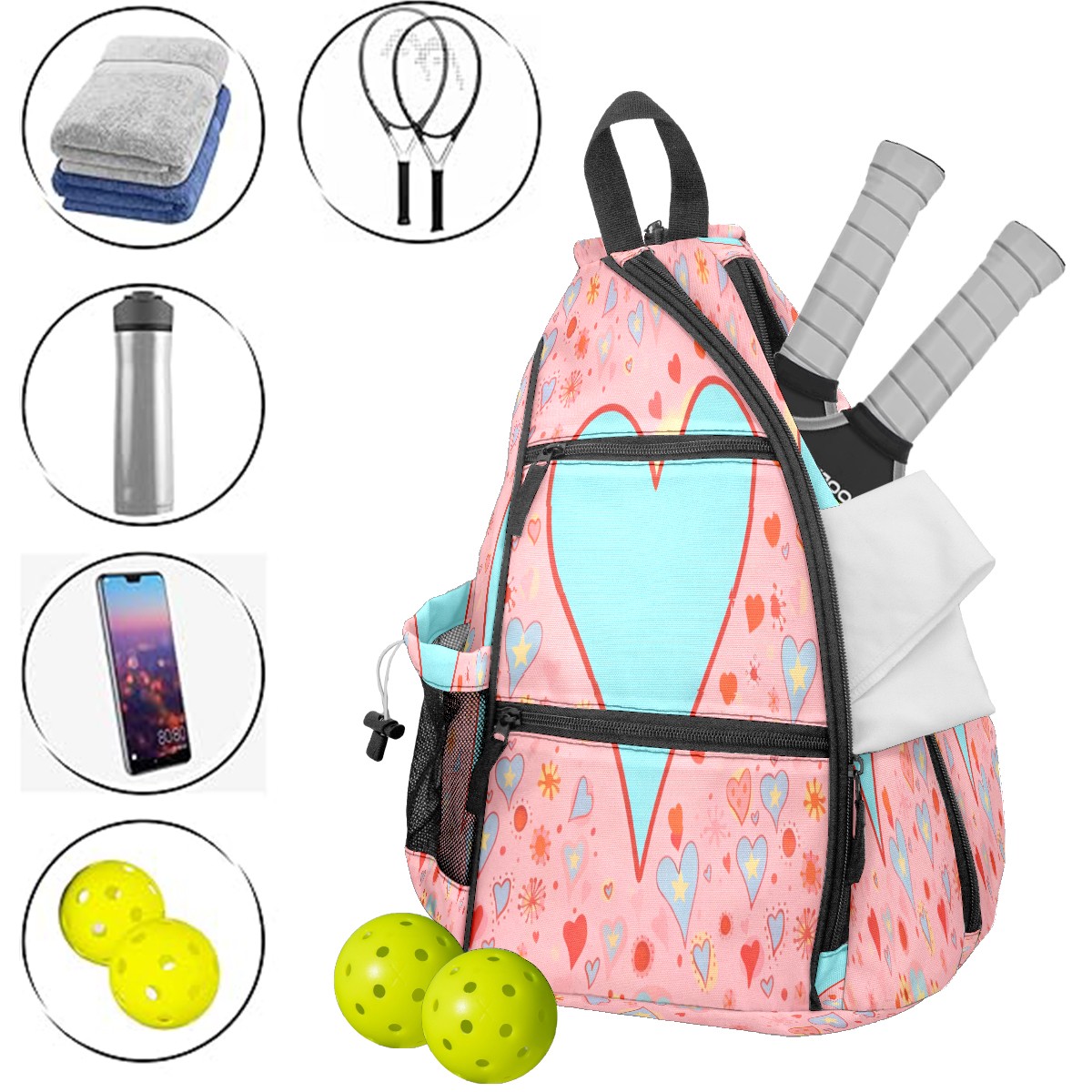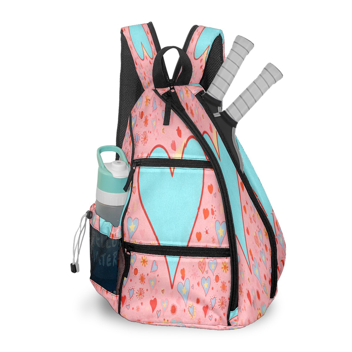 Multifunctional Pickleball Bag,Large Capacity Sports Pickleball Racket Bag, Water Bottle Holder and Fence Hook,Suitable for Both Men Women -Blue Heart